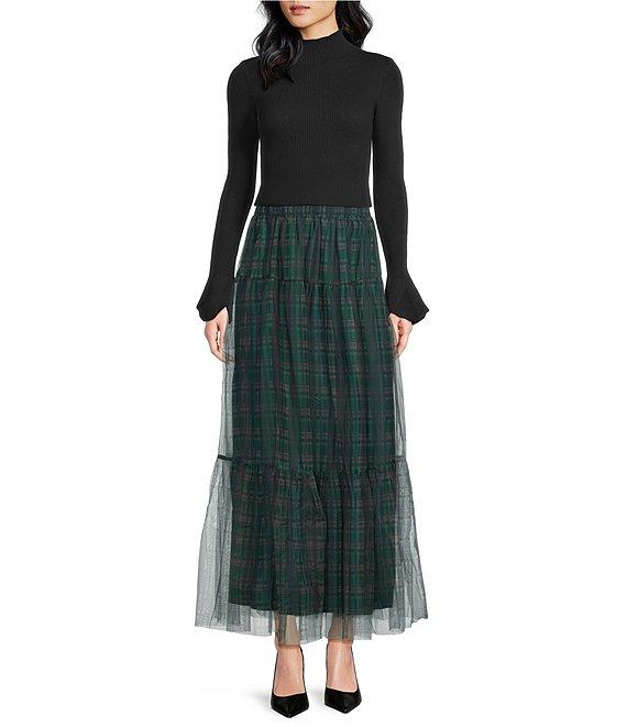 Sugarlips Sheer Plaid Tiered Elastic Waist Pull-On Maxi Skirt