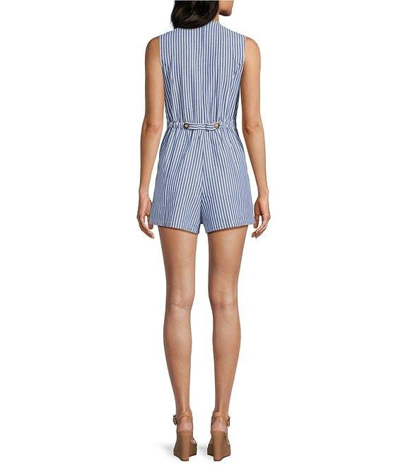 Sugarlips Striped V-Neck Sleeveless Button Wrap Vest Romper