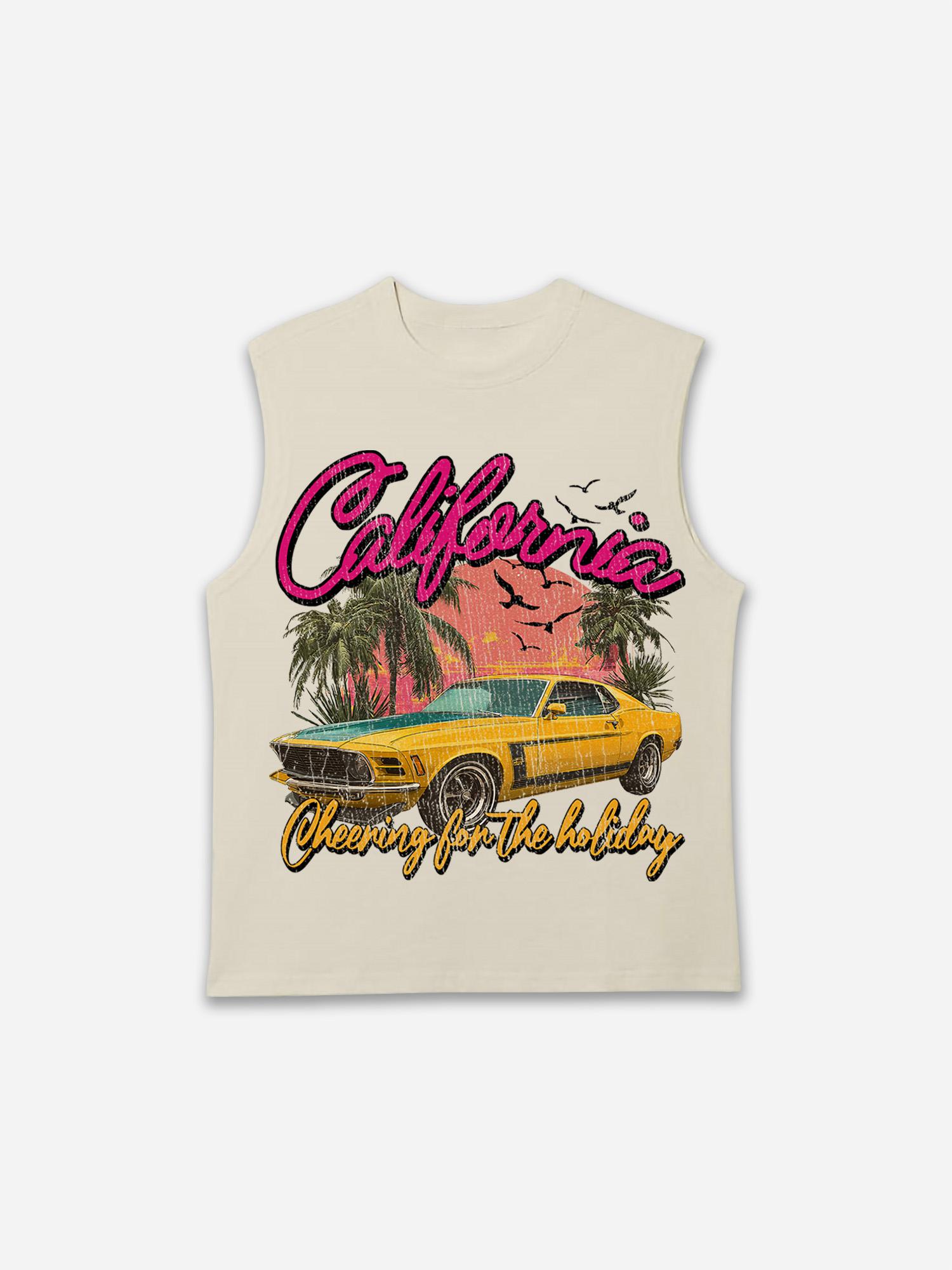 Summer Vacation Racing Print Sleeveless Shirts Tank Top