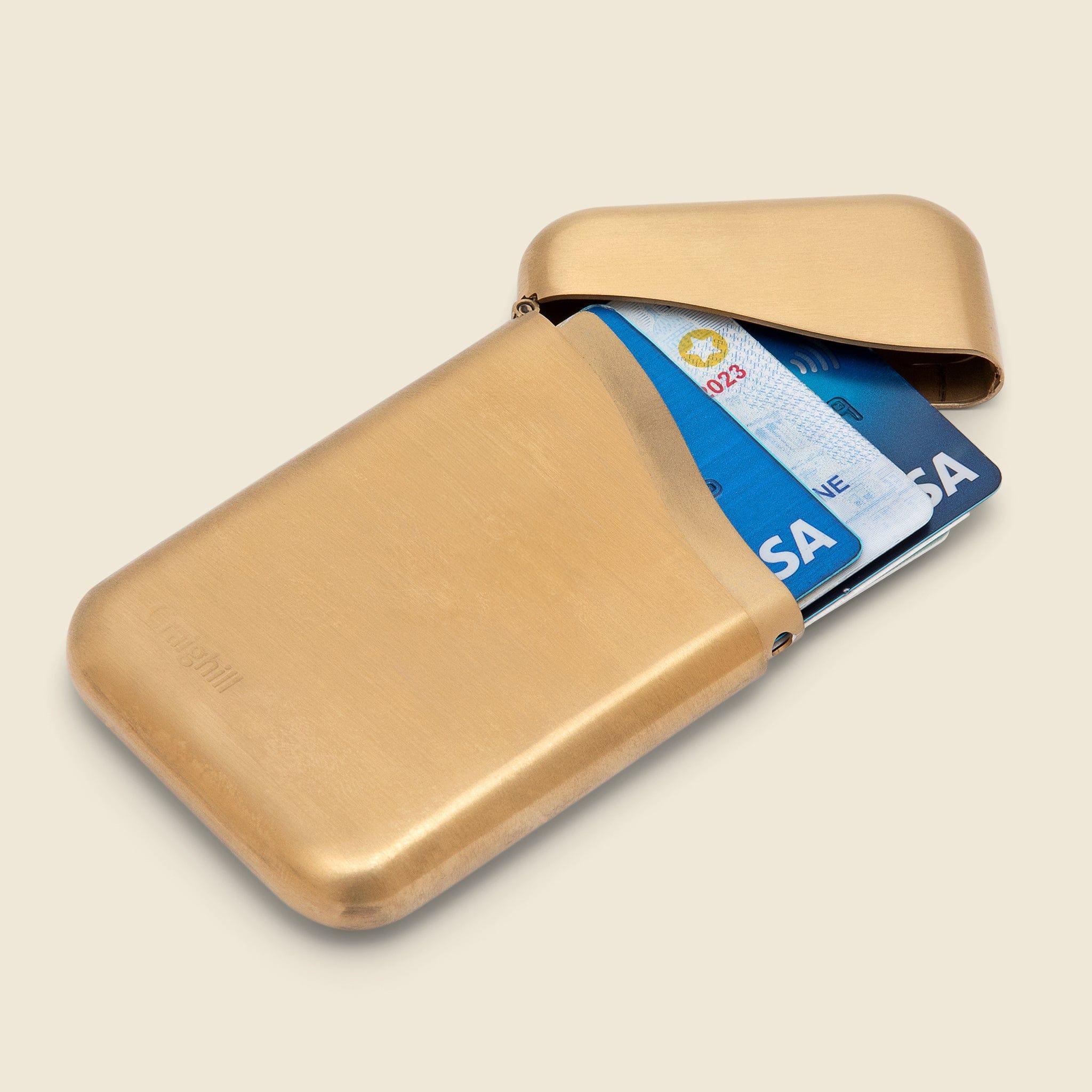 The Summit Card Case from Craighill combines durability, style, and functionality into a sleek, pocket-friendly home for your cards and cash. Featuring a hinged lid and a curvilinear cutaway for easy access, it’s made from solid stamped brass to offer a long-lasting solution for storing and protecting your everyday ess