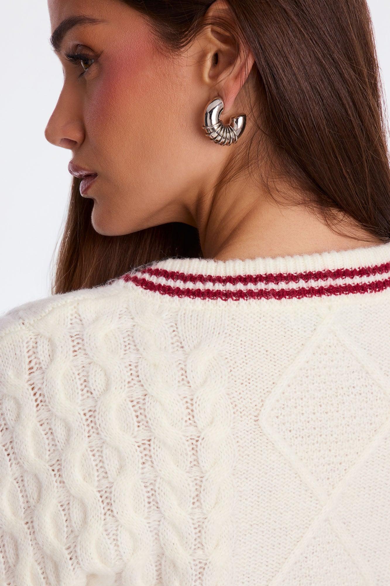 Sun Coast Cable Knit Sweater Top - White/combo Female