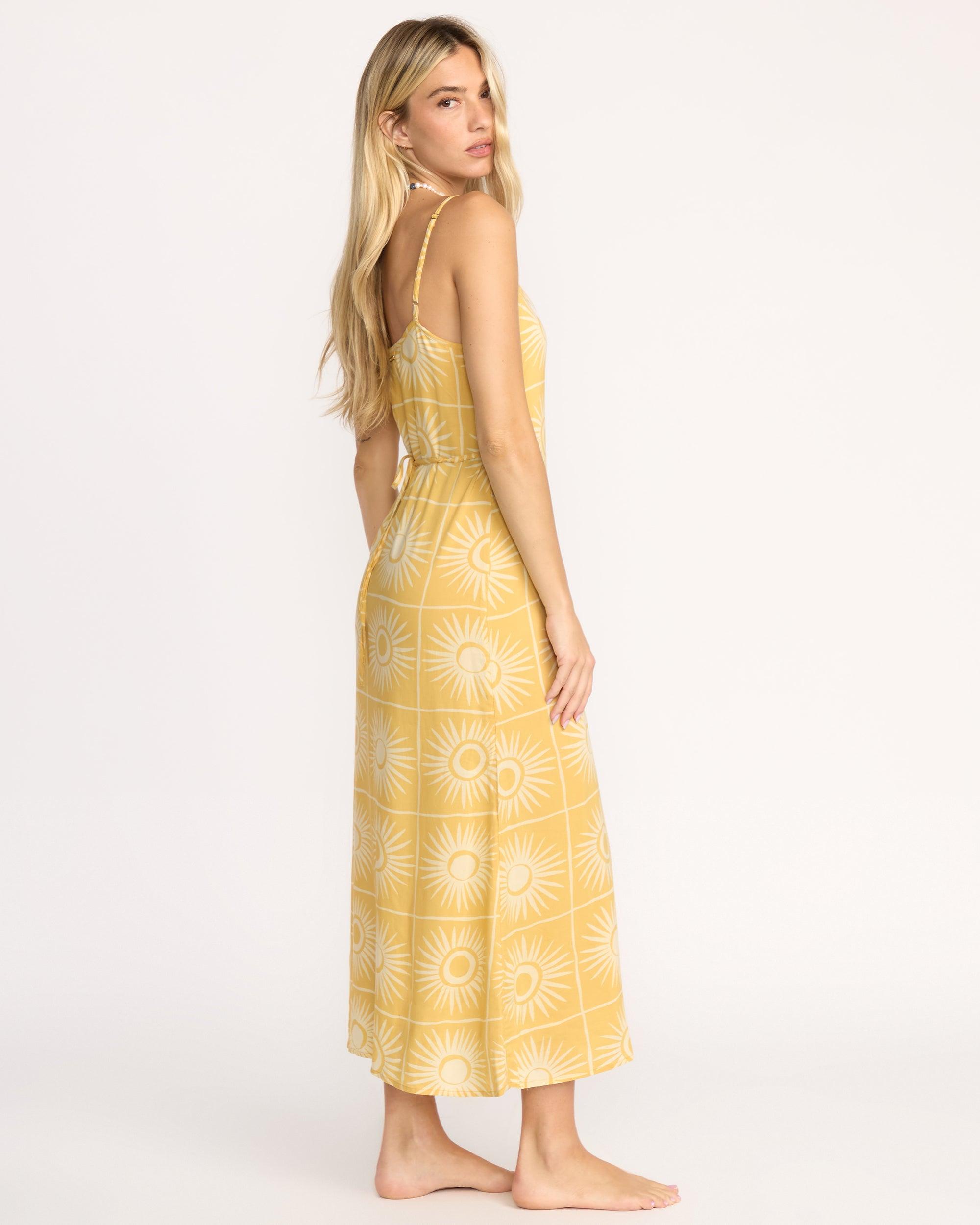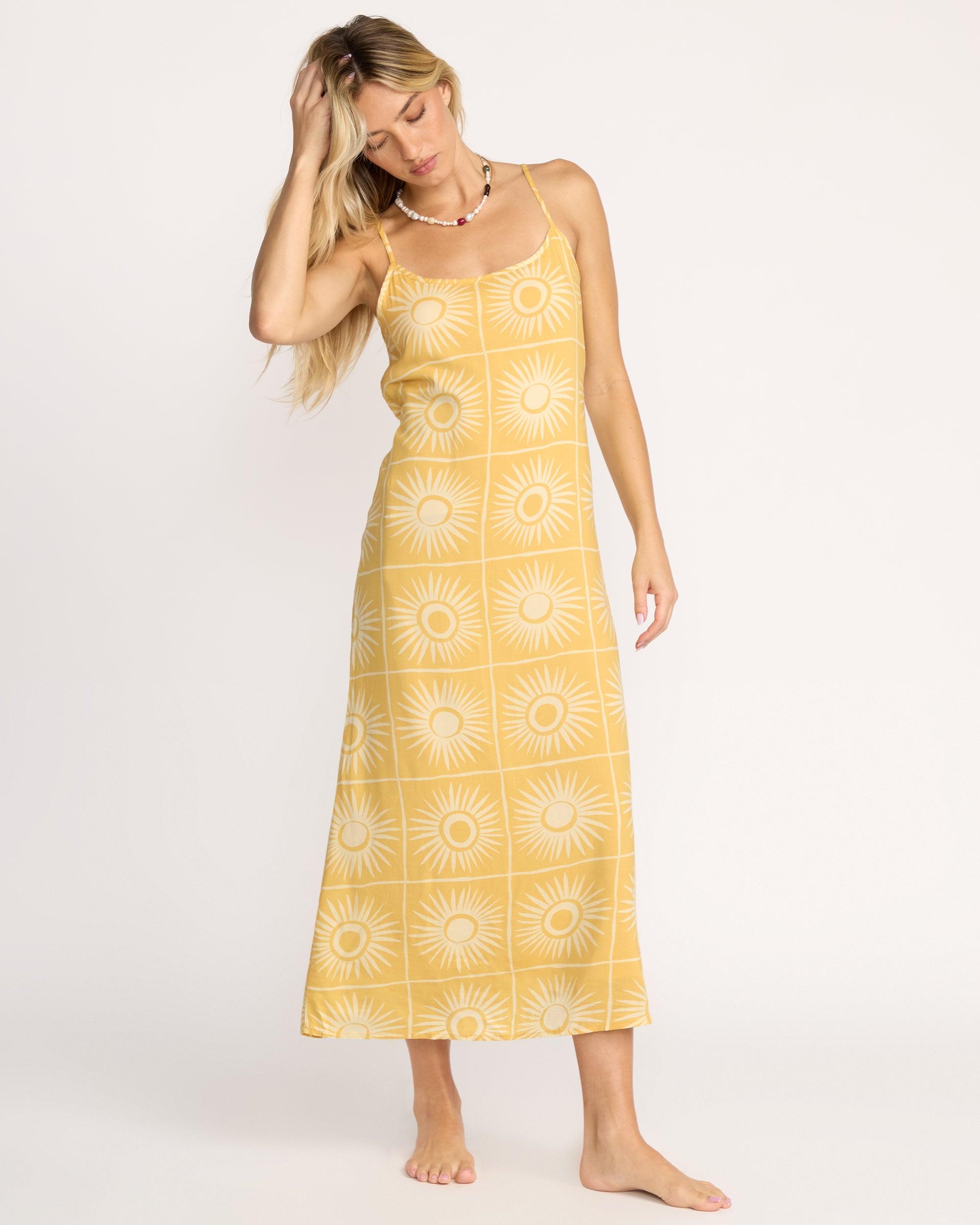 Sea breeze lifts the airy voile of our maxi dress as you stride along the pier, twirl, then cinch the back self-tie; the straight neckline and subtle metal plate keep every photo polished. Features 100% viscose voile Maxi dress Regular fit, HPS: 52" Straight. neck, self tie at back waist Metal plate