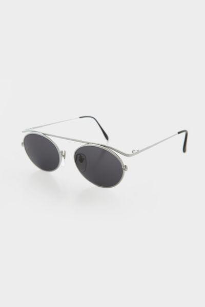 Straightforward and stylish floating lens sunglass that features a one piece brow bar. Lightweight and comfortable. New old stock. Never worn. Great condition. NOS Deadstock SIZE 48mm Eye Size 18mm Bridge 145mm Temple/Arm 5 1/4 Width 1 5/8 Height Sunglass Museum Vintage Raven Floating Lens Sunglasses in Gold, Womens at Urban Outfitters