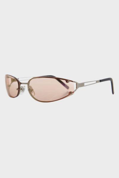 These narrow oval sunglasses features a 90s style wrap around the face curved frame with color tinted flash mirror lens. u00a0 New old stock. Never worn. Great condition. SIZE 68mm Eye Size 20mm Bridge 140mm Temple/Arm 5 1/2 Width 1 3/8 Height Sunglass Museum Vintage Rickey Curved Sunglasses in Orange, Womens at Urban Outfitters