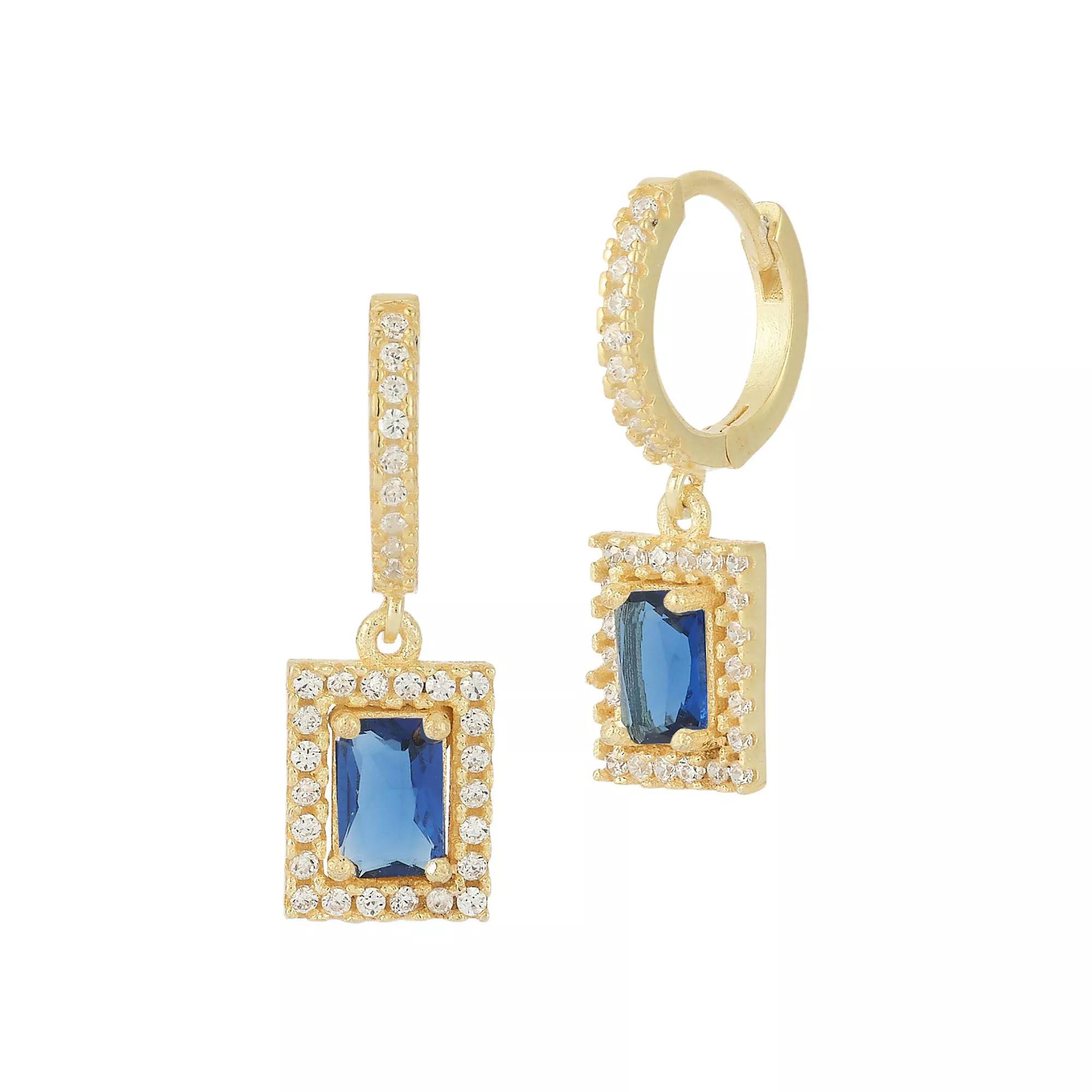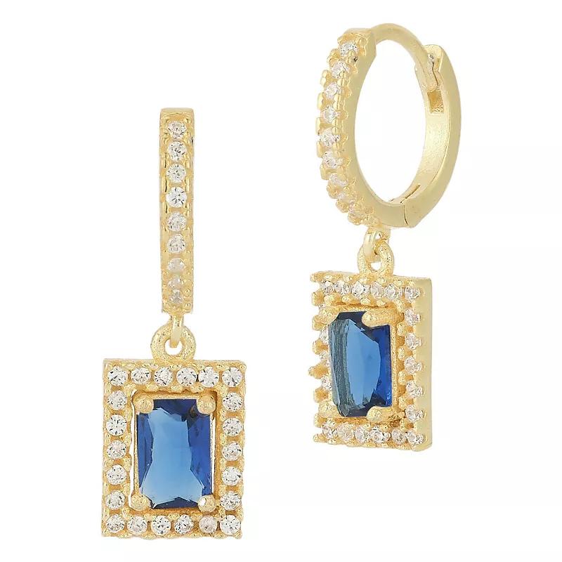 Elevate your look with the eye-catching beauty of these Sunkissed Sterling 14k Gold-Over-Silver Cubic Zirconia Cluster Charm Huggie Hoop Earrings. Click on this JEWELRY & WATCHES GUIDE to learn about fit, styles, materials and more! FEATURES .95 in. drop Backings: click-it Nickel free Metal: sterling silver Plating: rhodium & 14k gold Finish: polished Packaging: pouchSTONE DETAILS Stone type: cubic zirconia Center stone size: 3.5mm x 6mm Shape: emerald cut, round Setting: prong Color: Yellow. Gender: female. Age Group: adult.