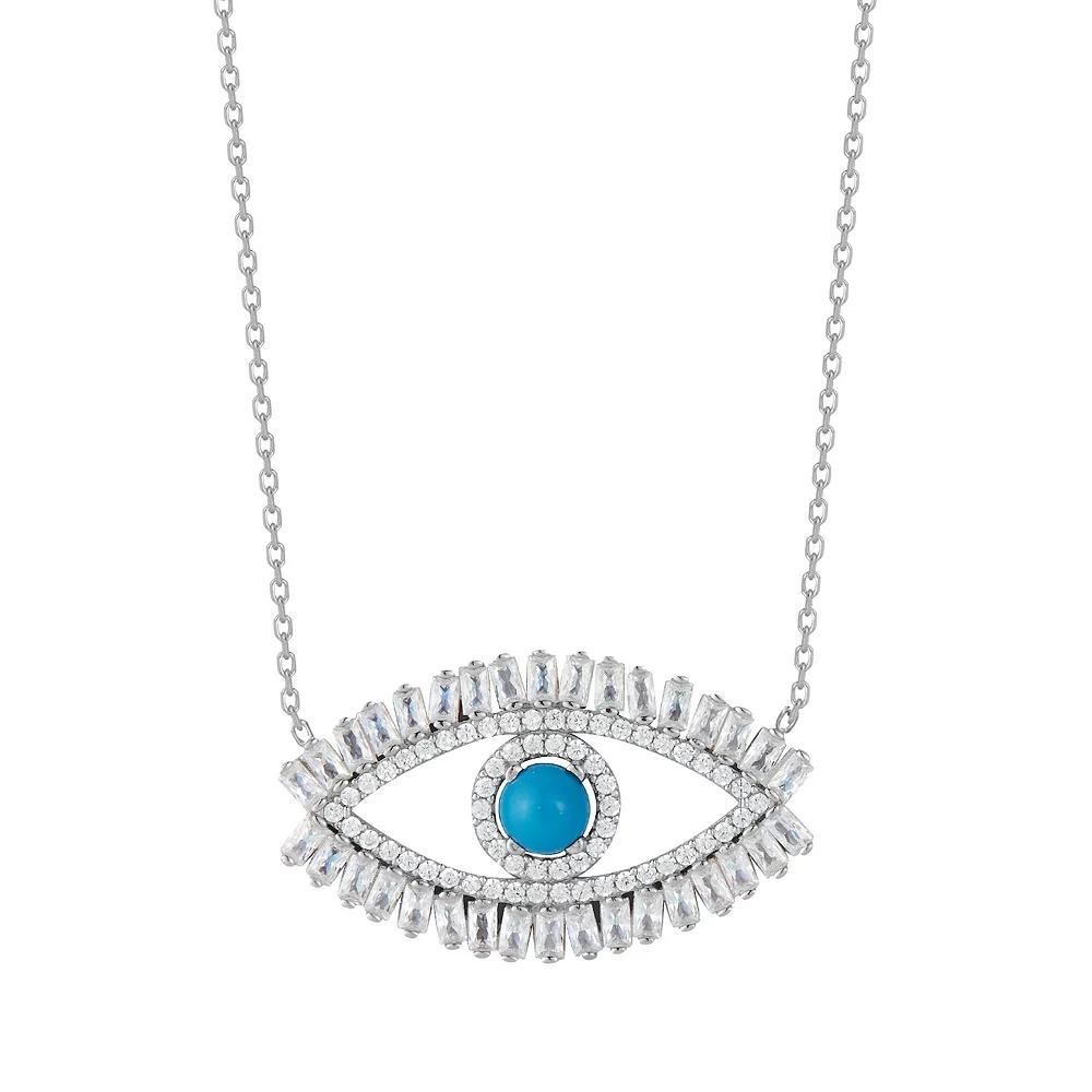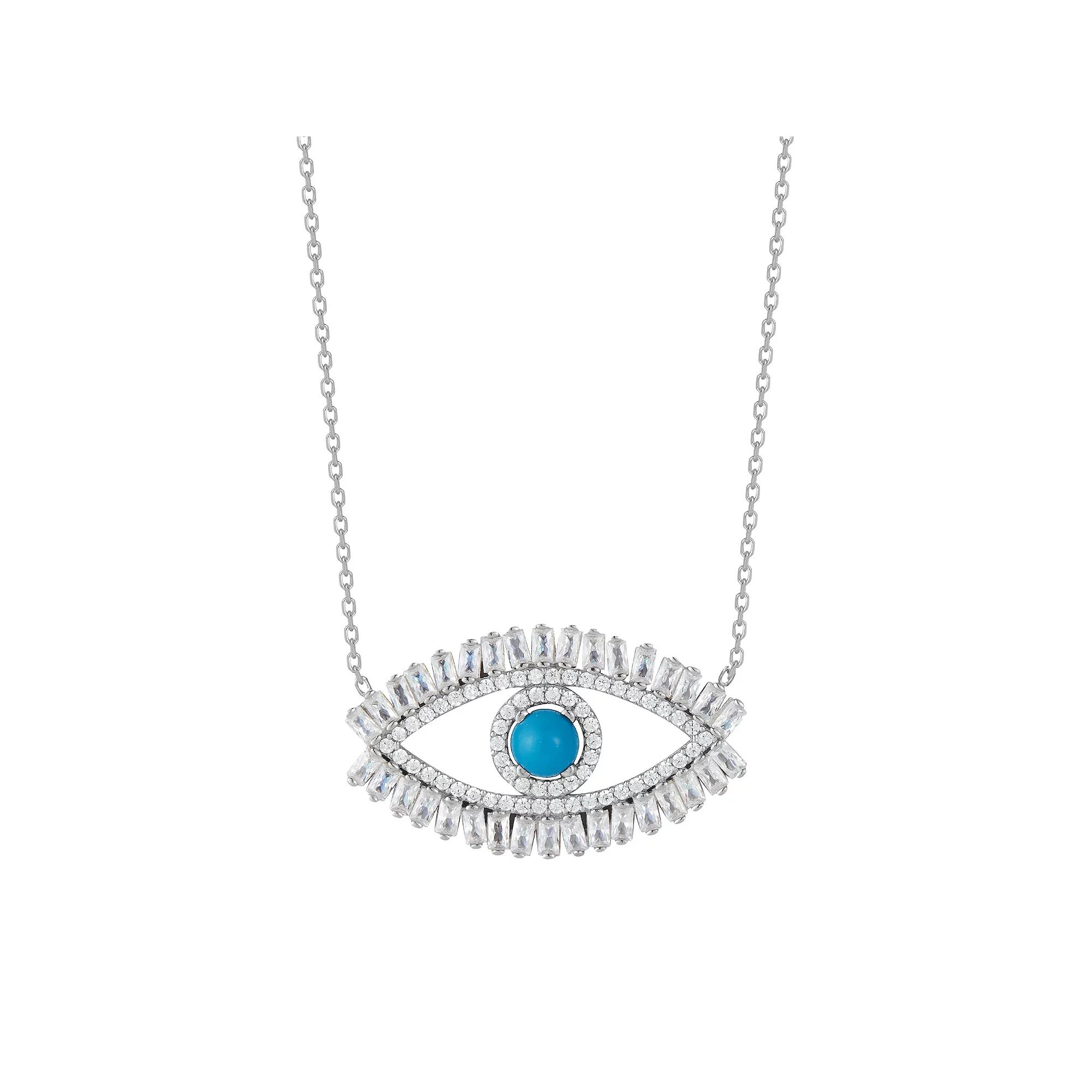 Sunkissed Sterling Cubic Zirconia Open Evil Eye Pendant Necklace, Womens, Silver Tone