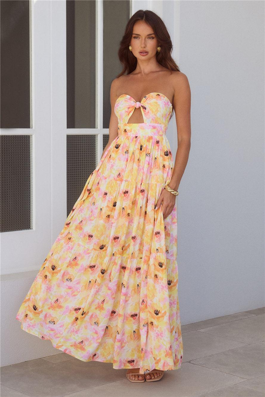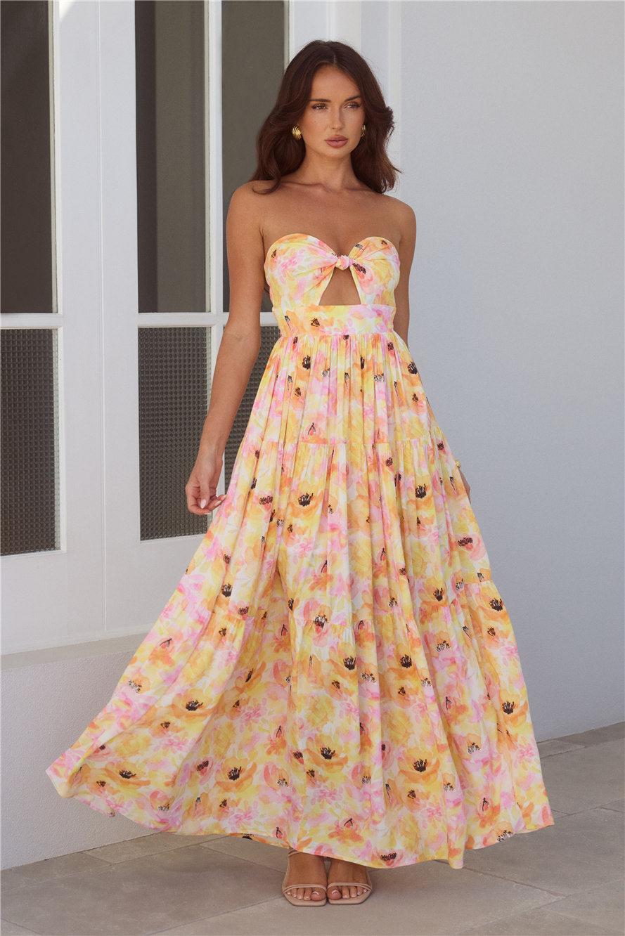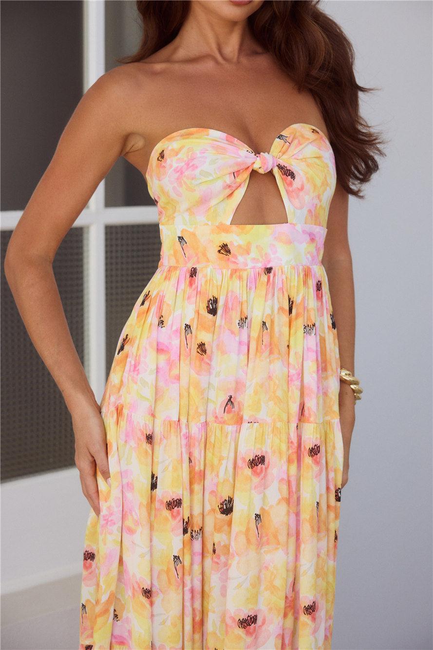 Sunlit Romance Strapless Maxi Dress Print