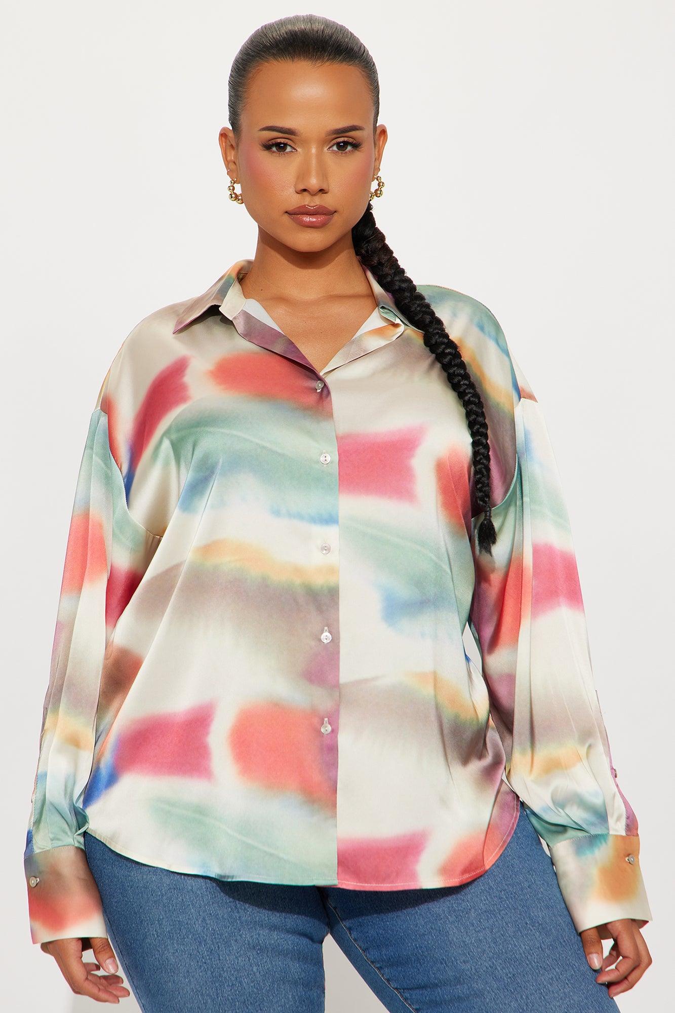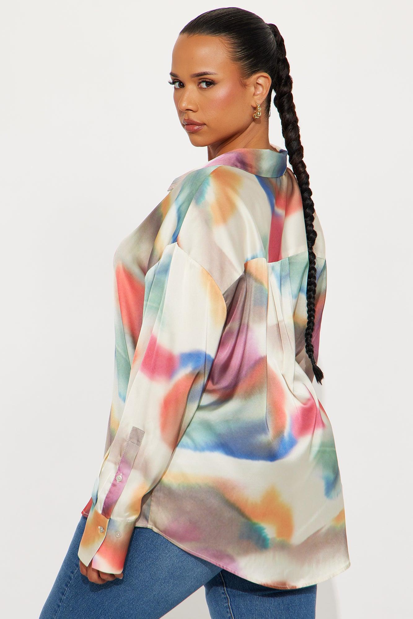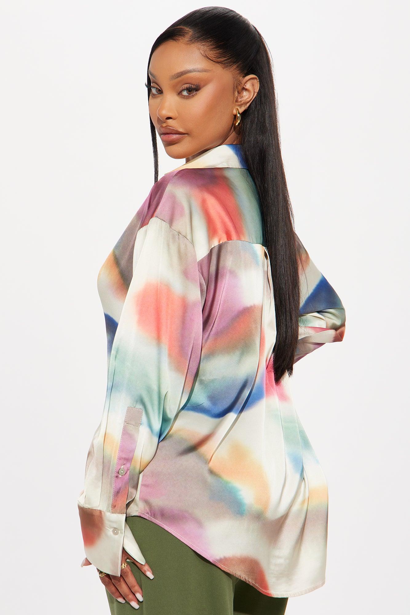Sunsets In Greece Satin Shirt - Multi Color