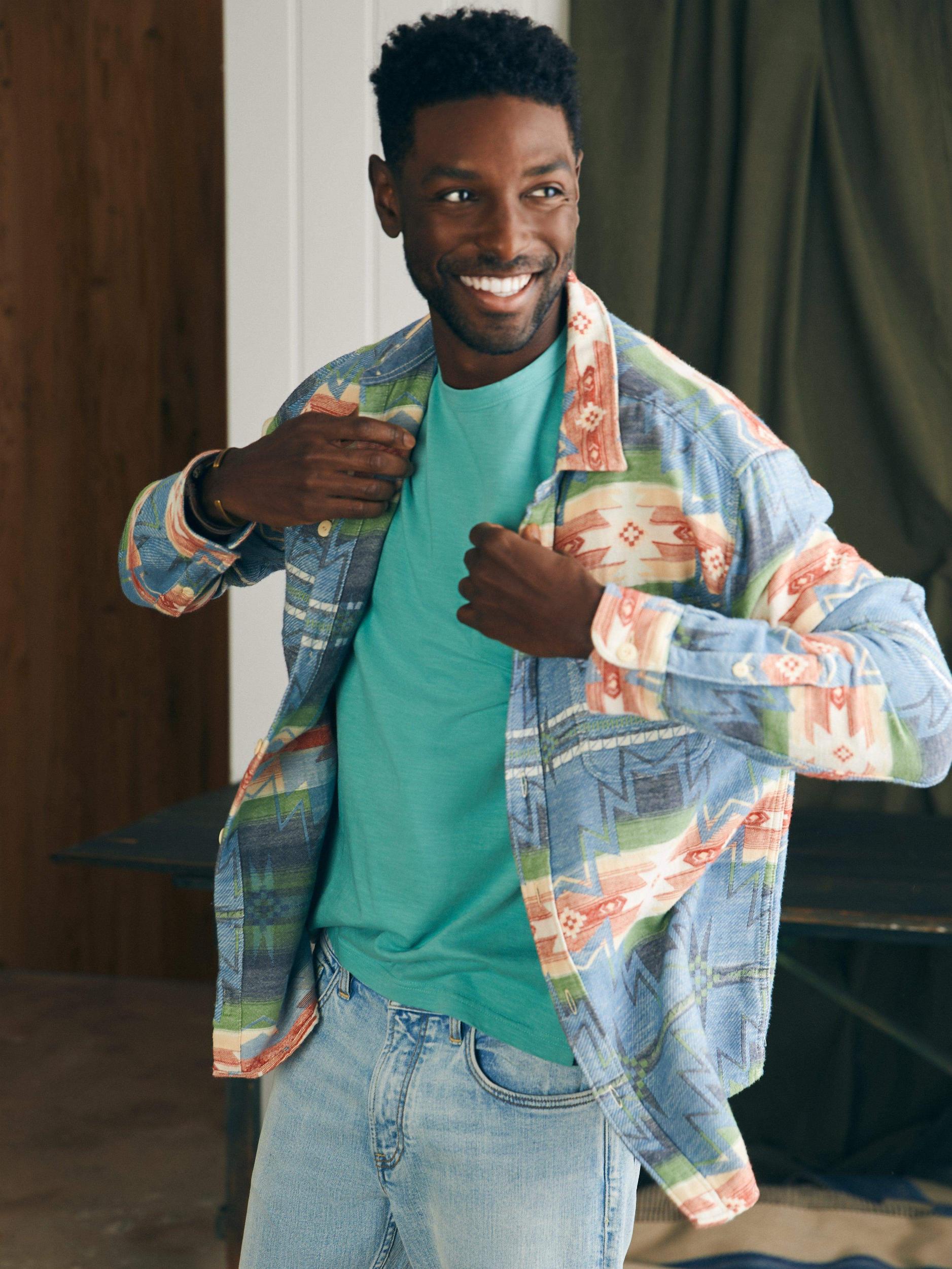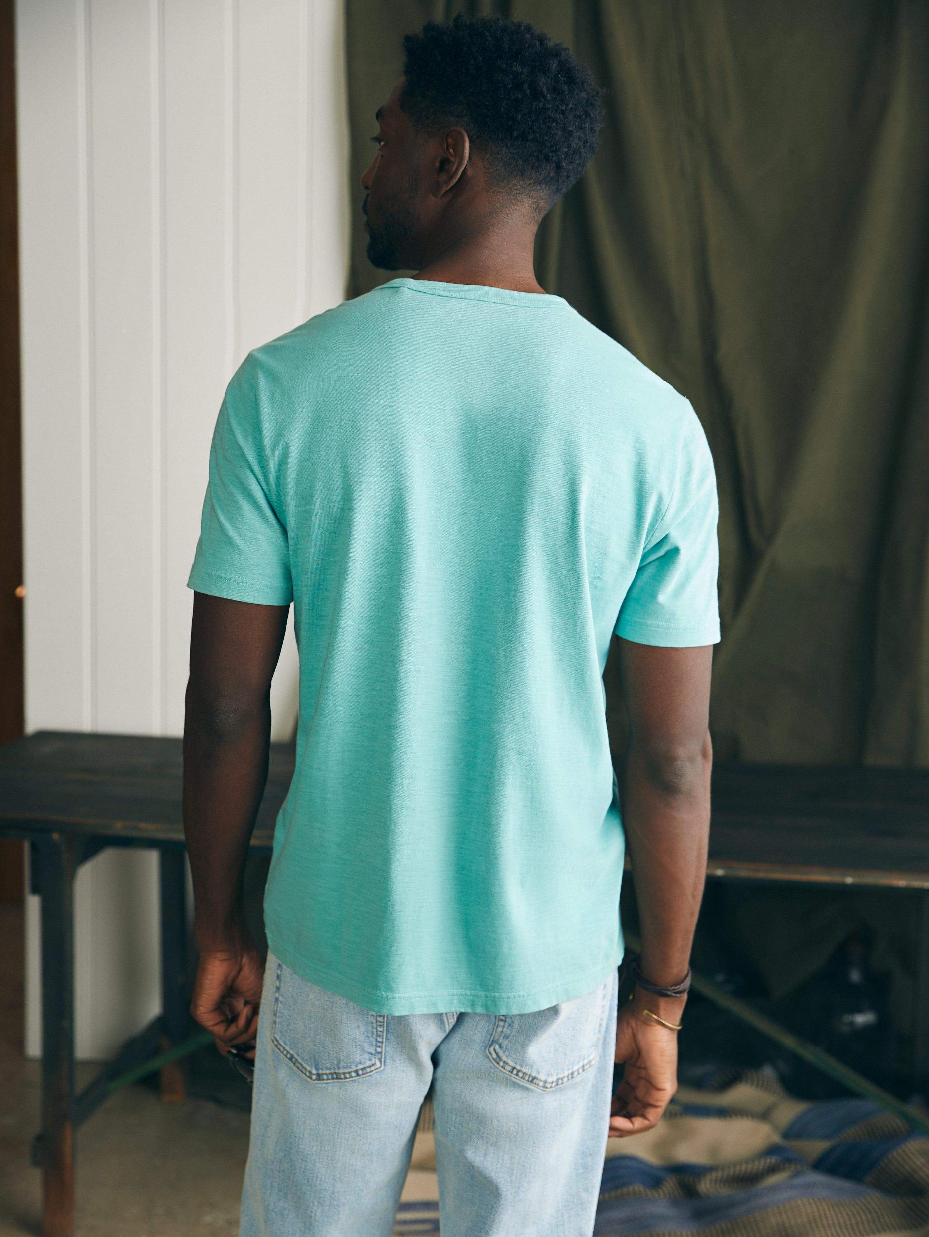 Inspired by iconic vintage T-shirts, our Sunwashed Tees are crafted in organic cotton that has been garment washed for a perfectly lived-in look and feel. Cut with a relaxed silhouette, this is the timeless wear-with-everything tee. Some call these basics – we definitely don't. Fit: Relaxed body with a straight fit from the chest to the hem. Straight sleeves. Detail: Chest pocket. Printed label at back neck. Material: 100% Organic Cotton Model: Jamal is 6’2 wearing size Medium Care: Turn inside out. Machine wash cold with like colors. Gentle cycle. Do not bleach. Tumble dry low. Remove promptly. Cool iron when needed. MKC0089-IDL