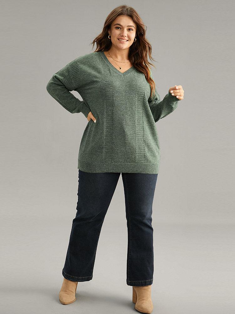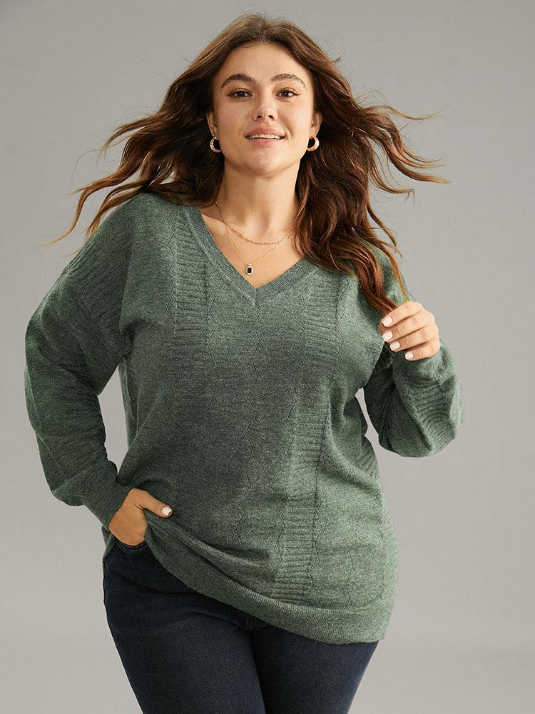 Shop Supersoft Essentials Plain Texture V Neck Pullover now and redefine your style with confidence at BloomChic. Tailored for mid and plus-size women. This trendy Sweaters Cardigans Women, sizes 10-30. Season:Winter;Color:DarkGreen;Style:Casual;Neckline:V-neck;Sleeve Type:Regular Sleeve;Pattern Type:Plain;Details:Plain, Texture, Elastic cuffs;Pocket:No-pocket;Belt:No-belt