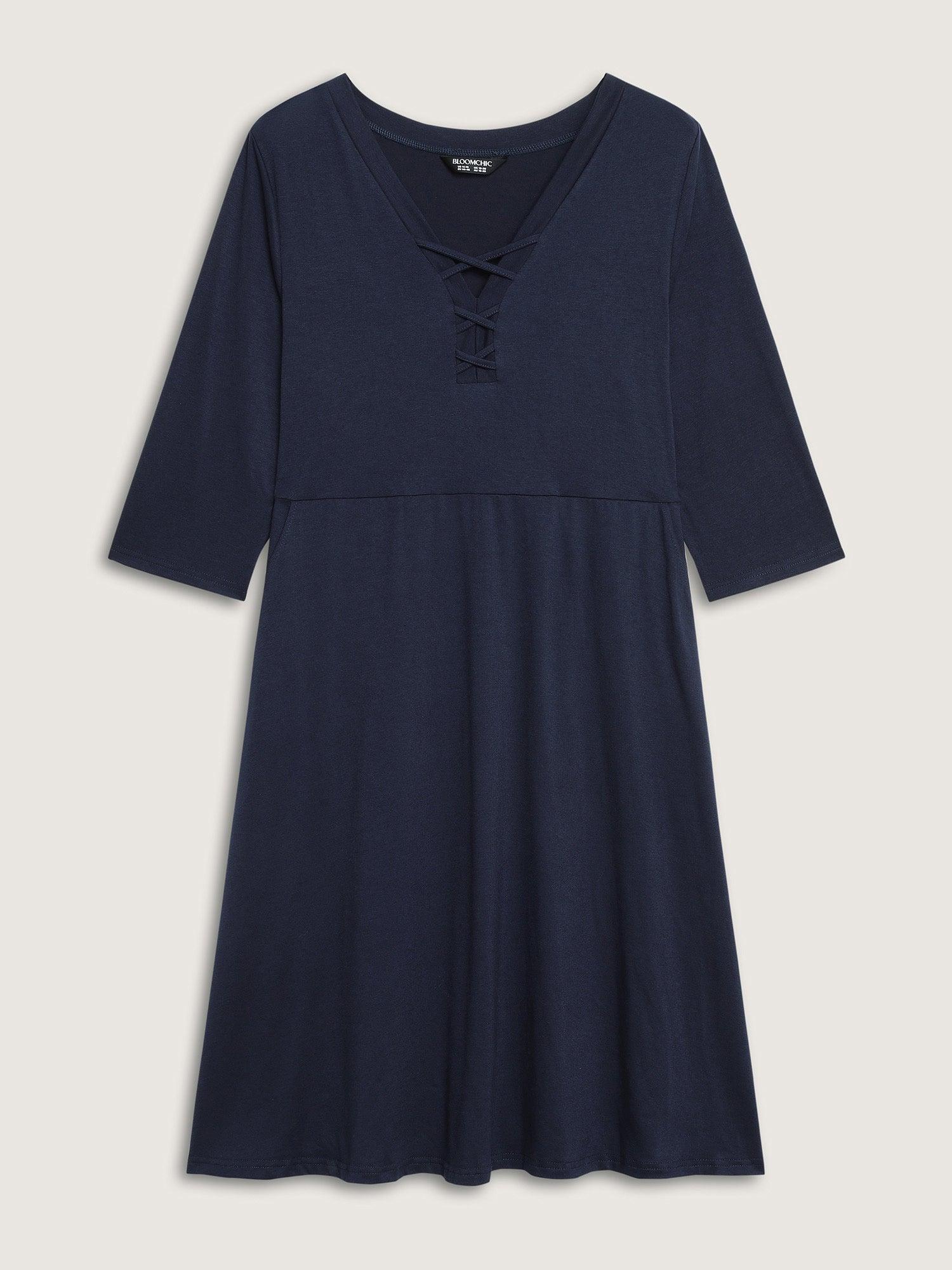 Supersoft Neck Tie-Up Pockets Midi Dress Female