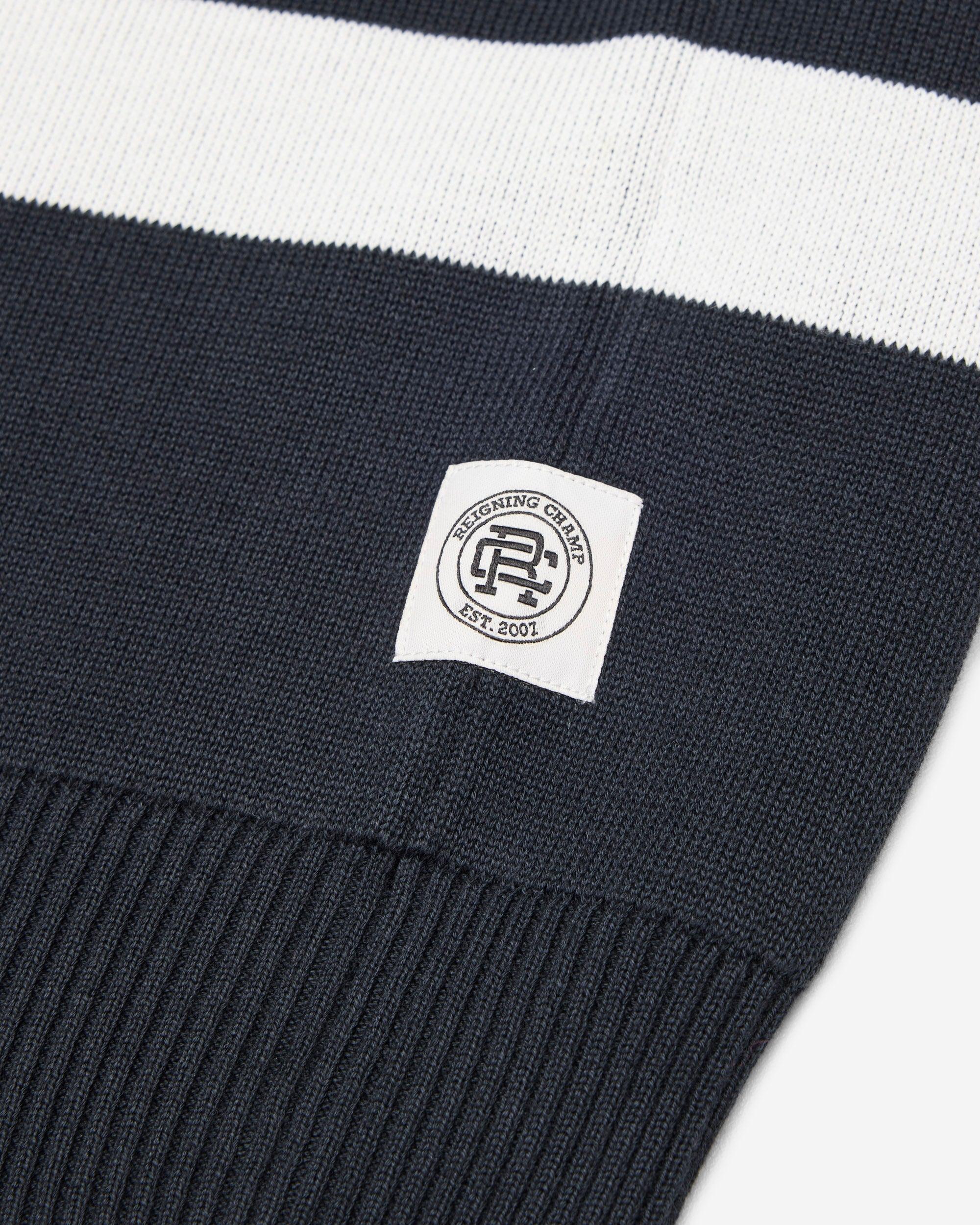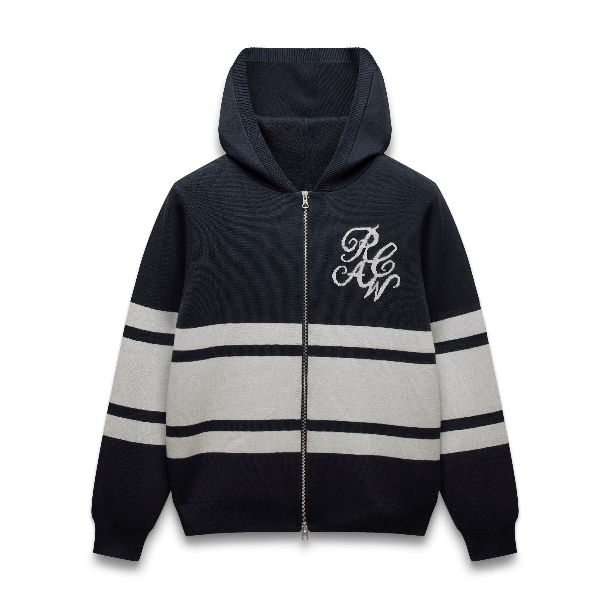 Overview Inspired by the scrum, this intarsia knit hoodie is crafted from fine Supima cotton, prized for its exceptional softness, strength, and breathability. Cut in a standard fit with fully fashioned seams. Designed with a YKK two-way metal zipper, rib hood, cuffs, and hem. Lycra-blended trim enhance shape retention and durability. Finished with the RCAW logo and classic rugby striping. Details 12-gauge knit Highly breathable Soft hand Durable Intarsia knit graphics Set-in sleeves 1x1 rib hood YKK two-way metal zipper 2x2 rib cuffs and hem Made in China Style: RC-6107 XS S M L XL XXL Shoulder Width 41.5 42.5 44 45.5 47.5 49.5 Chest Width 52 54.5 57 61 65 68.5 Body Length 65 66.5 68.5 70.5 72.5 74.5 Sleeve Length 63.5 65 66 67.5 68.5 70