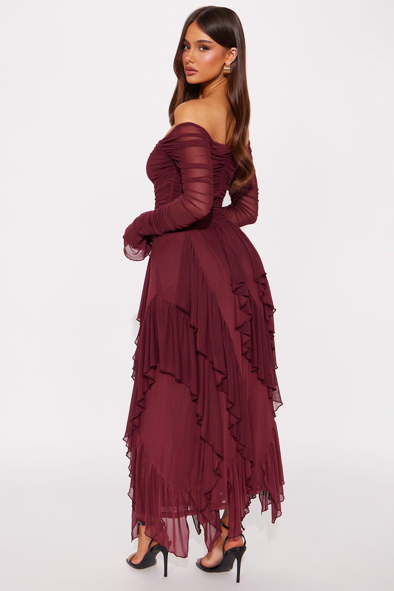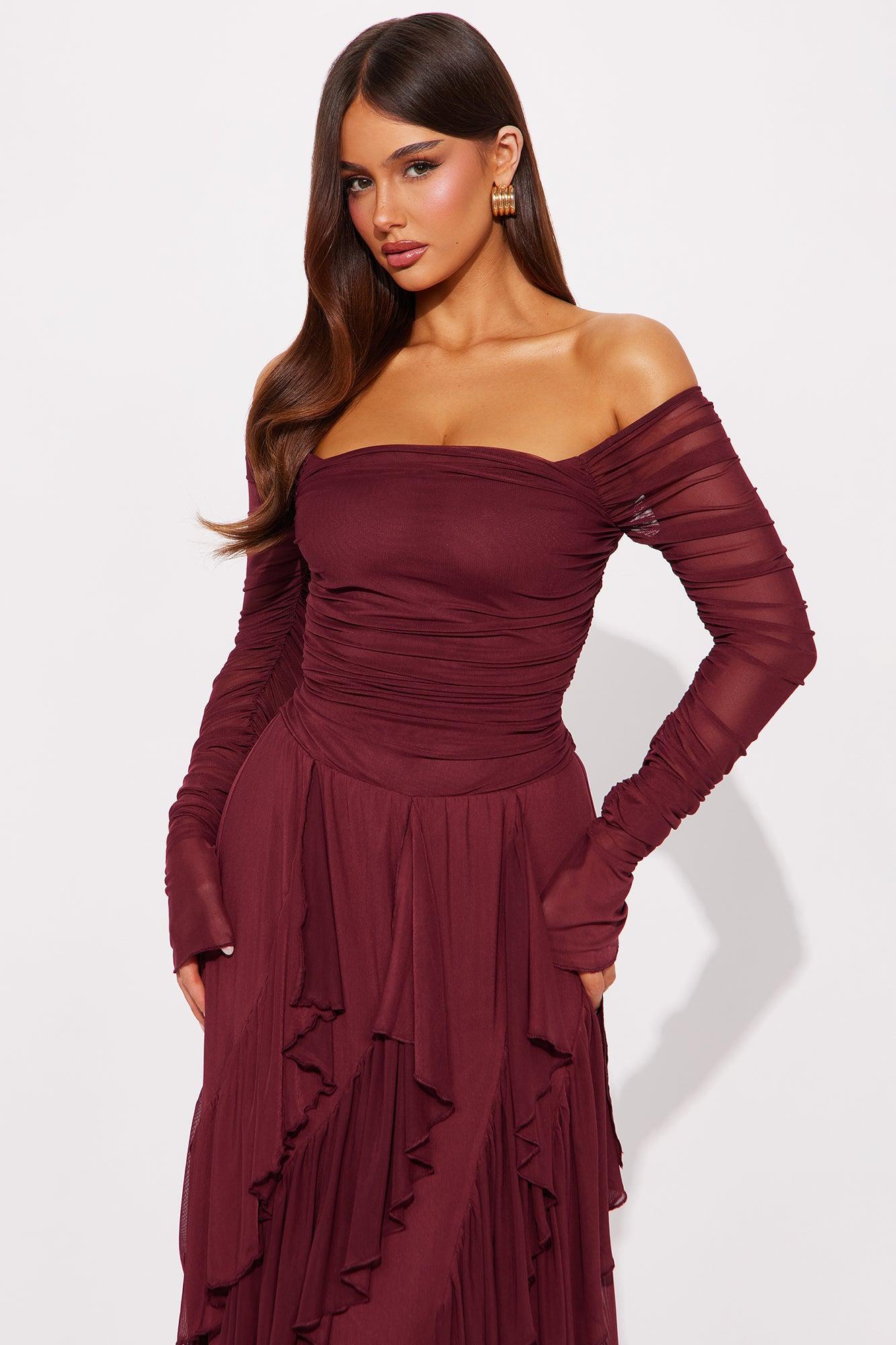 Sweet Honey Mesh Maxi Dress - Burgundy Female