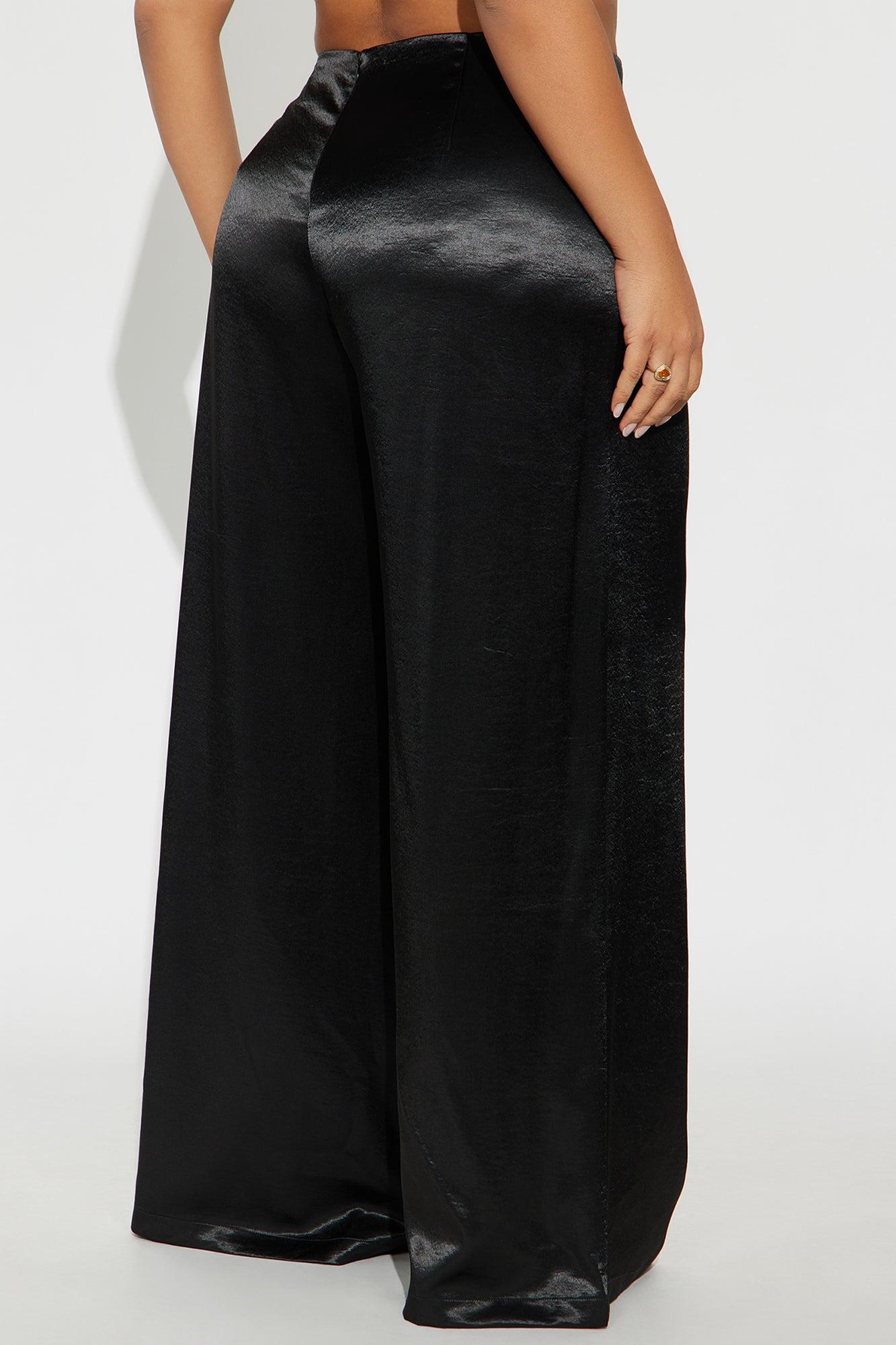 Sweet Serenade Satin Wide Leg V Front Pant 33 - Black Female