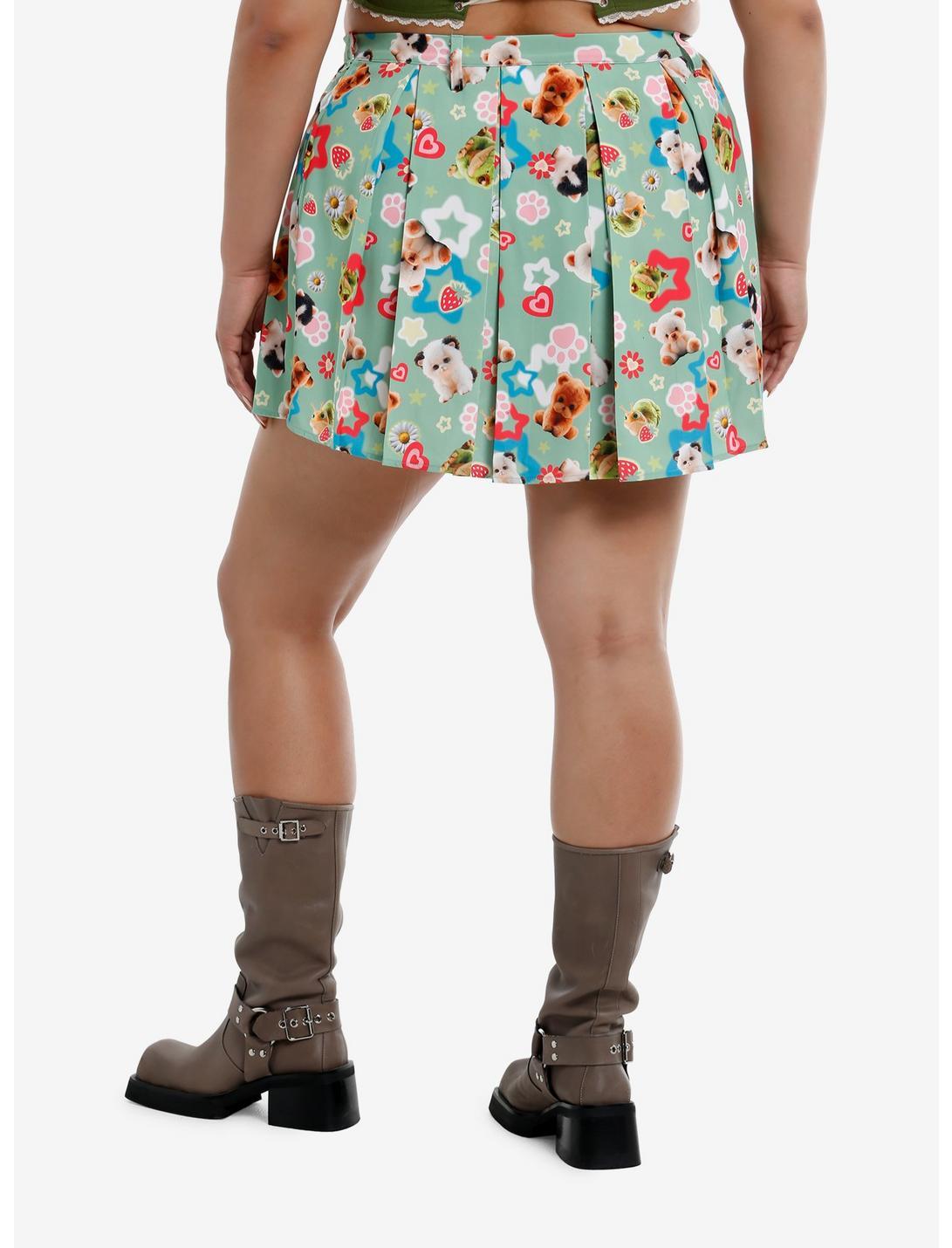 Unleash ultimate cuteness with this paw-sitively adorable skirt! This green piece has pleats and is covered in a colorful allover print of realistic plush cats, bears, frogs and more. Plus, paw prints and stars. Please note: Style is fitted with no stretch; size up for a looser fit.100% polyesterWash cold; dry lowNon-stretch materialLength: 17''ImportedModel is 5'10''Model wears size 1