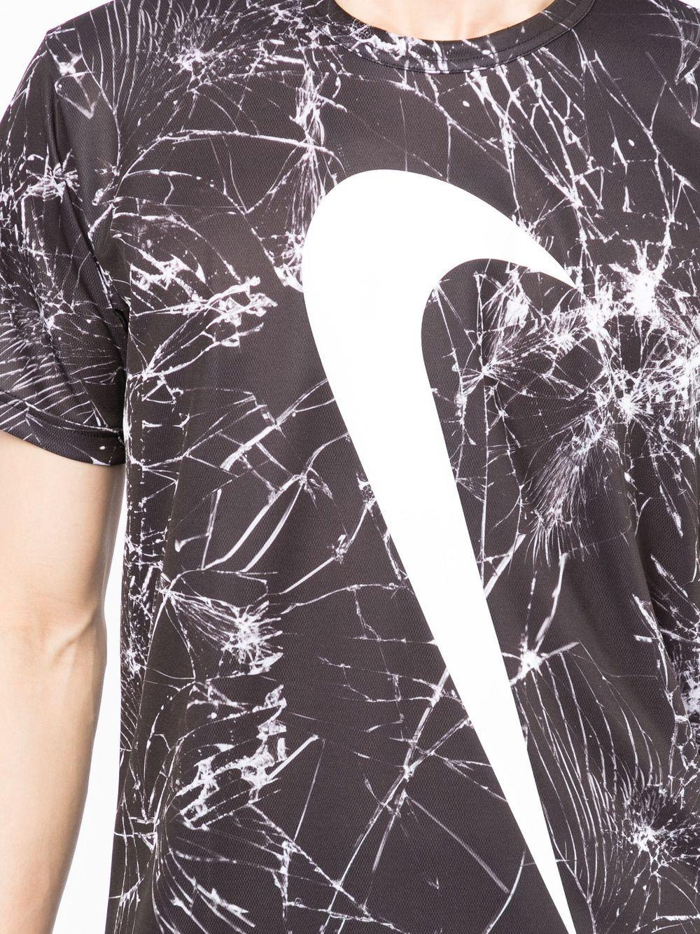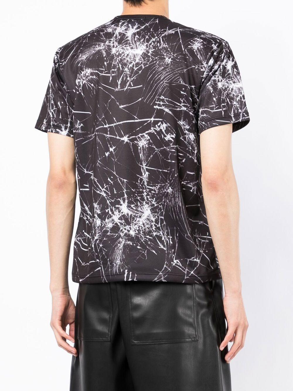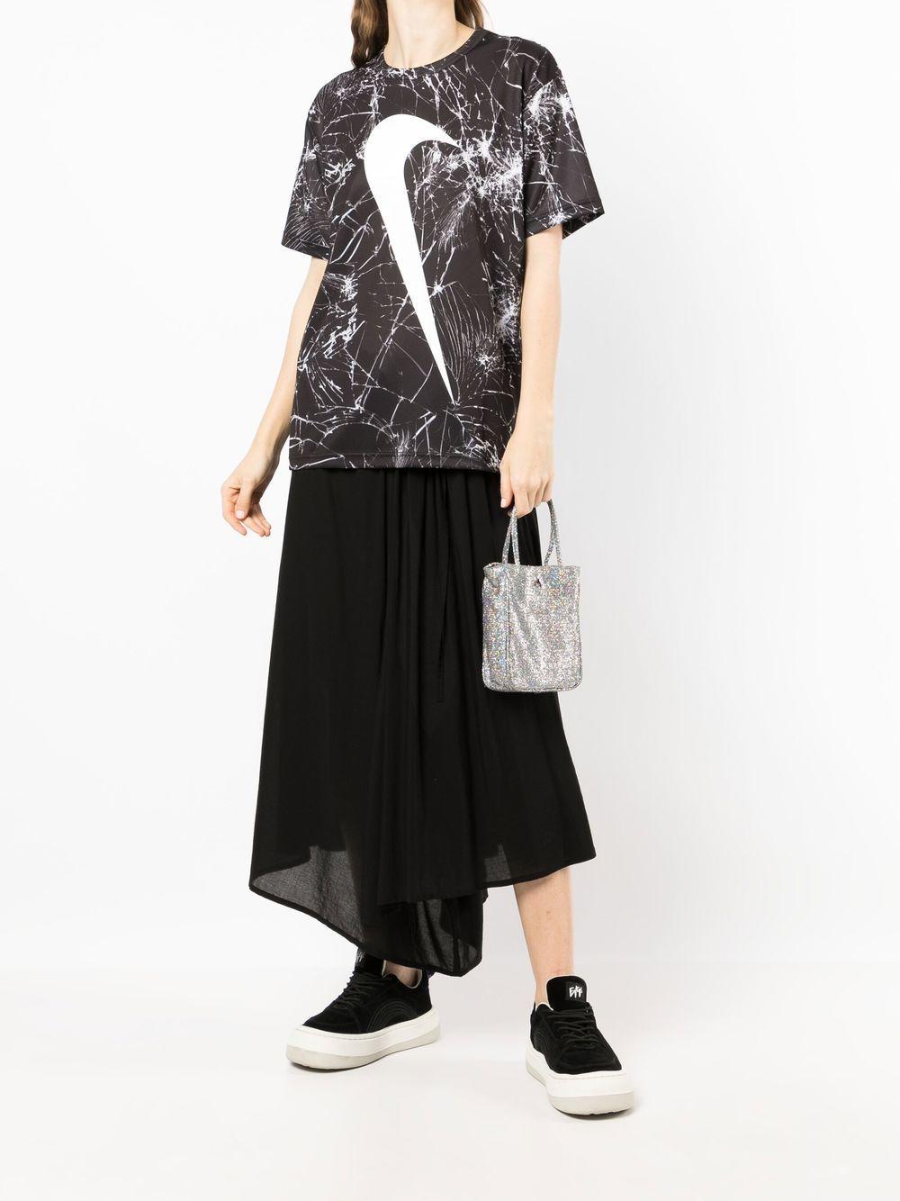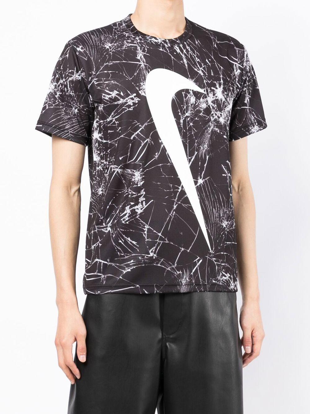 Black Comme Des Garçons Swoosh-print cracked T-shirt | Black | Polyester | T-Shirts & Jersey Shirts | Tops | Clothing | Women | T-Shirts | T-Shirts & Vests | Clothing | Men
