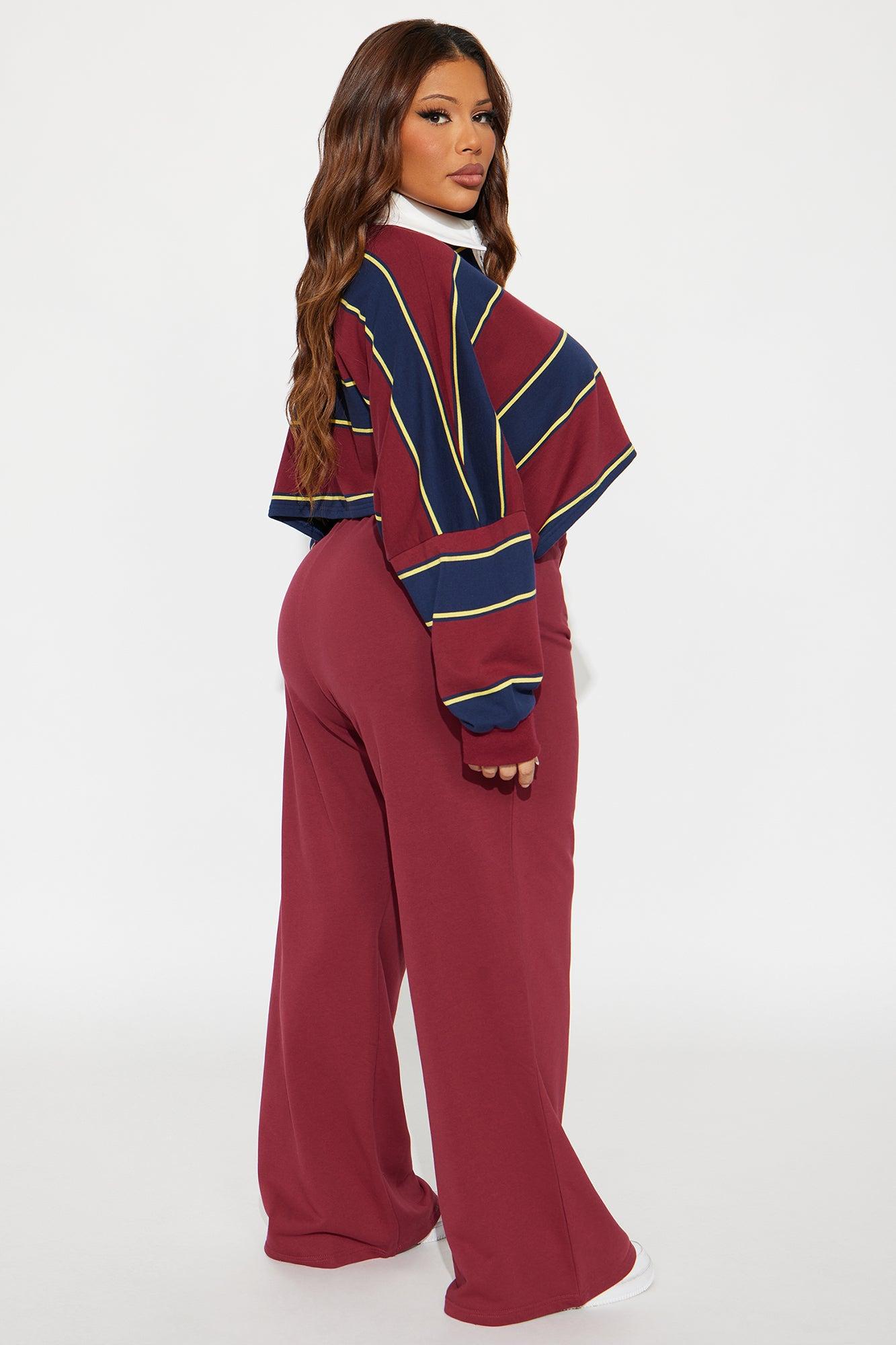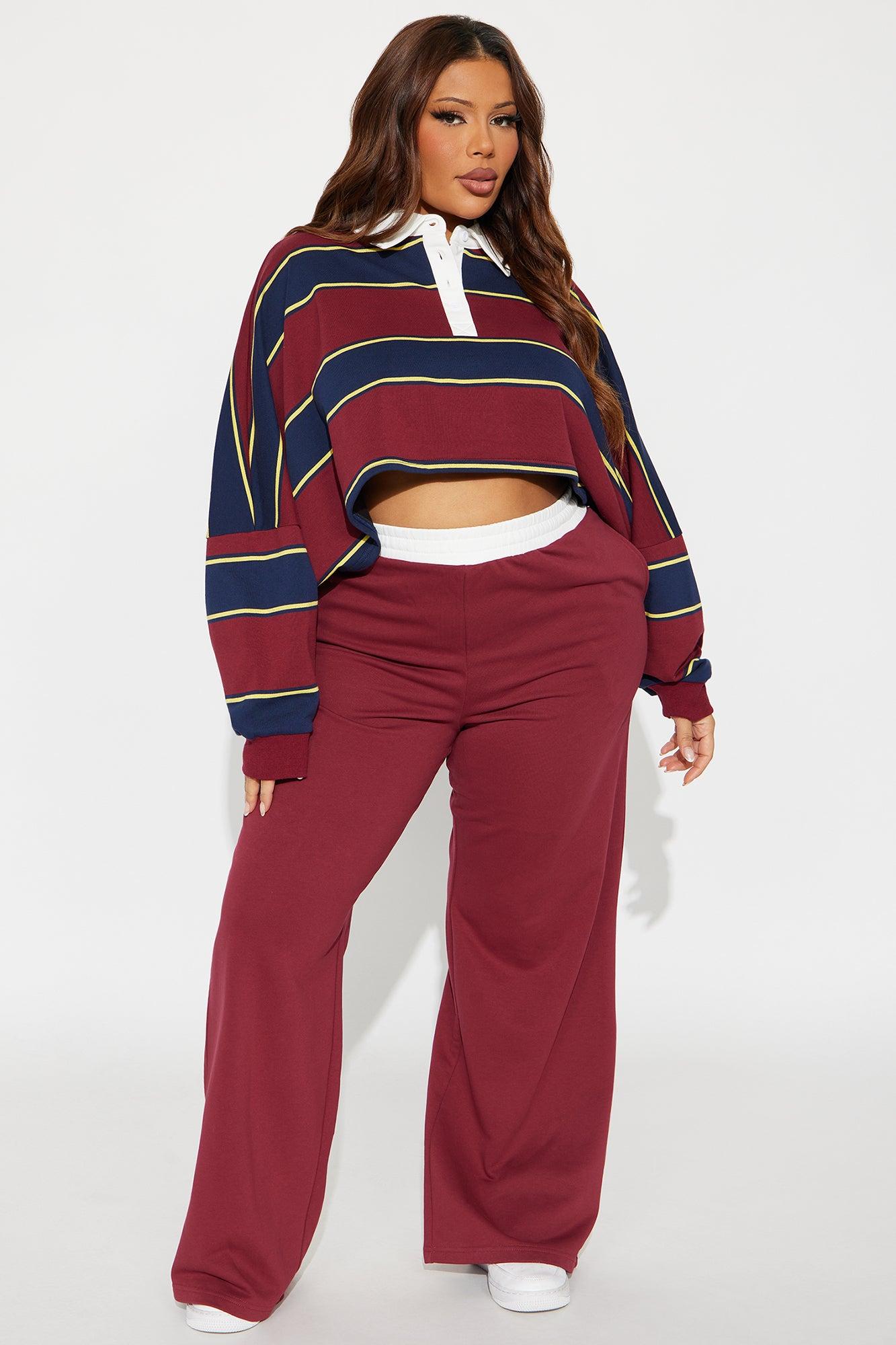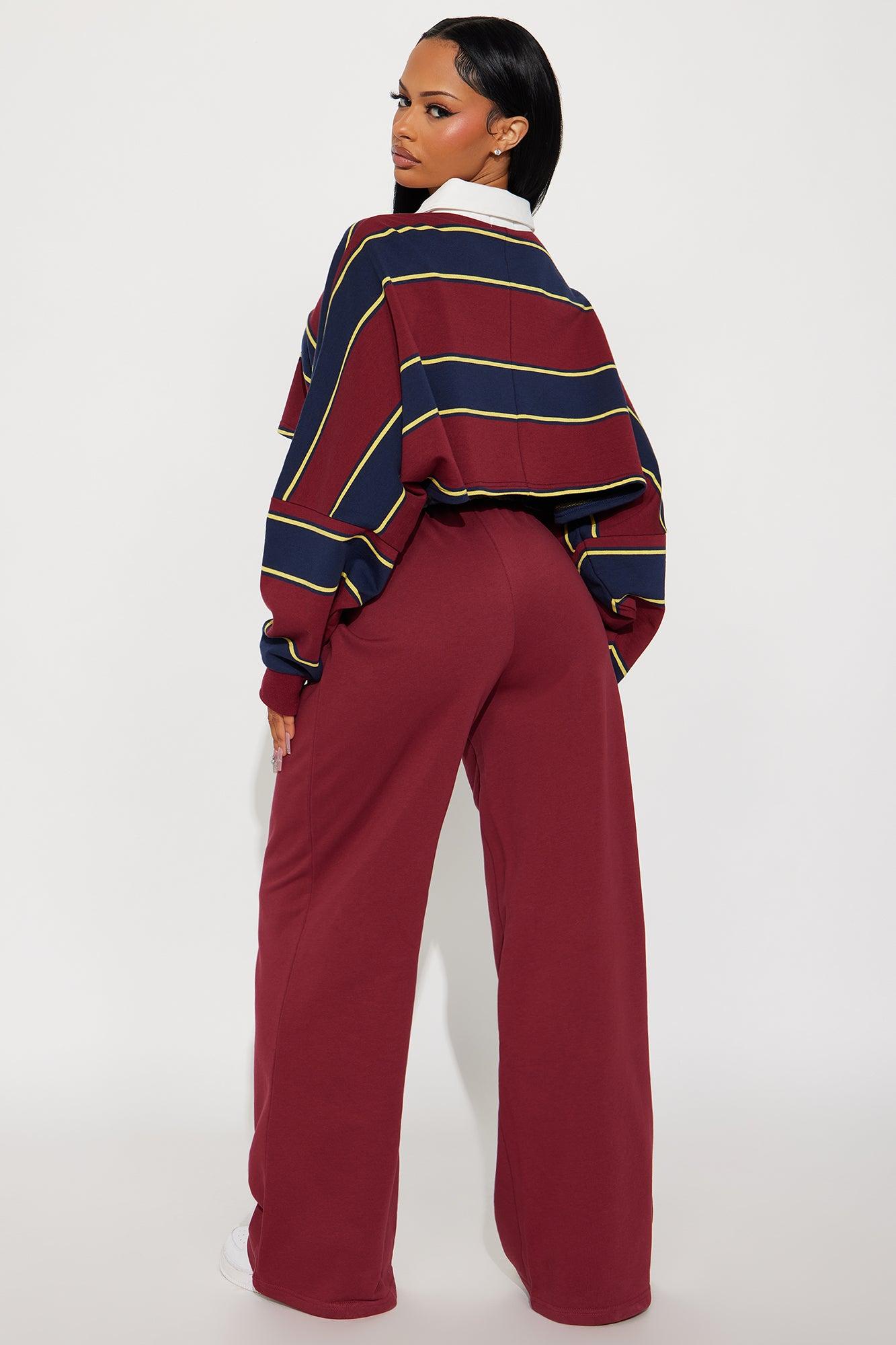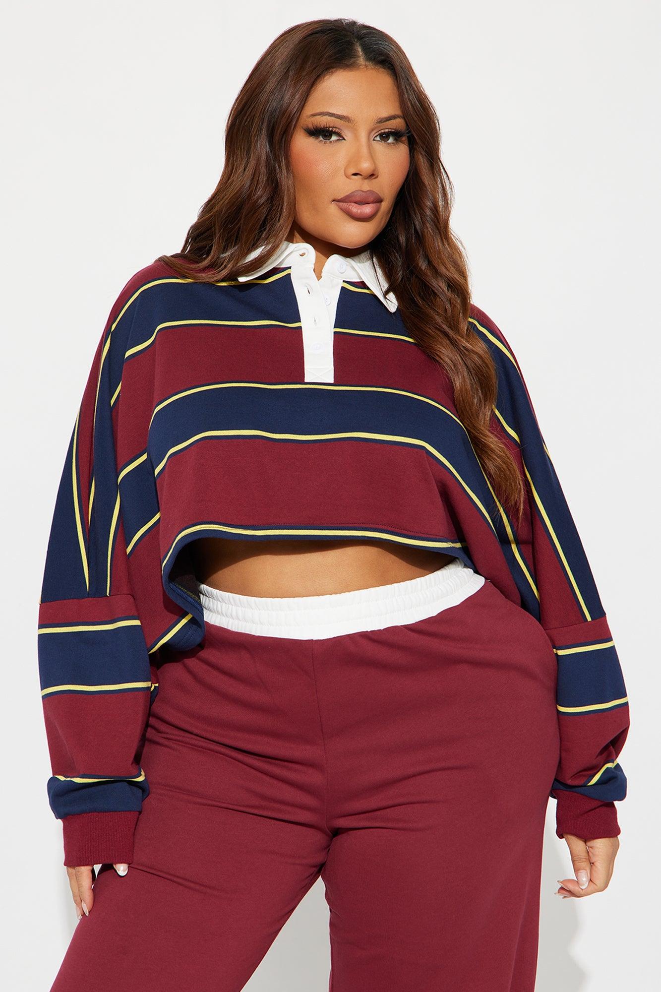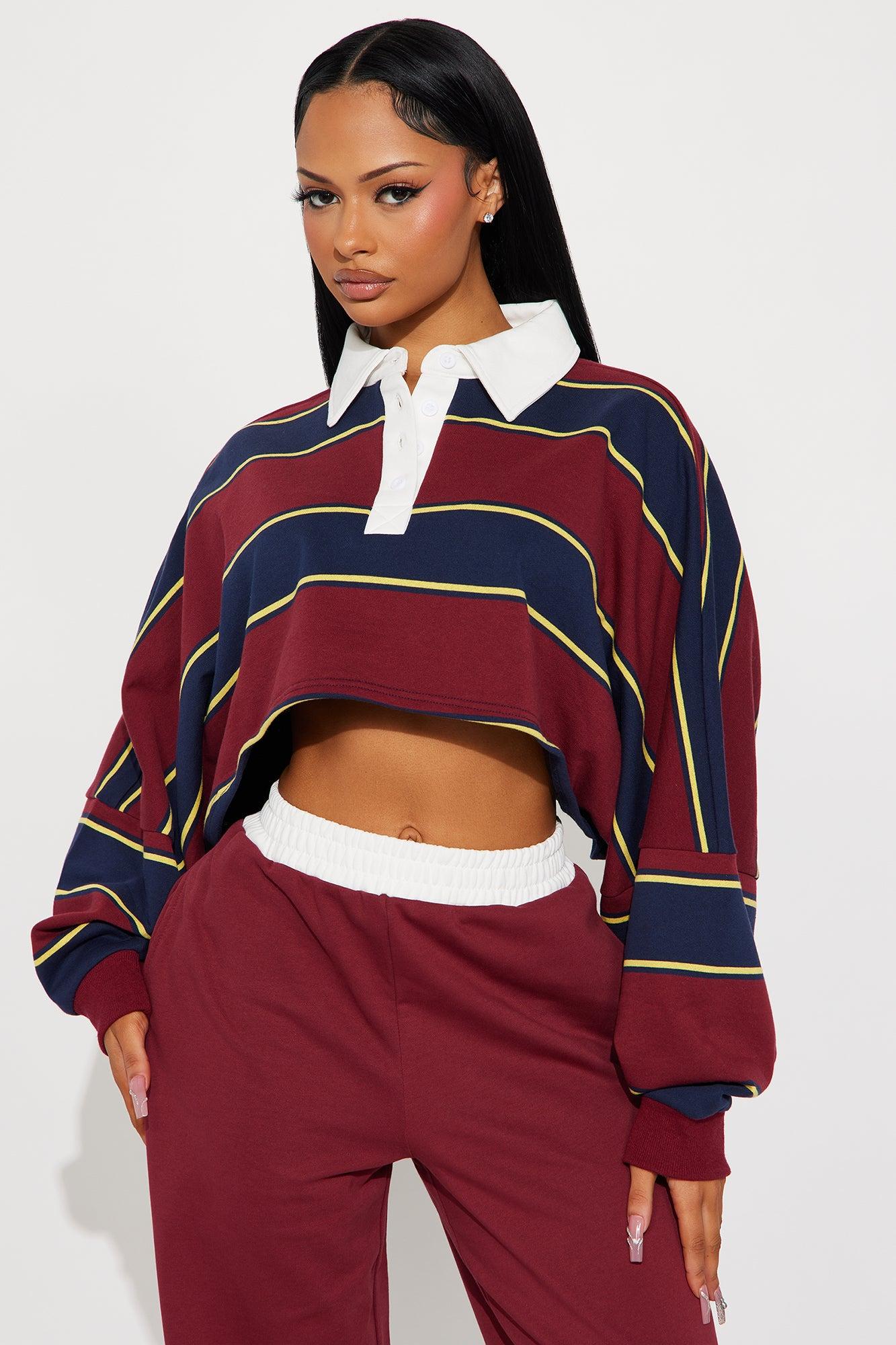 Sydney Striped Polo Lounge Set - Burgundy Female