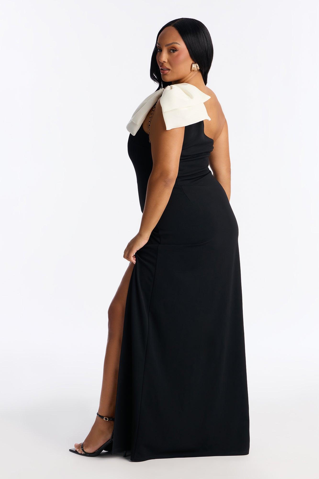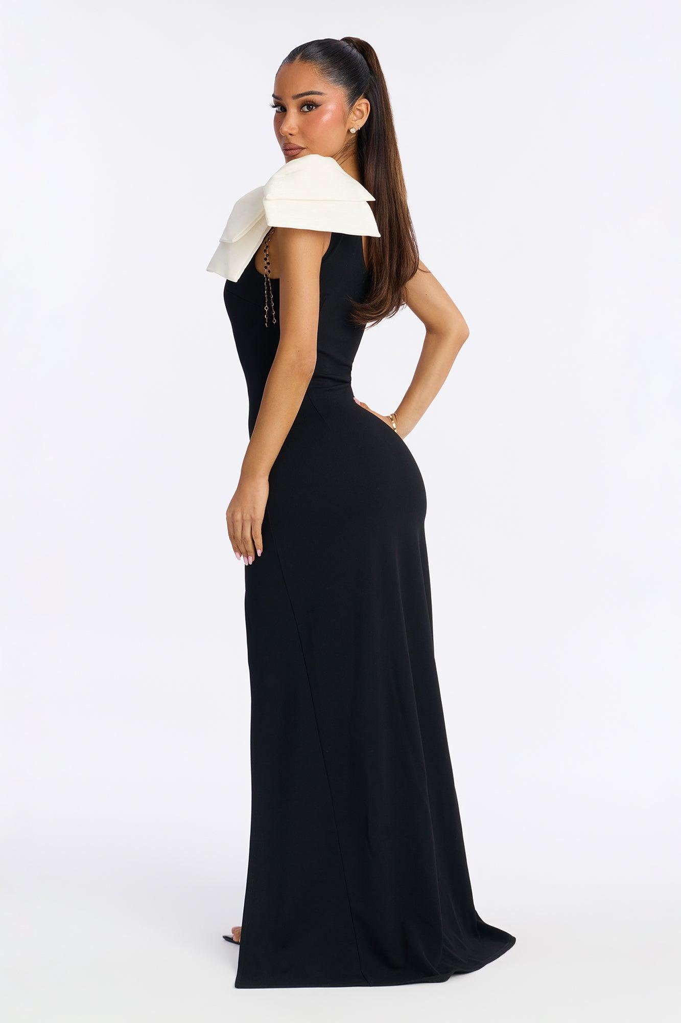 Sylvie One Shoulder Crepe Knit Gown - Black/White Female