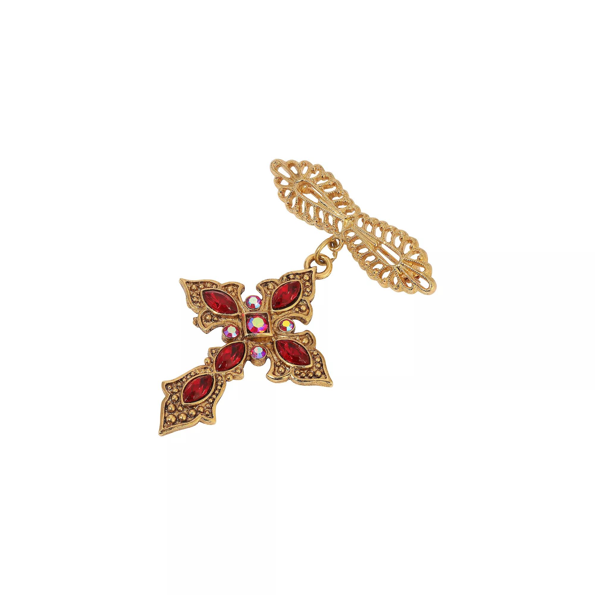 Show your spirituality with this beautifully designed Symbols of Faith gold-tone cross pin featuring vibrant red crystals. Click on this JEWELRY & WATCHES GUIDE to learn about fit, styles, materials and more! FEATURES 2.5 L x 1.75 W Nickel safe Metal: alloy Material: crystal Plating: gold tone Finish: polished Made in USA Size: One Size. Gender: female. Age Group: adult.