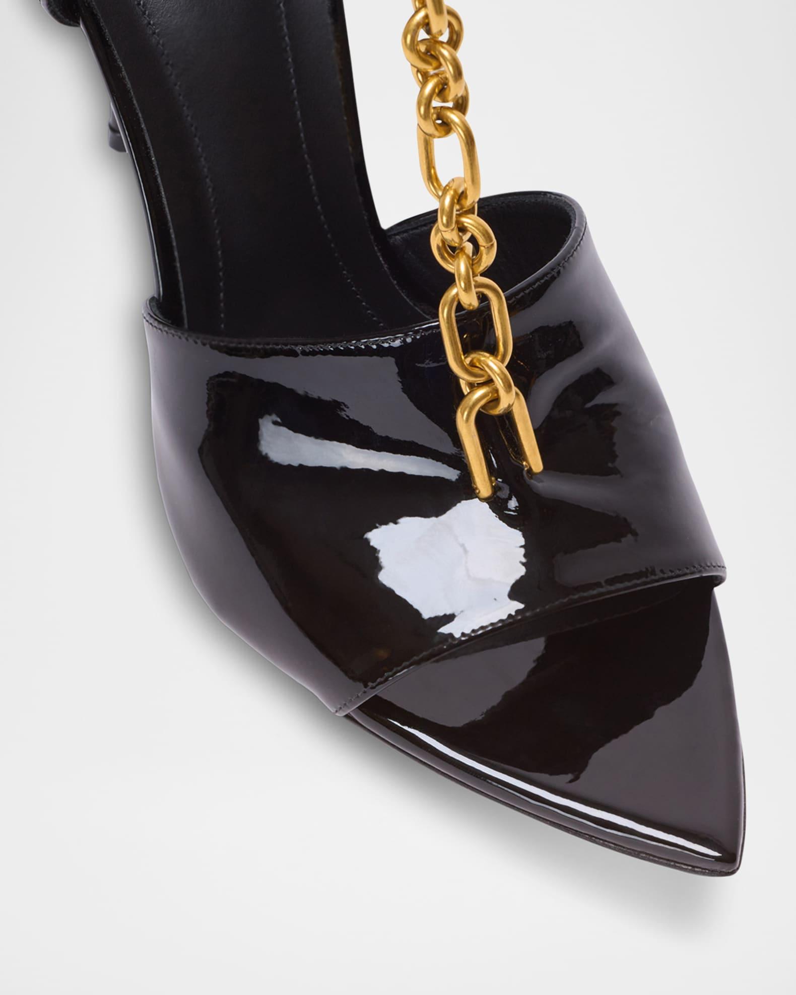 Sync Patent Leather Chain T-Strap Stiletto Sandals
