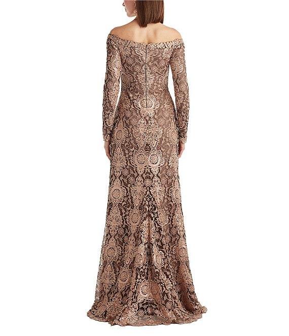 Tadashi Shoji Embellished Sequin Lace Off-The-Shoulder Sheath Gown
