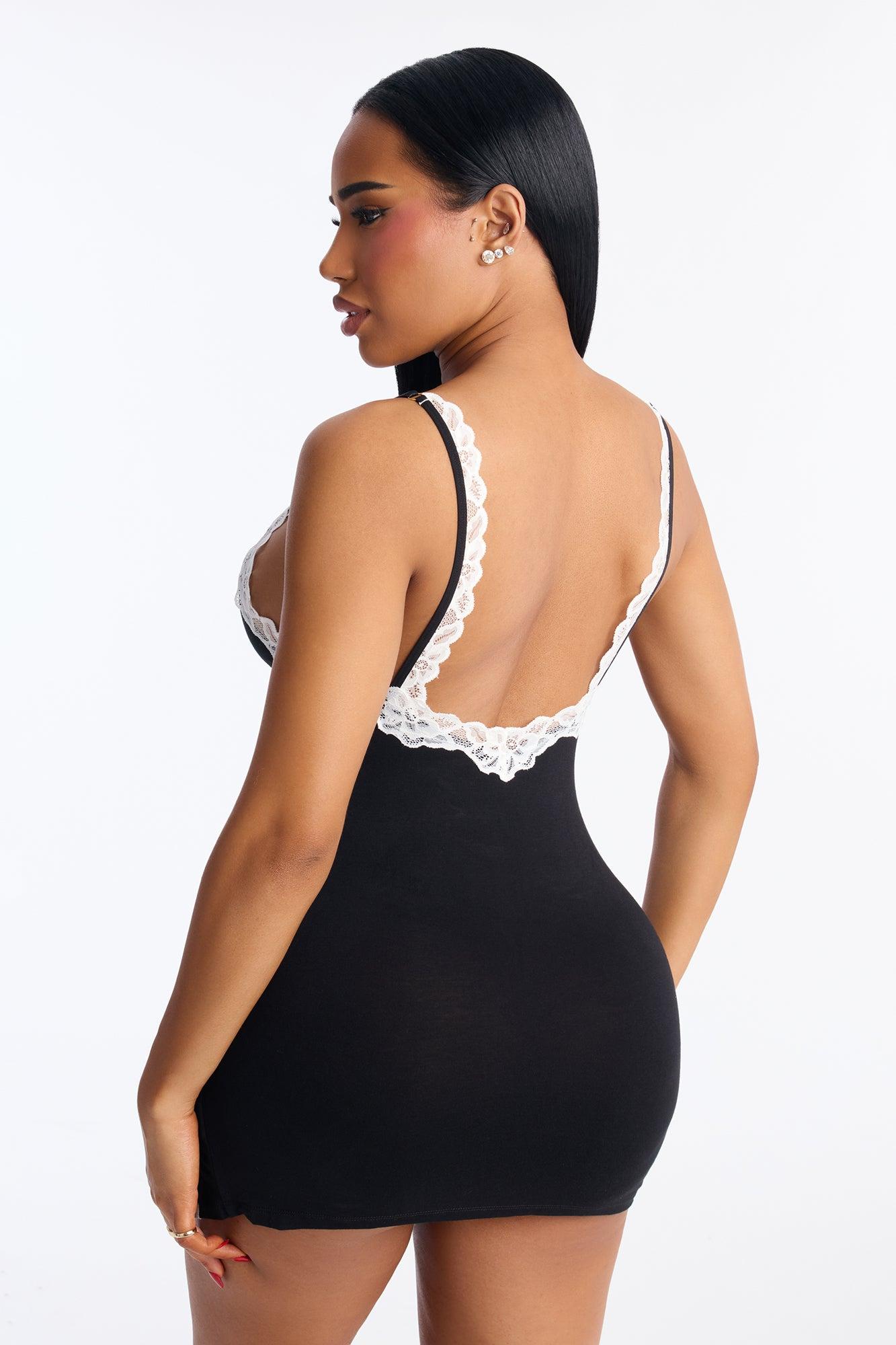 Take It All Lace Trim Stretch Chemise - Black/White Female