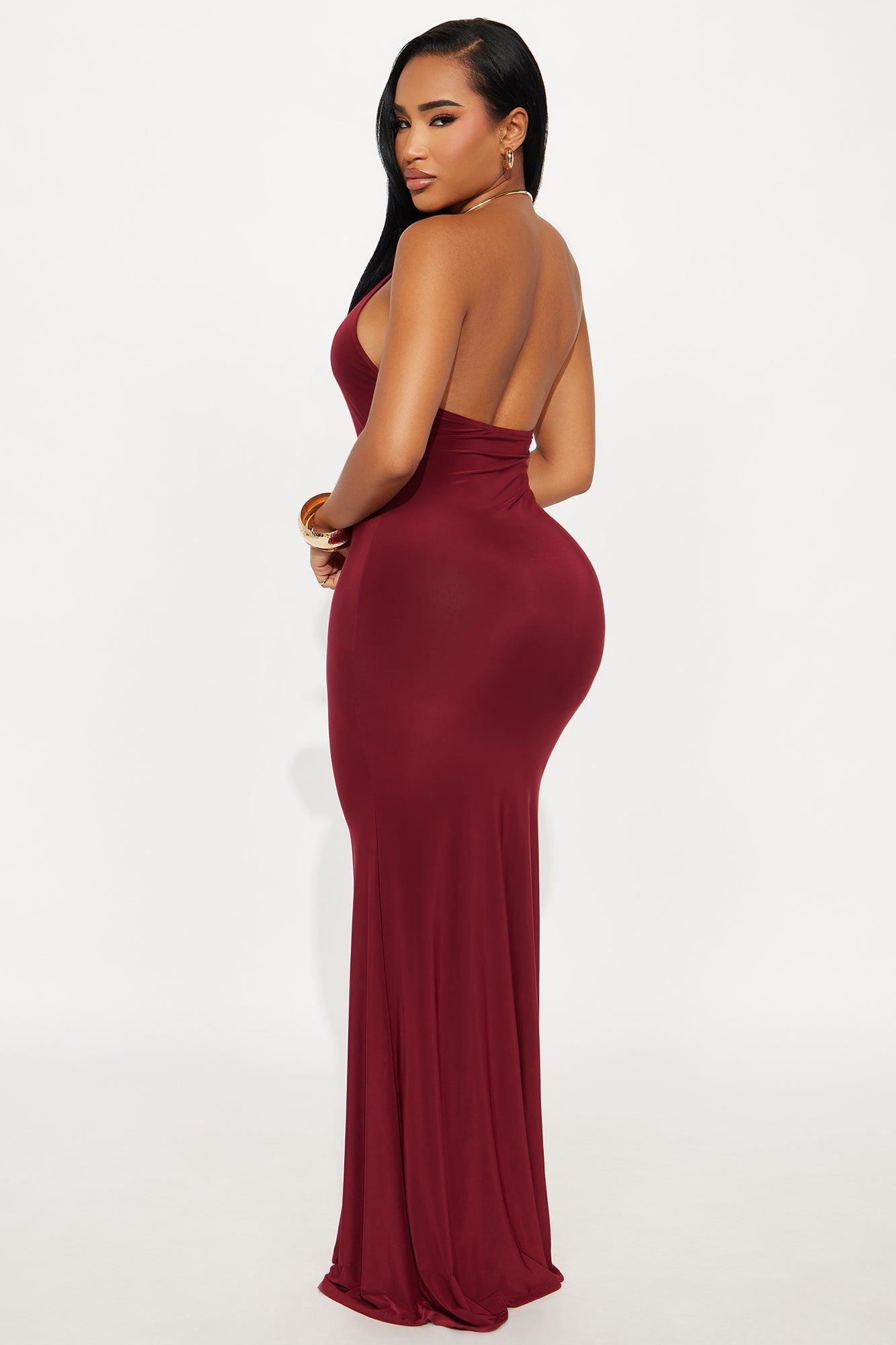 Talia Hardware Plunge Neckline Maxi Dress - Burgundy Female