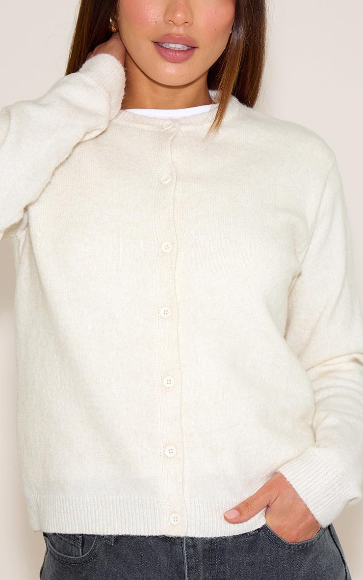 Keep it classic with the tall cream knit button through cardigan. Made from a cream knit material, it features button fastening, long sleeves, and a cosy silhouette. Style with slip on mule heels and a shoulder bag for a look like no other.Length approx 63.5cm/25inch (Based on sample size S)Model wears size SModel Height - 5ft 10inchp]:!mb-4inch>Brand: PrettyLittleThingCategory: KnitwearProduct type: CardigansColor: CreamMaterial: KnitNeckline: High NeckSleeves: LongOccasion: Day