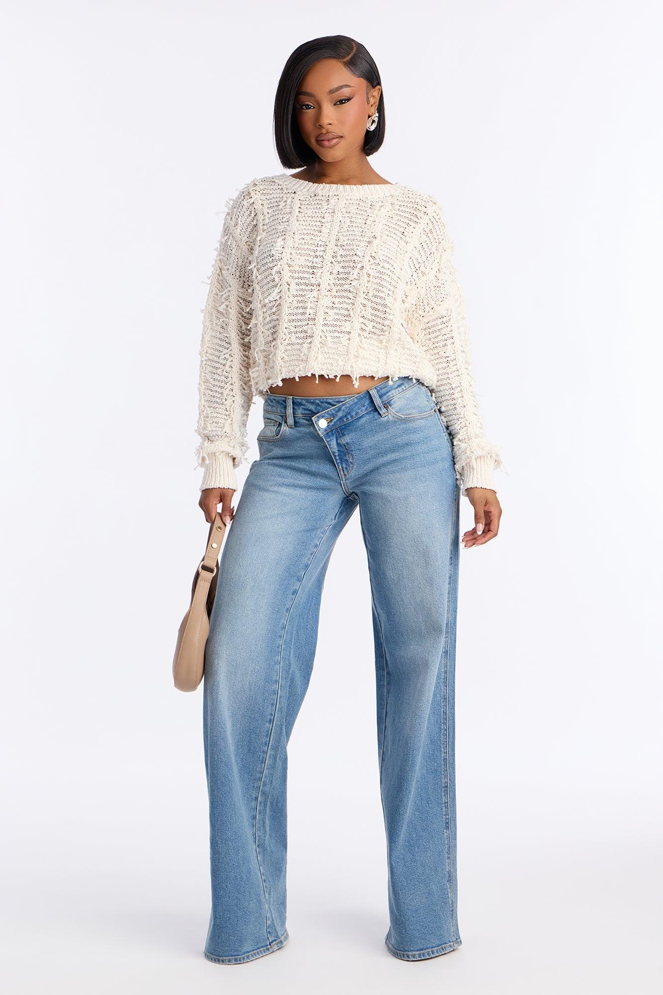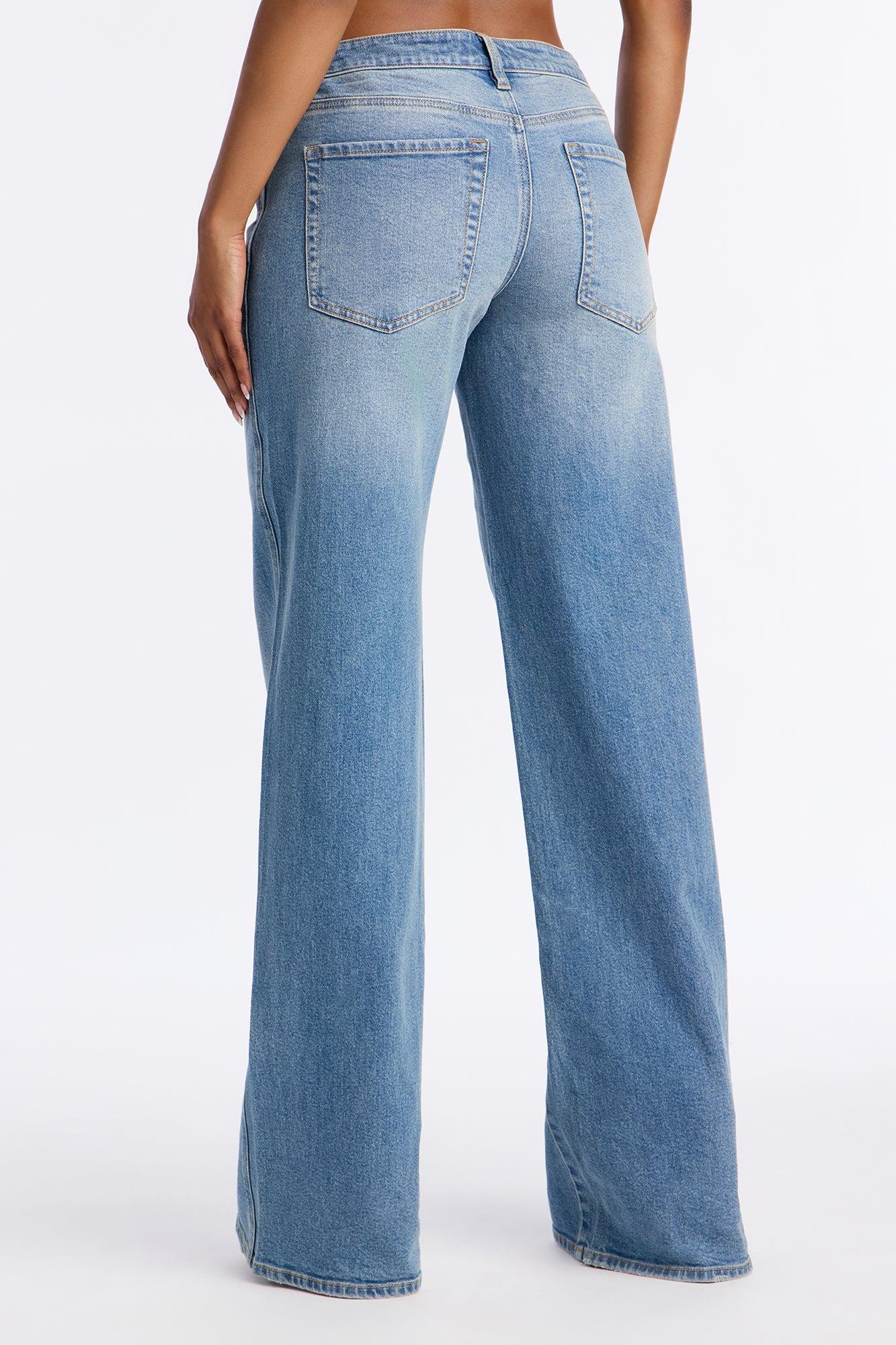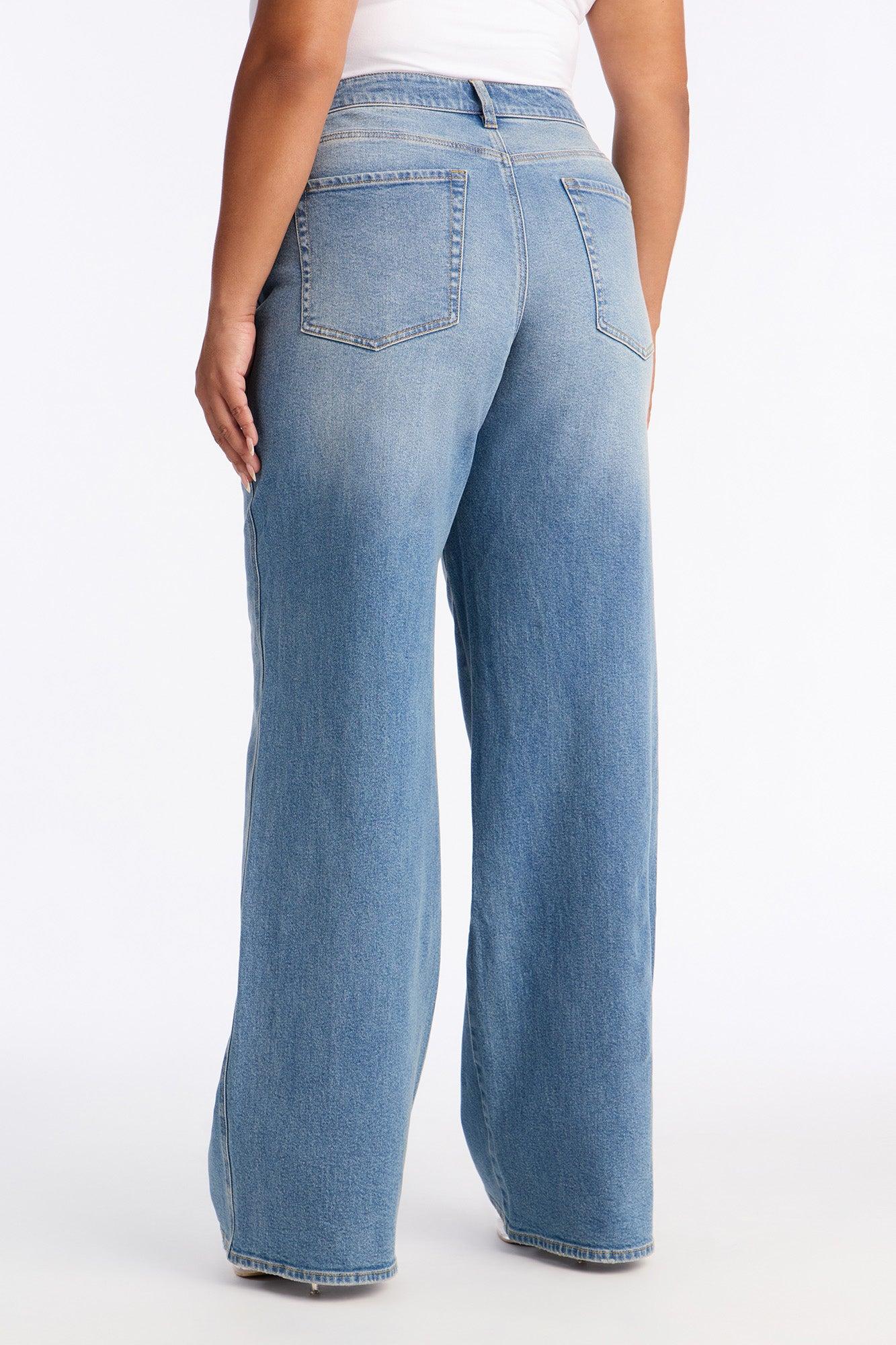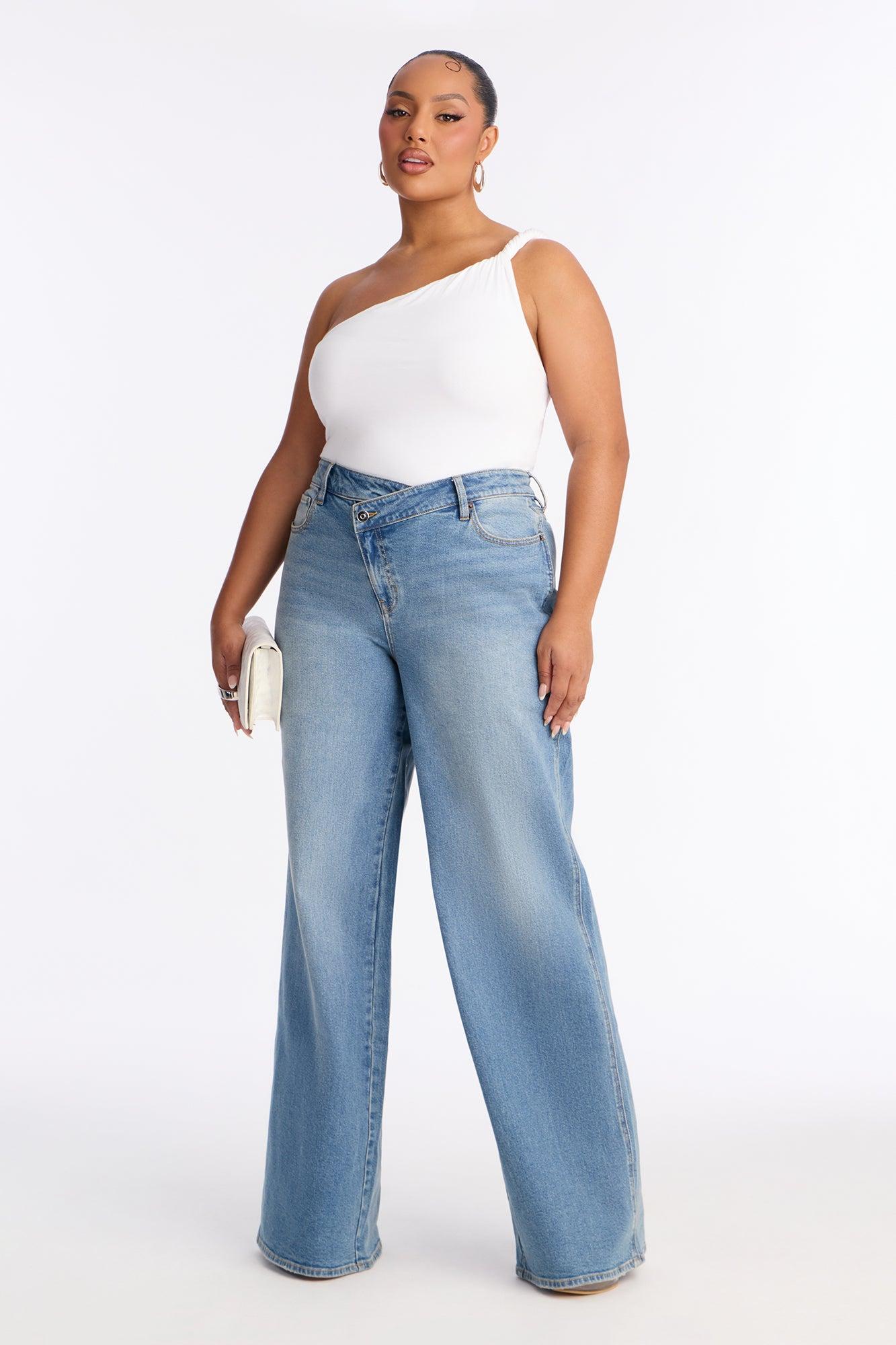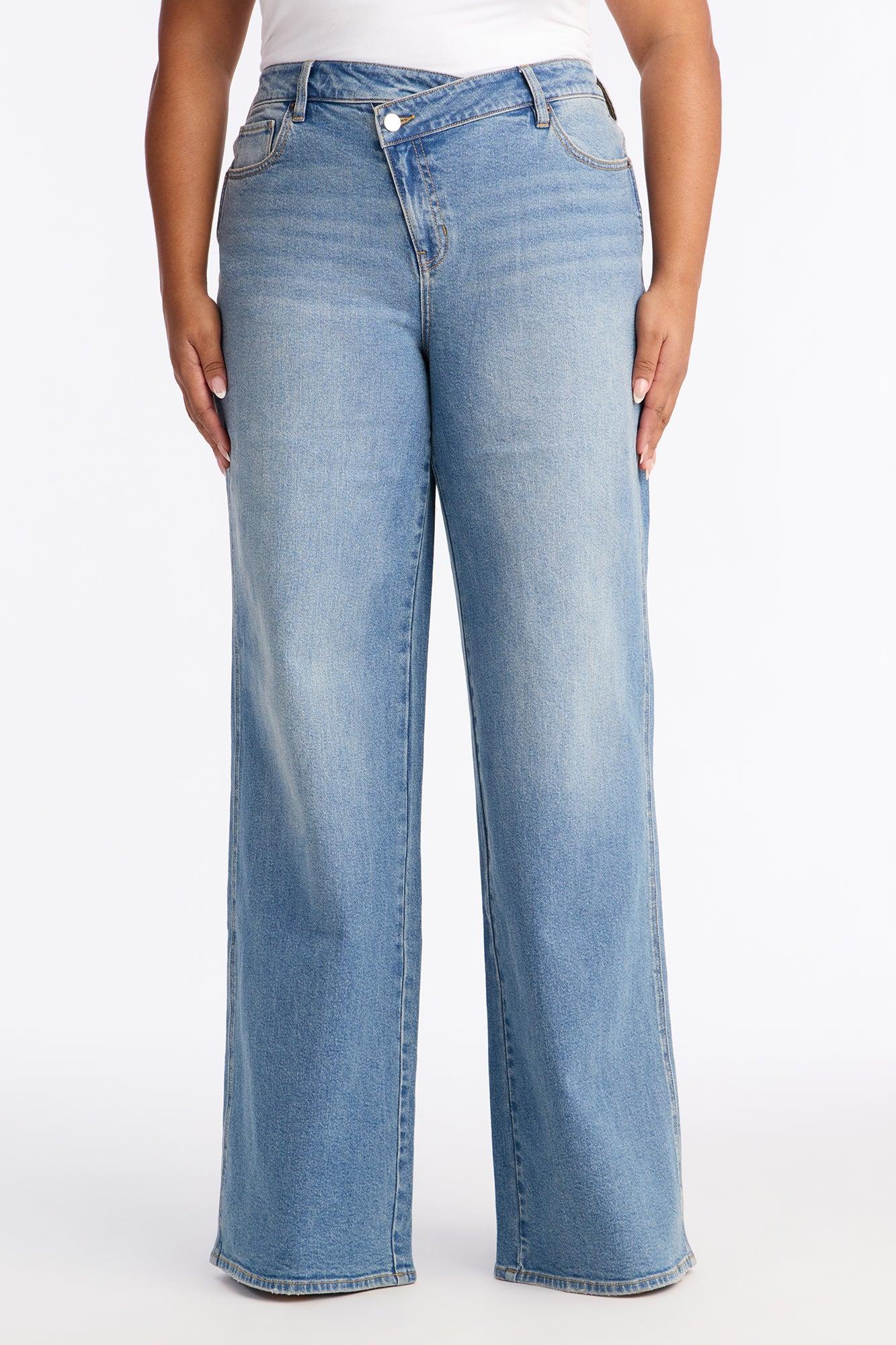 Available In Vintage Wash. Available in Regular 33" Inseam & Tall 36" Inseam. Wide Leg Jean 5 Pocket Crossover Waistband 9.25" Low Rise Medium Stretch Disclaimer: Due To The Specialized Wash, Each Garment Is Unique. 99% Cotton 1% Spandex Imported