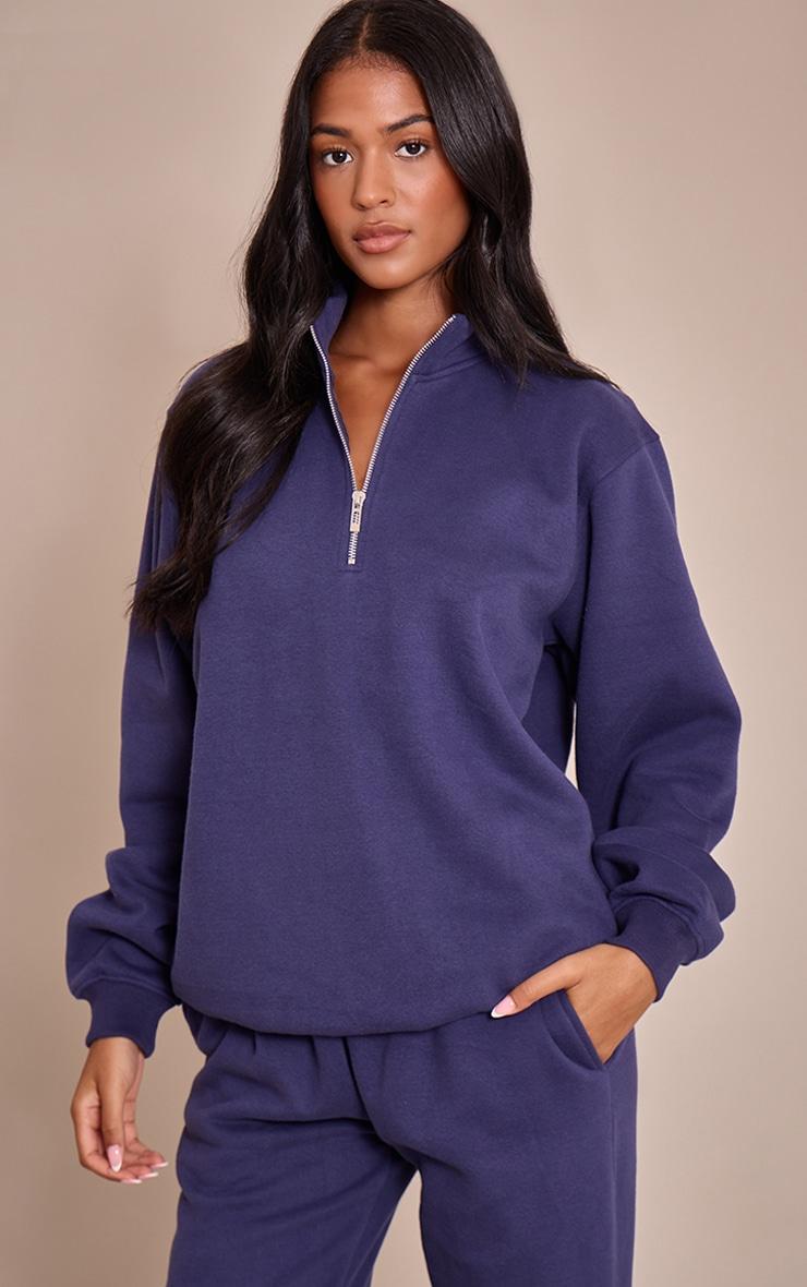Exude sporty vibes with the tall navy funnel neck zip Sweatshirt. Made from a navy Sweatshirt material, it features a funnel neckline, zip fastening, and a relaxed fit. Pair with some comfy sneakers, the matching sweatpants and gold earrings for an effortlessly chic twist.Length approx 63.5cm/25inch (Based on sample size S)Model wears size SModel Height - 5ft 10inchp]:!mb-4inch>Category: AthleisureProduct type: SweatColor: NavyMaterial: Fleeceback SweatDesign: PlainOccasion: Day