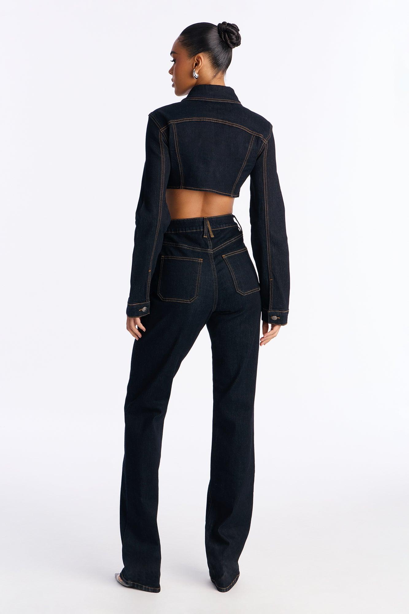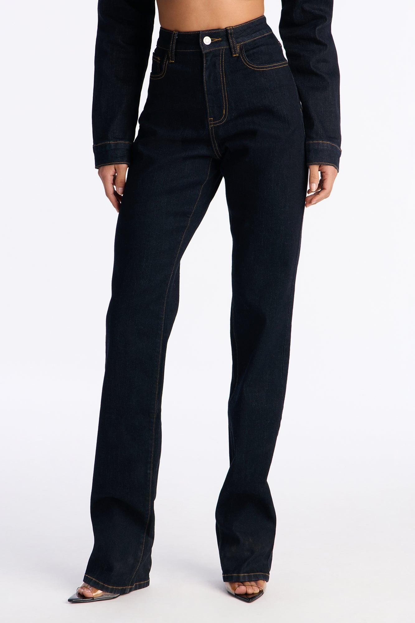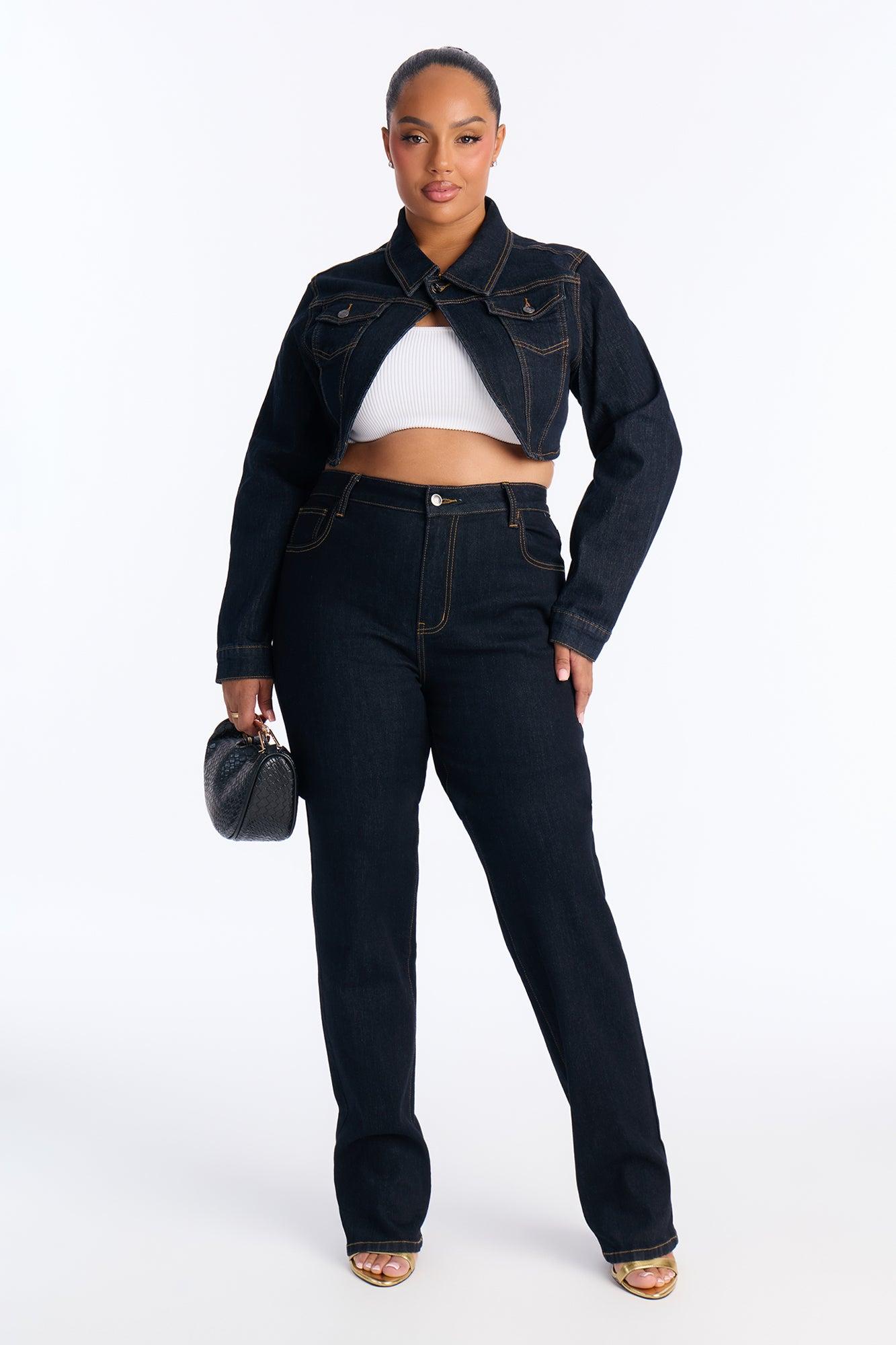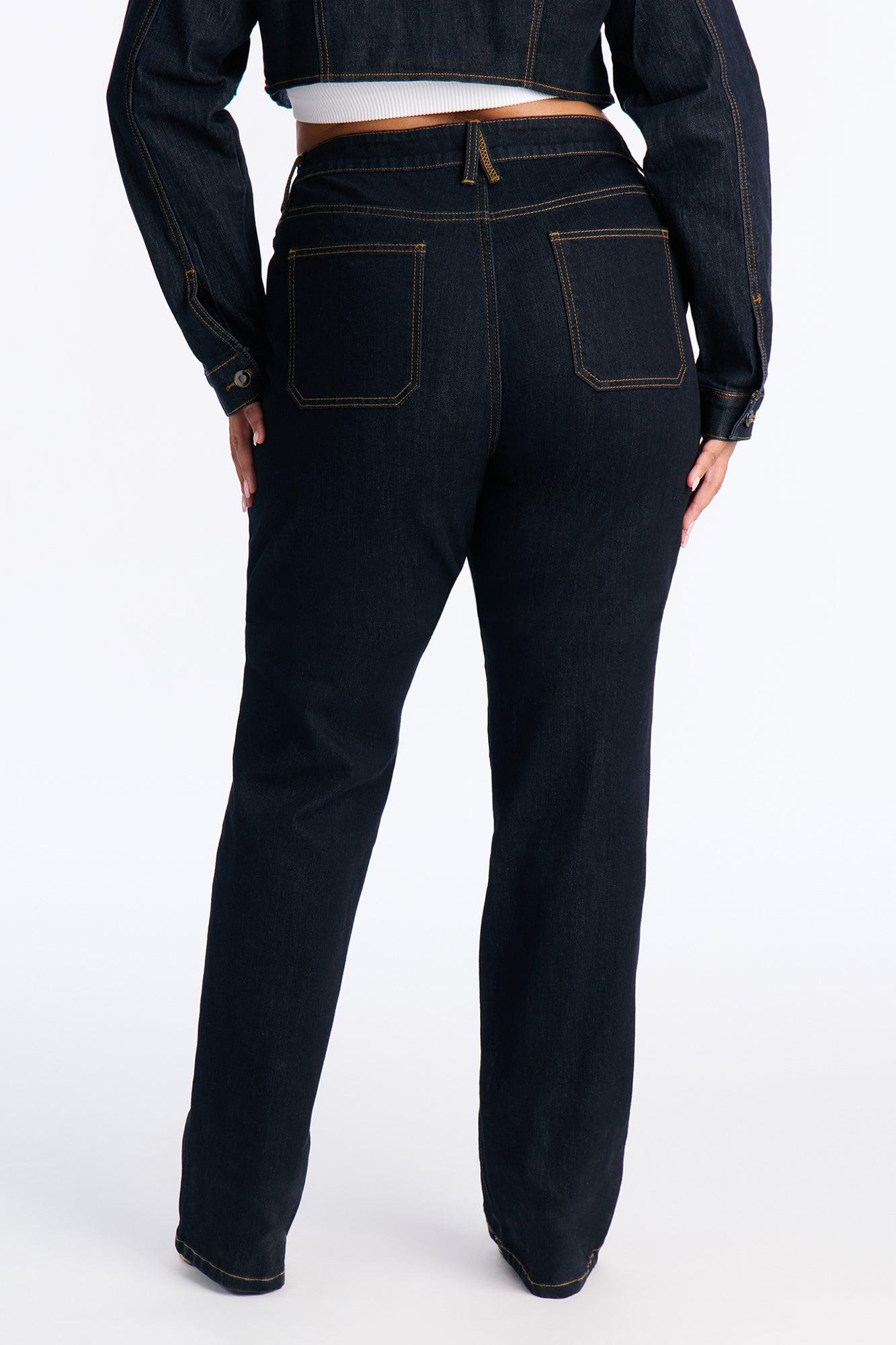 Available In Dark Wash. Available in Regular 36" Inseam & Tall 39" Inseam. Pair With Pinegrove Cropped Denim Bolero Jacket Slim Straight Leg Jean 5 Pocket Stacked Leg 11" High Rise Low Stretch Disclaimer: Due the To The Specialized Dye Process, Loose Dye Can Stain On Contact. Do Not Wash with Other Garments Self : 75% Cotton 23% Polyester 2% Spandex Imported California Proposition 65WARNING: Cancer and Reproductive Harm - www.P65Warnings.ca.gov.