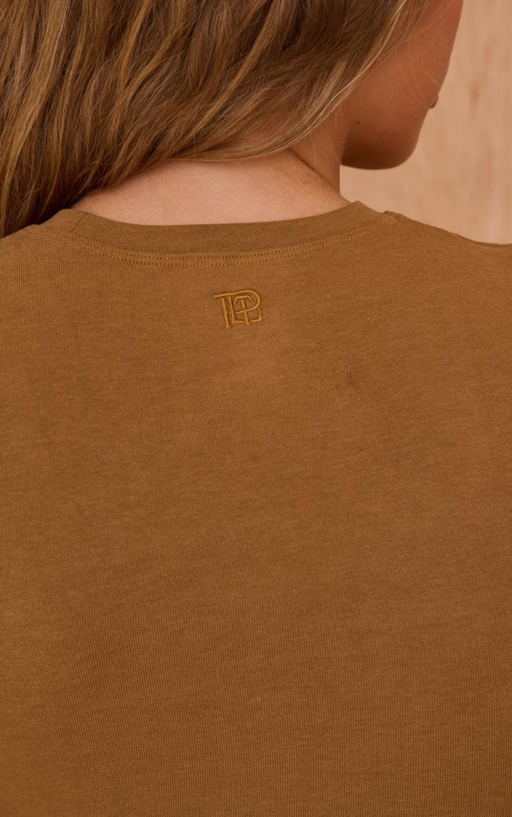 The tan melange soft cotton short sleeve top is a versatile staple for your wardrobe. Lightweight and comfy, it pairs effortlessly with multiple bottoms. Style with high-waisted jeans and sneakers for casual days or layer under a blazer for relaxed sophistication.Length approx 48.5cm/19inch (Based on sample size S)Model wears size SModel Height - 5ft 10inchp]:!mb-4inch>Brand: PrettyLittleThingCategory: AthleisureProduct type: Short Sleeve TopColor: TanMaterial: Cotton JerseyOccasion: Day