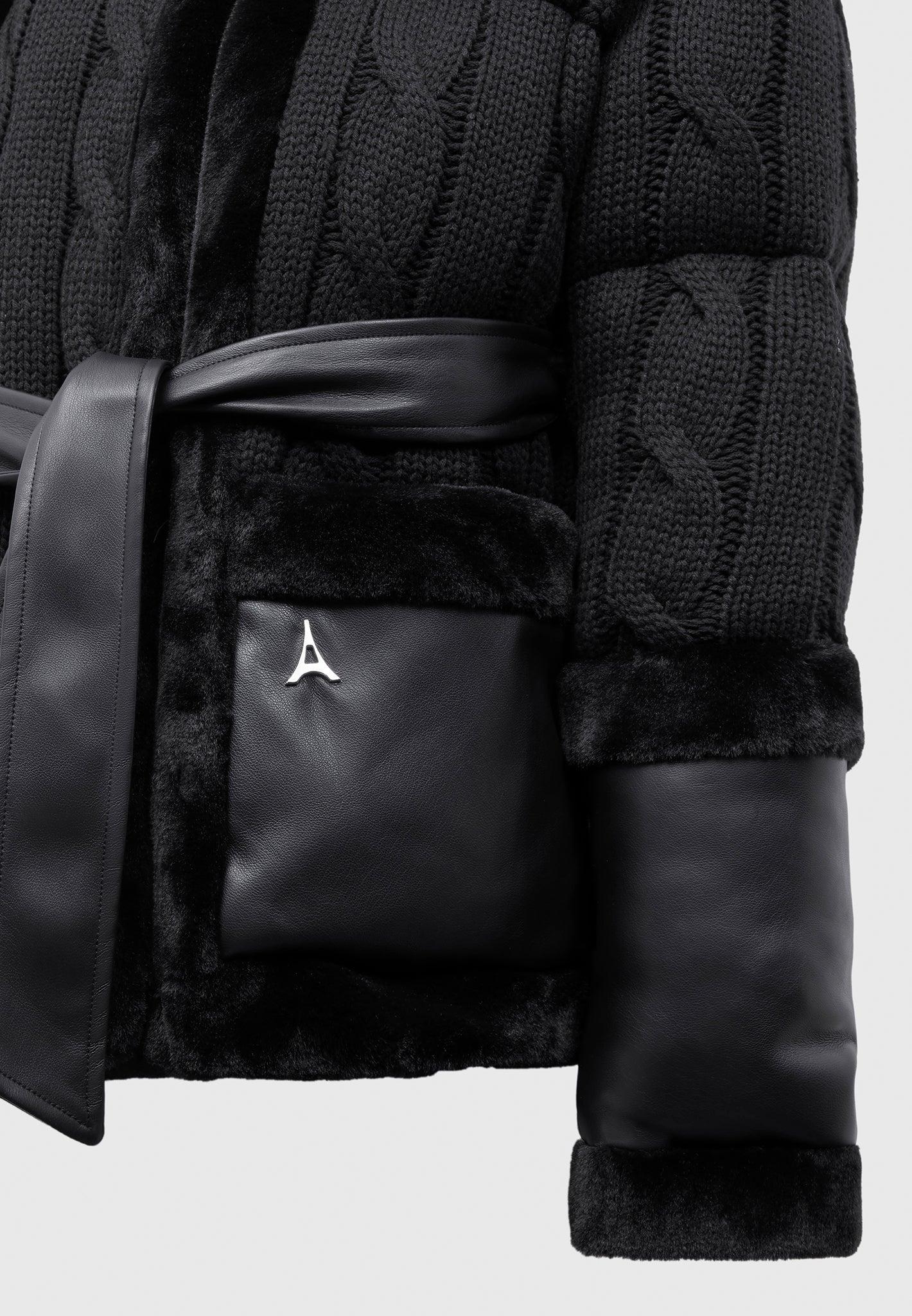 Combining classic biker styling with refined knit craftsmanship, this jacket offers a modern take on an iconic silhouette. Crafted from high-quality knit fabric, it delivers both comfort and durability while maintaining a structured shape. The belted waist detail defines the form with a subtle edge, complemented by a classic lapel collar that adds timeless sophistication. Finished with a soft knit texture for an elevated feel, this piece is a versatile staple for effortless, contemporary dressing. Biker jacket silhouette for a modern, structured look Crafted from high-quality knit fabric for comfort and durability Belted waist detail adds definition and edge Soft knit construction provides a refined, elevated finish Classic lapel collar enhances the timeless appeal Silver Manière De Voir to centre back Silver Manière De Voir Eiffel plaque