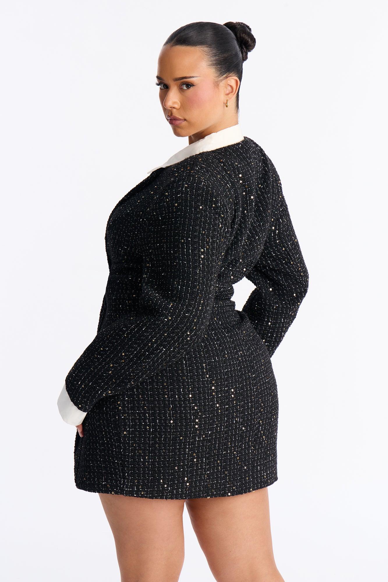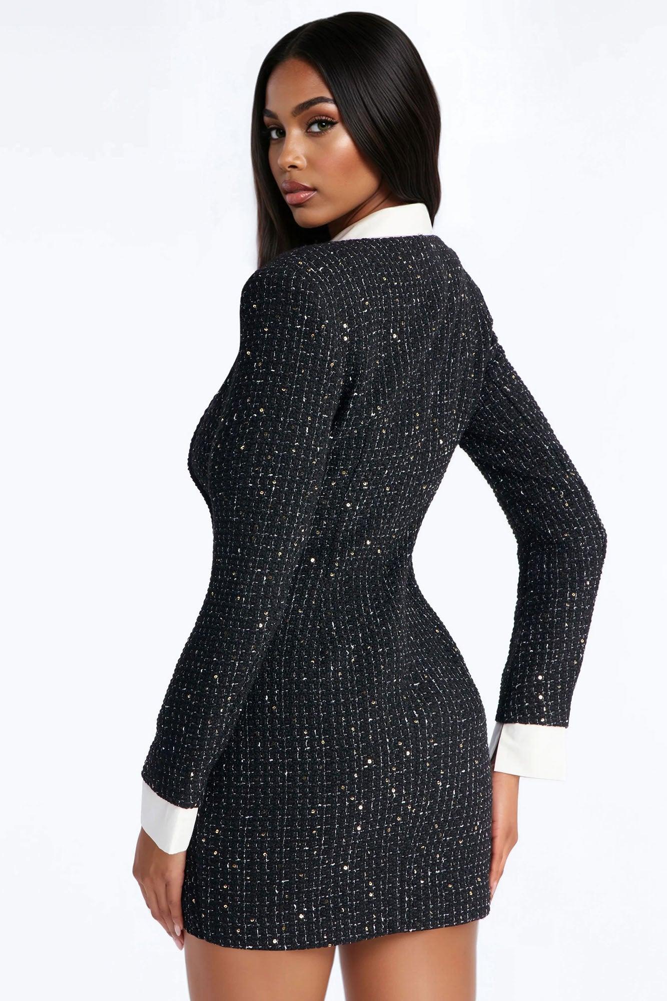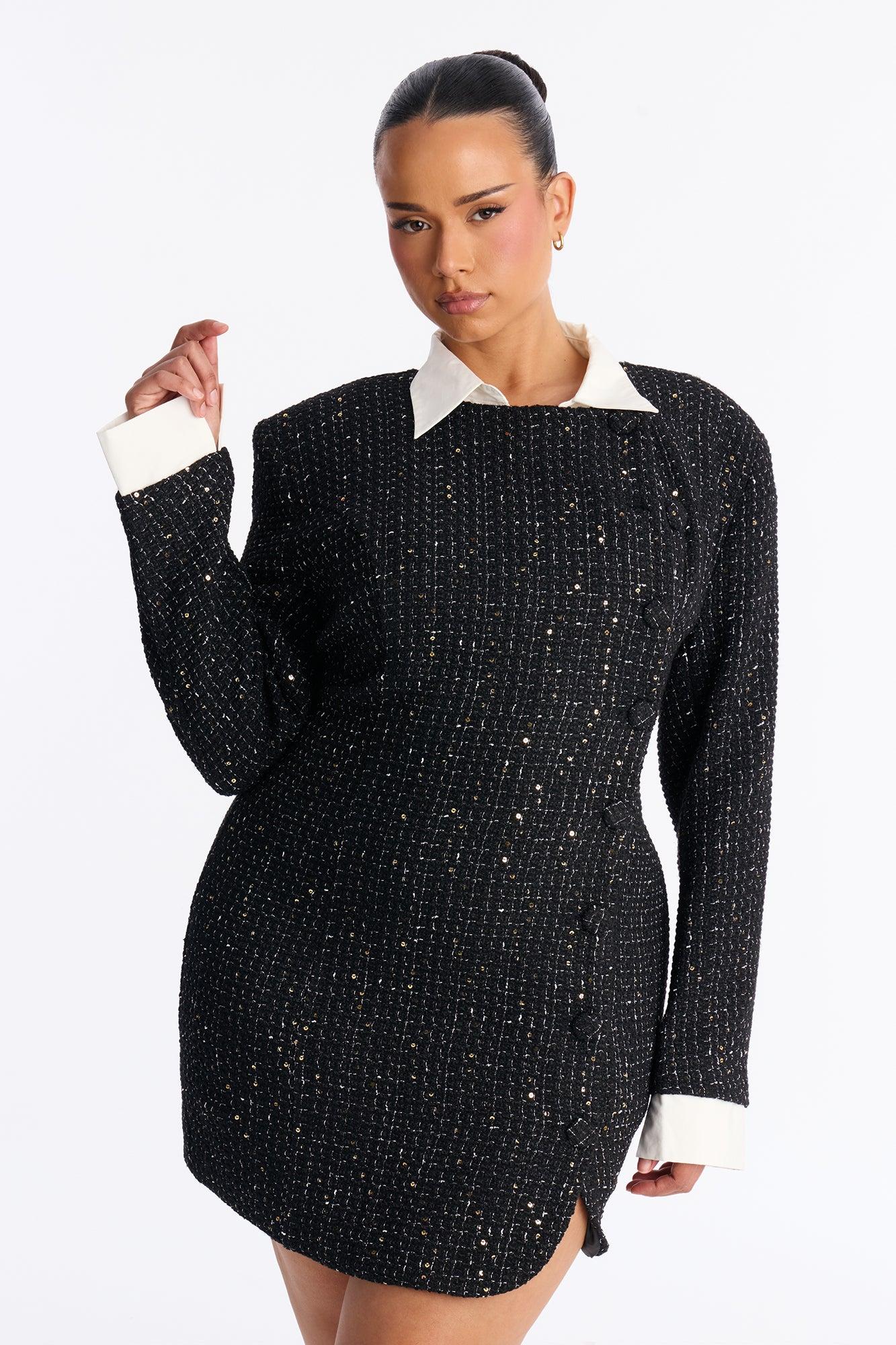 Taryn Long Sleeve Tweed Mini Dress - Black Female