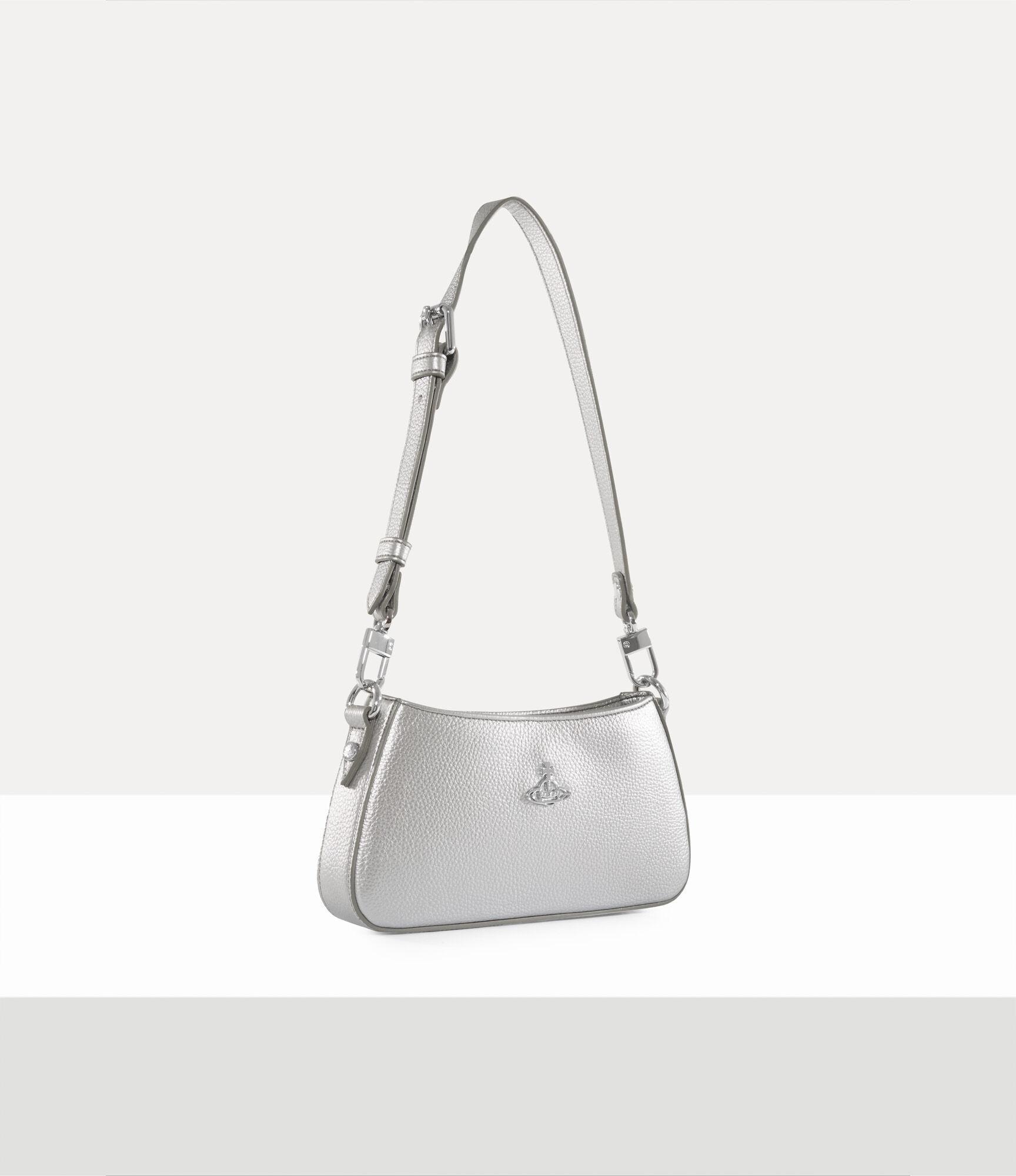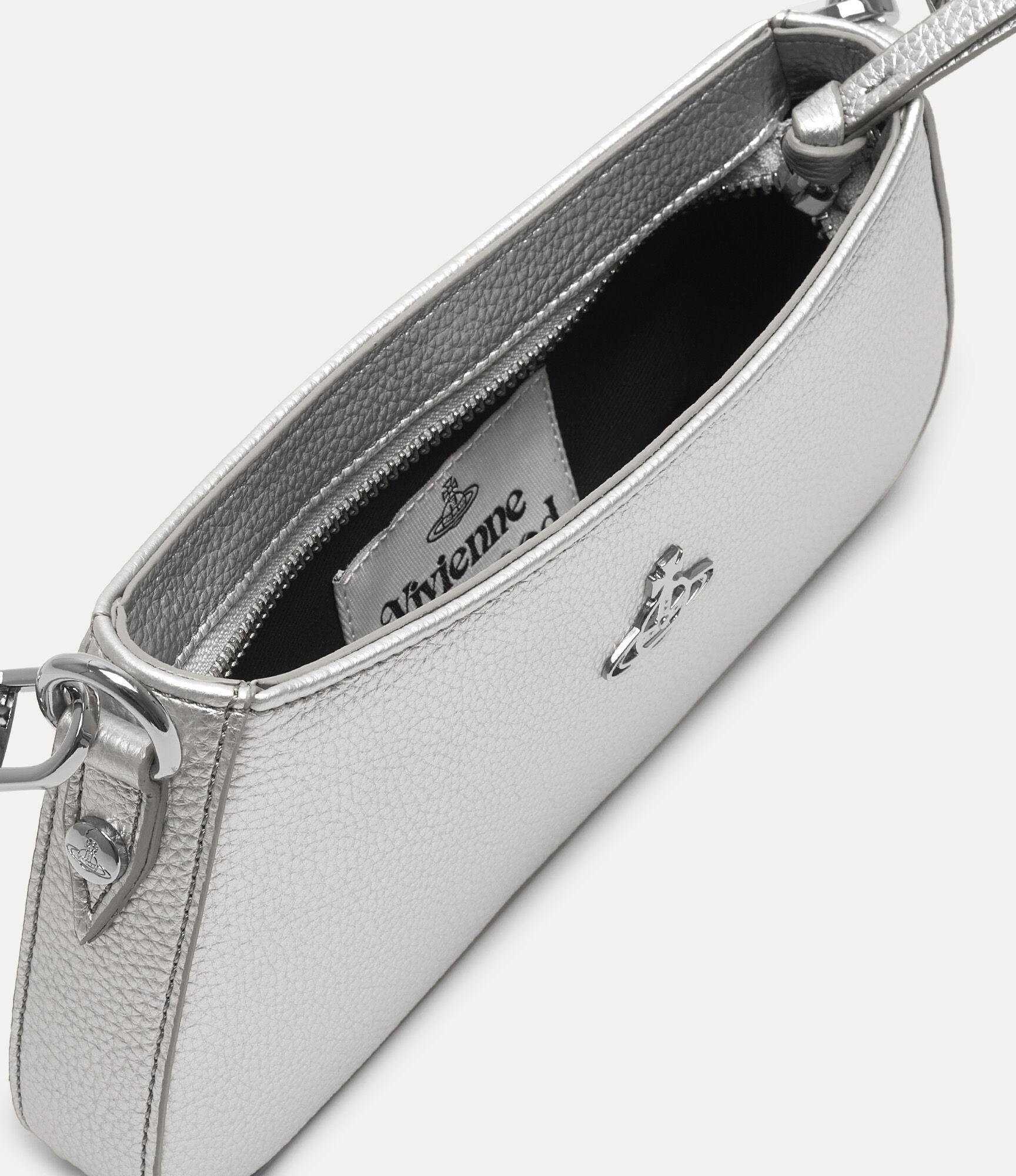 Our Tasha Shoulder Phone Bag is crafted from PU leather with a grain-embossed texture and a metallic finish, adorned with the house’s signature brass hardware. At the front sits our ‘Line Orb’ motif, which symbolises tradition, encircled by the celestial rings of Saturn, symbolising the future.