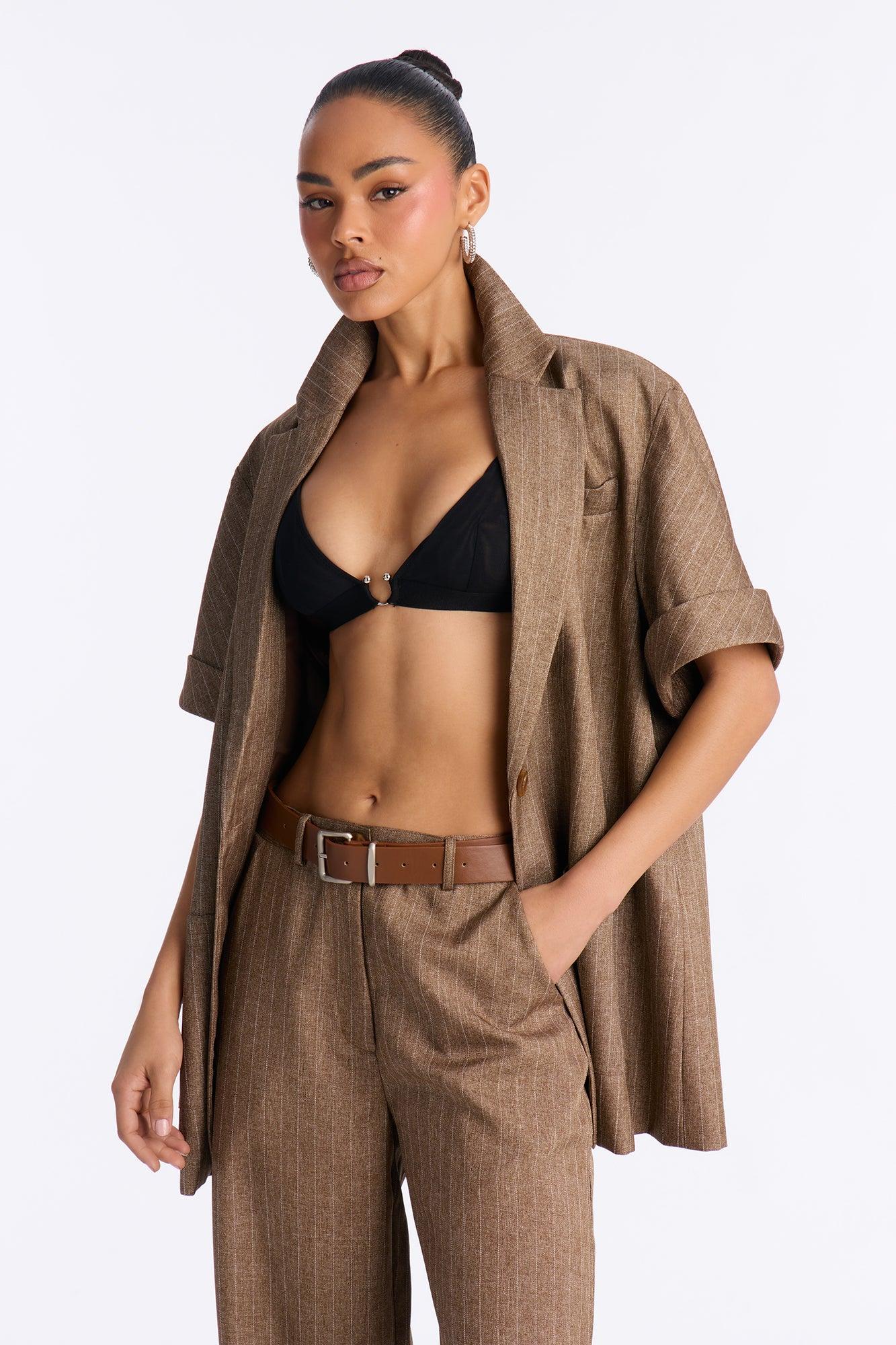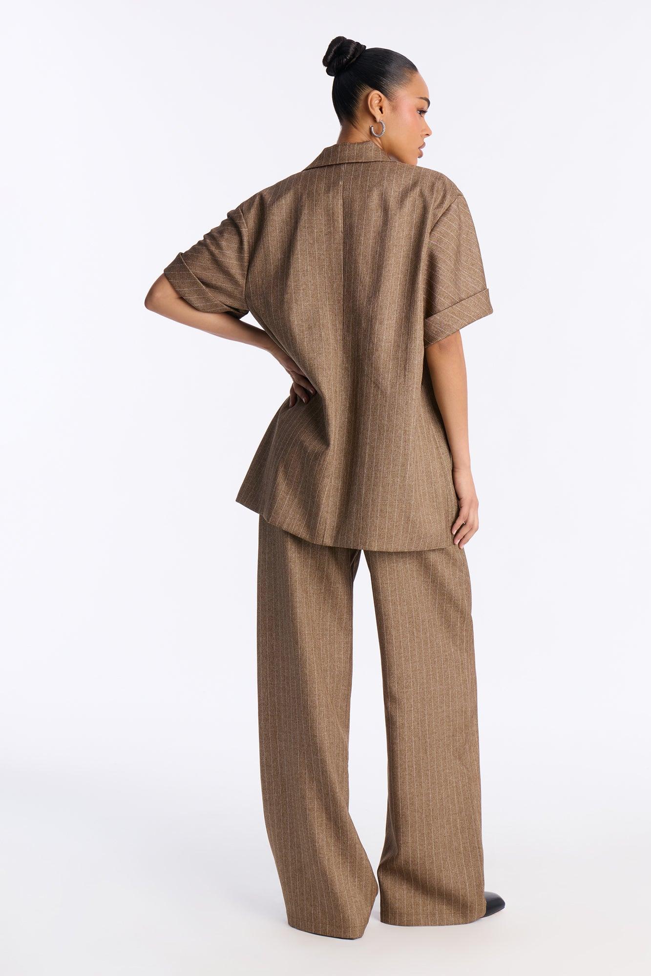 Taylor Pinstripe Short Sleeve Blazer Pant Set - Brown Female