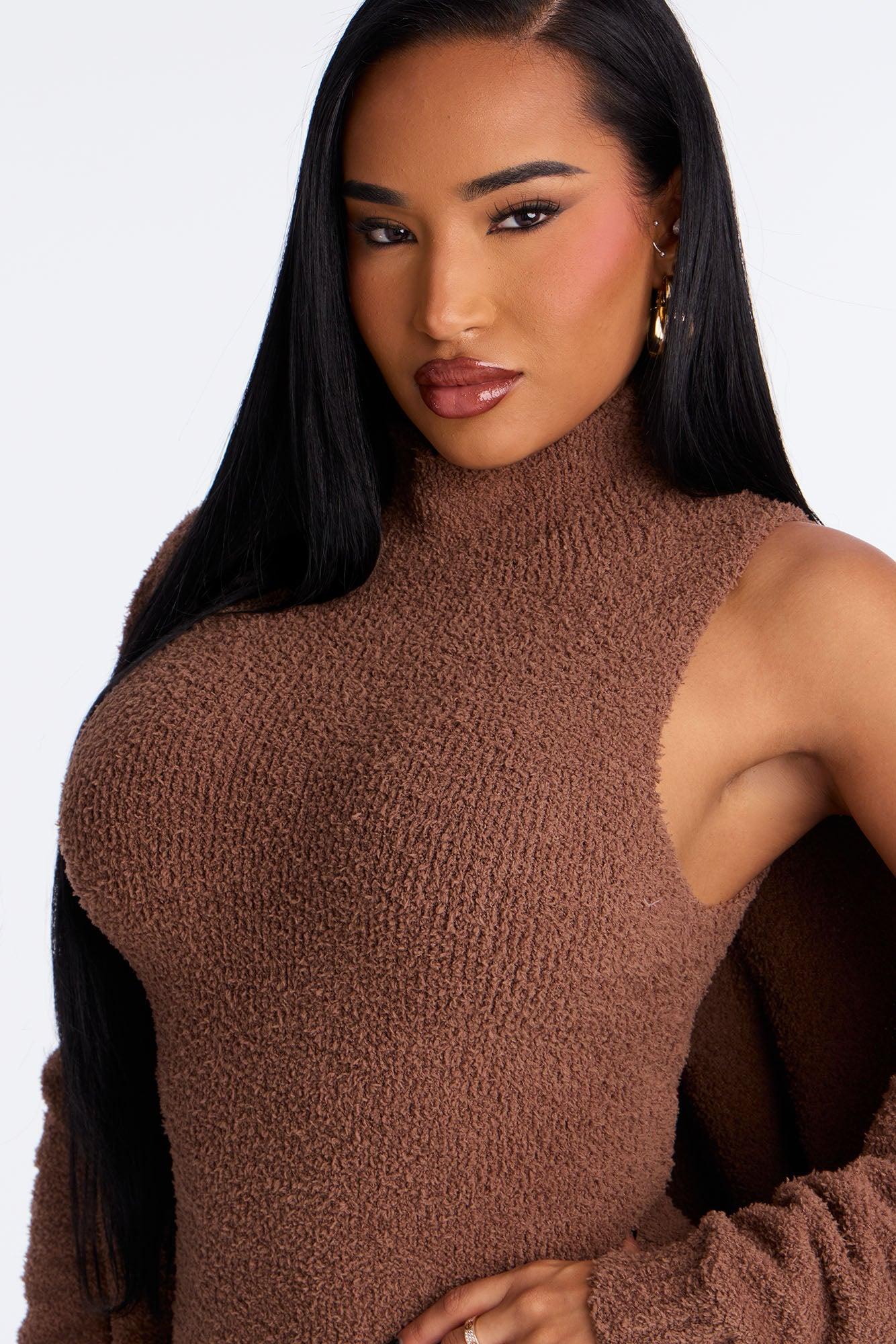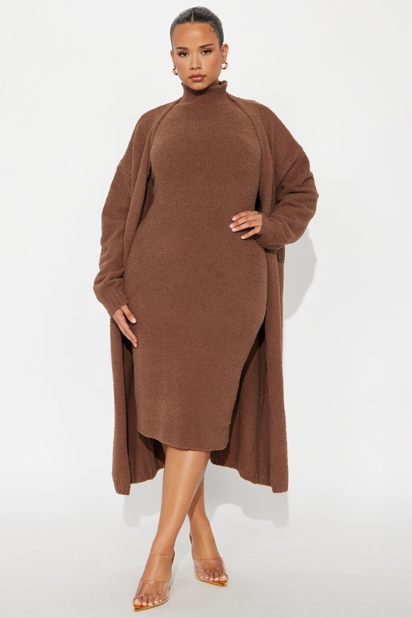Teddy Soft Sweater Midi Dress Set - Brown Female
