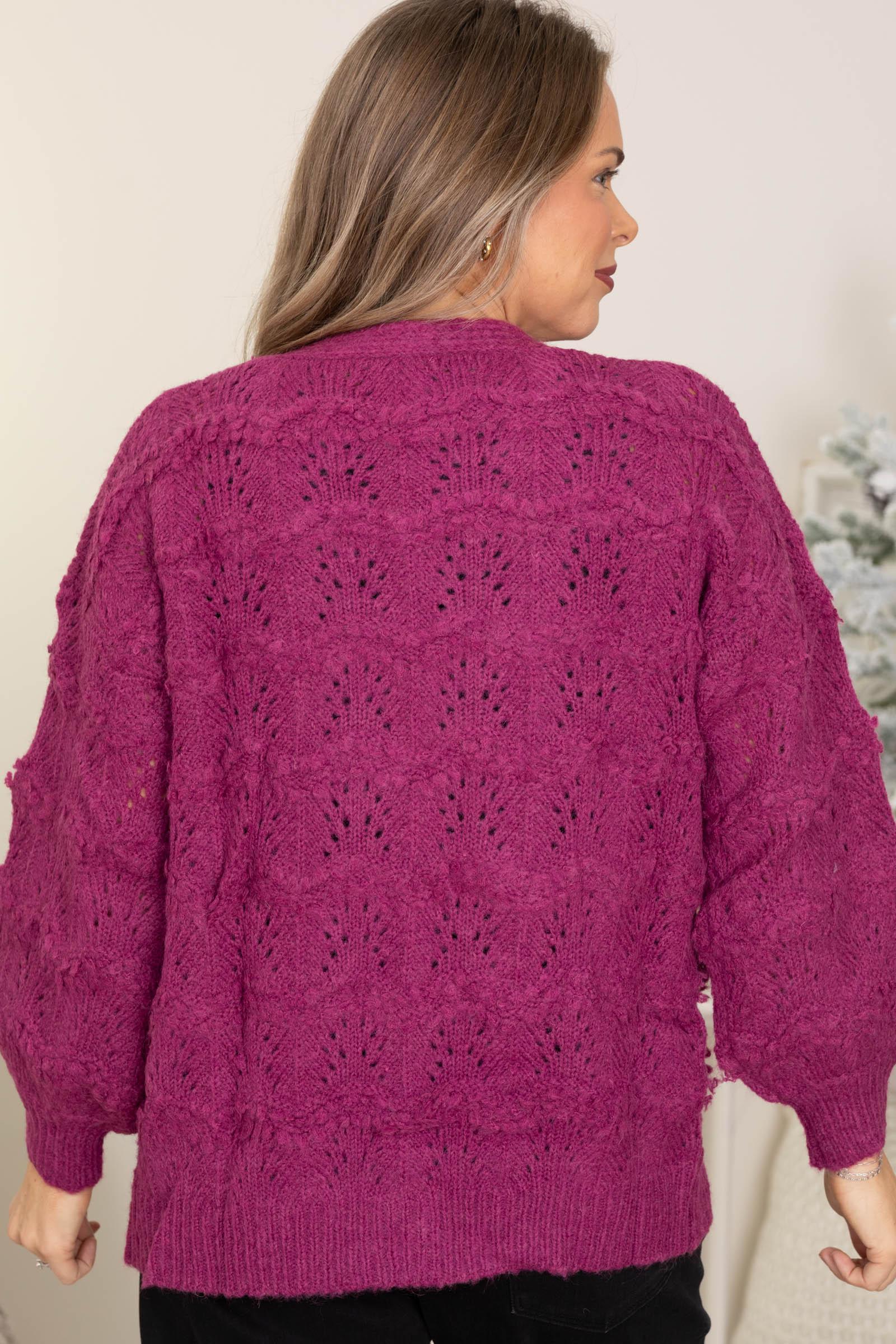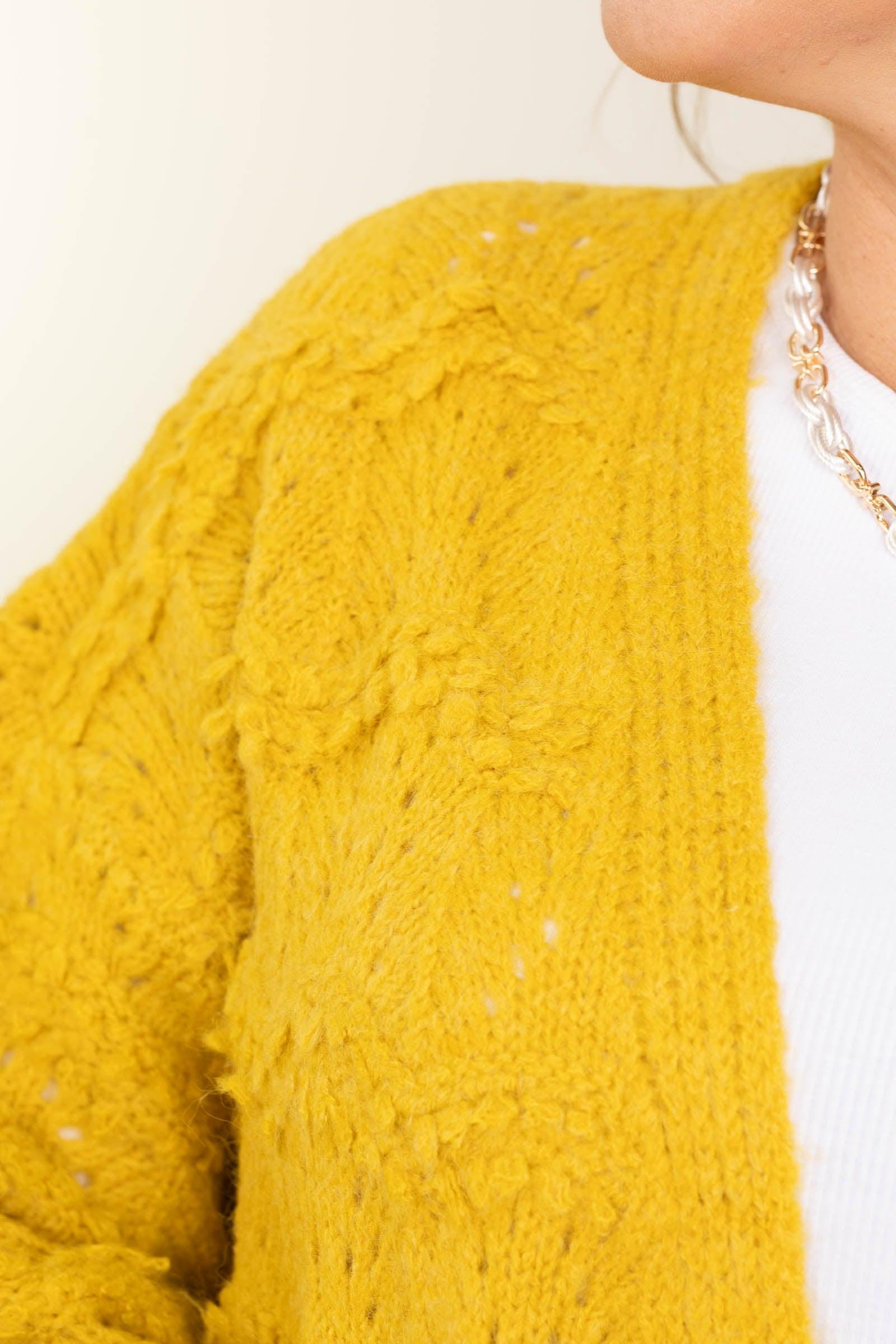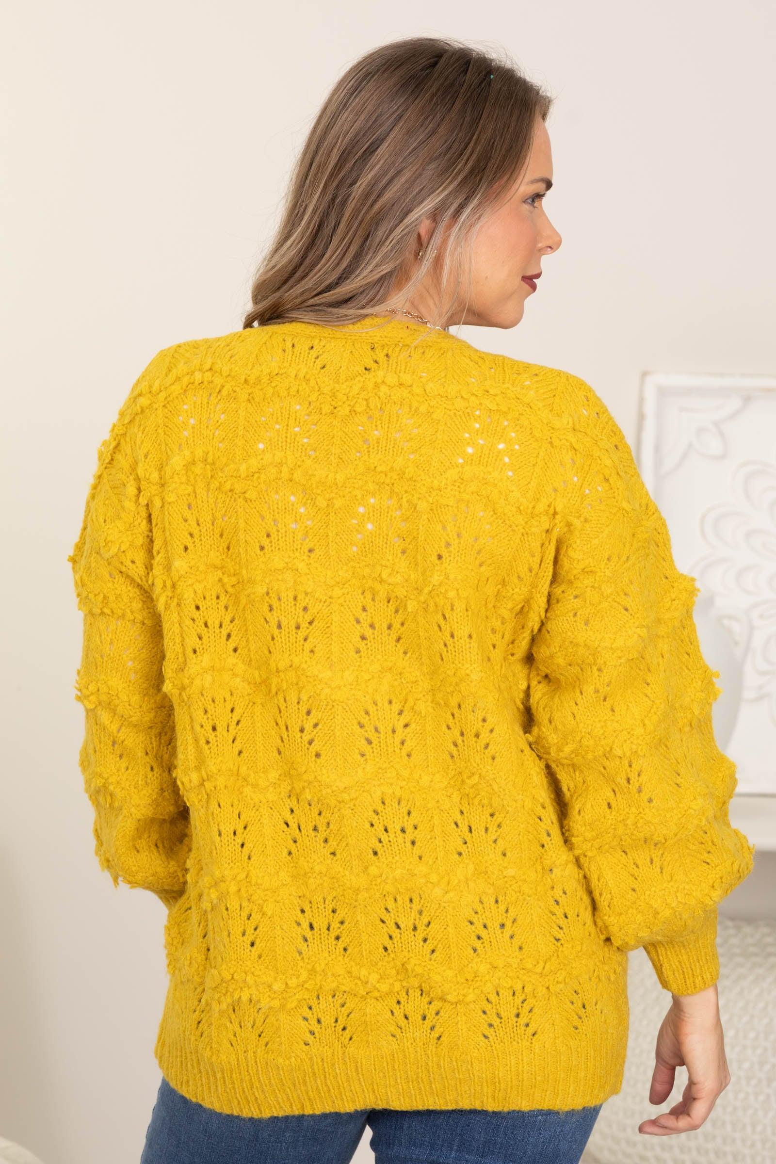 Product Details Colors: Mustard/ Magenta Print: Solid Neckline: Open Front Sleeve: Long Sleeve Hemline: Straight Brand: Lumiere Material and Care Self: 68% Acrylic 15% Wool 15% Polyamide 2% Nylon Dry Clean Only Size and Fit Small: Bust 44" Waist 42" Length 26" Medium: Bust 46" Waist 44" Length 26.5" Large: Bust 48" Waist 46" Length 27" Erica is 5’7” and wearing her true size small