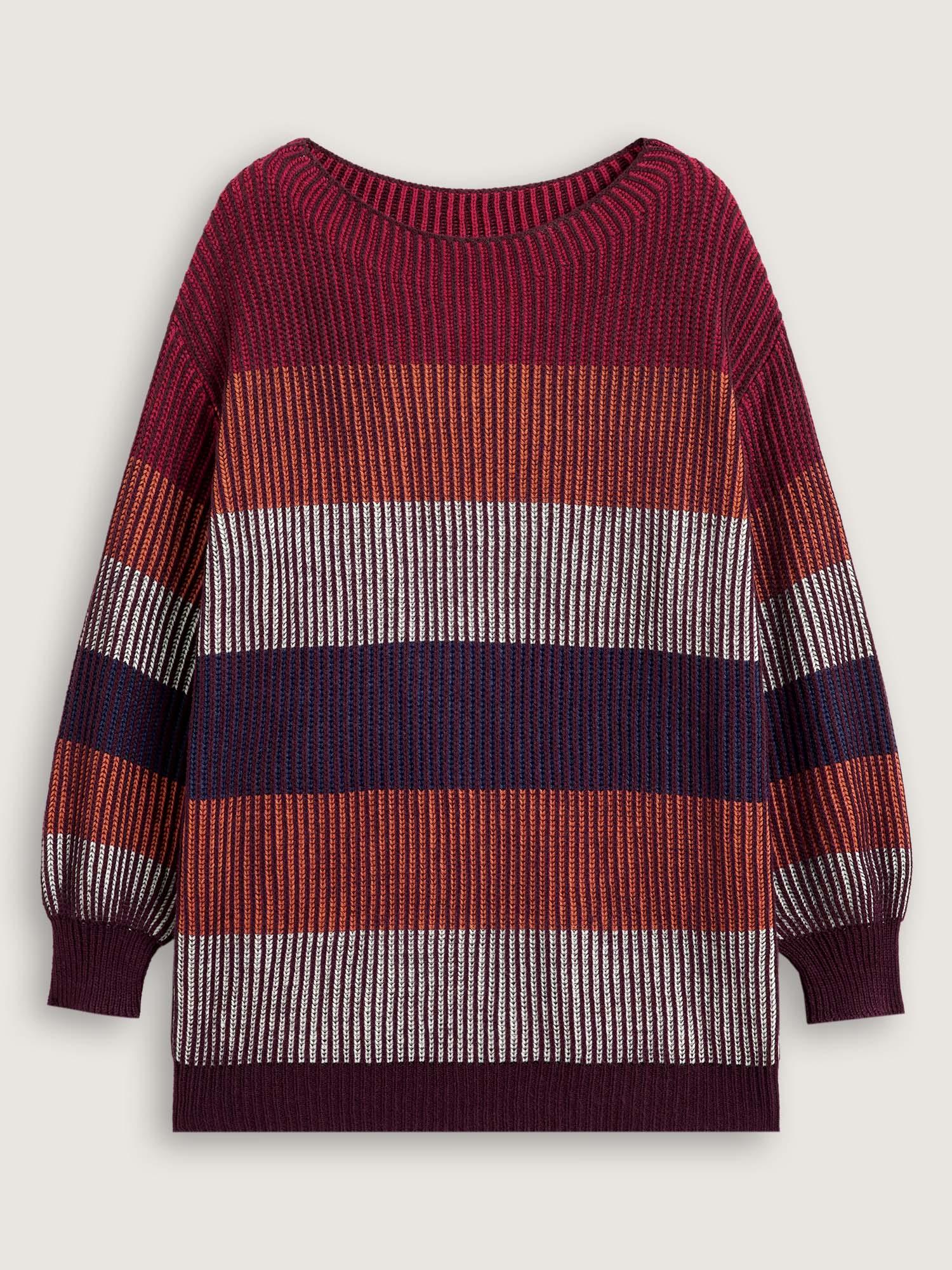 Textured Striped Contrast Patchwork Pullover Female