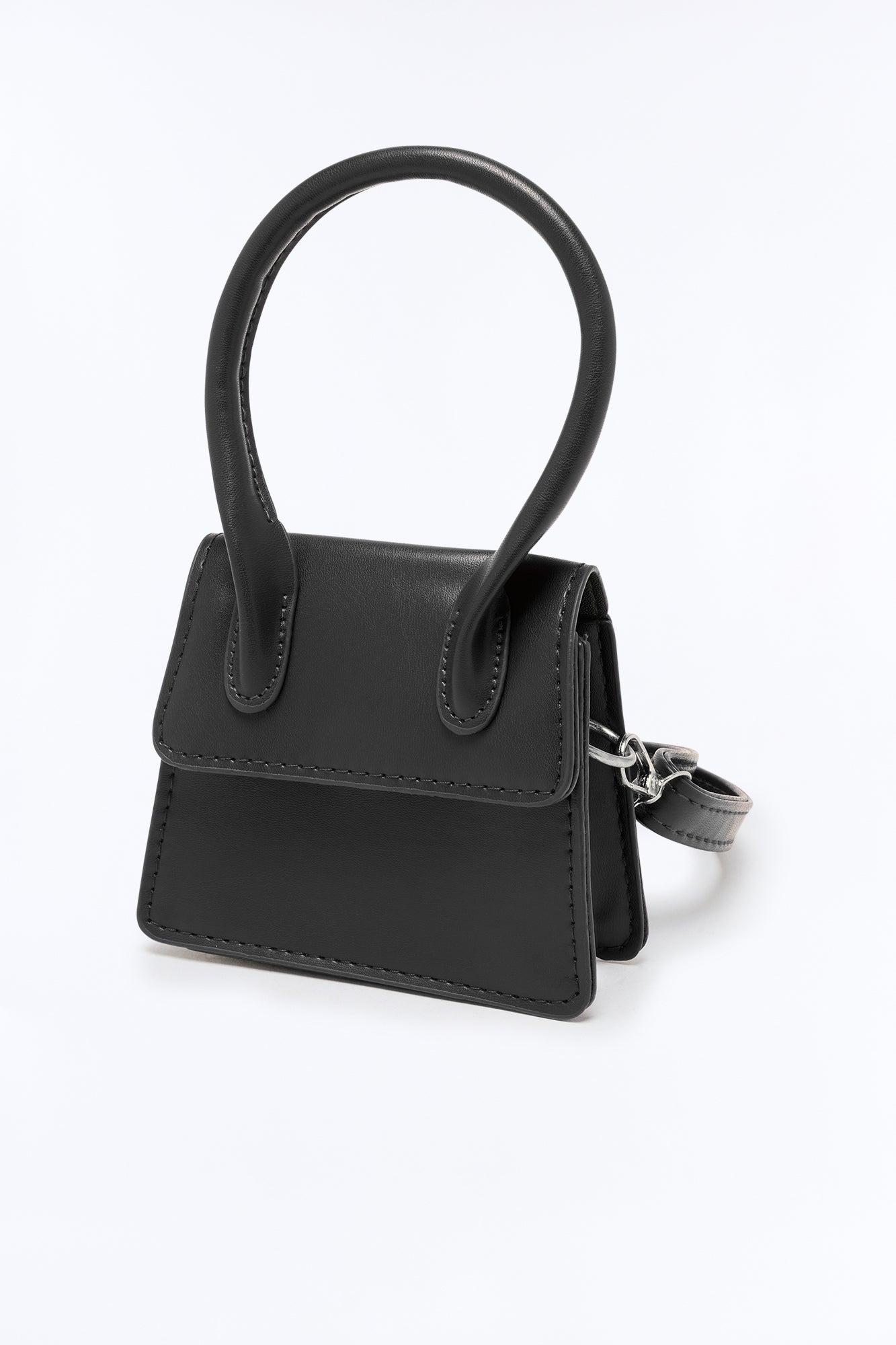 Available In Black And Cognac. Mini Belt Bag Foldover Closure Faux Leather Material Top Handle Detail Dimensions:4.7''L X 2''D X 3.7''H Imported California Proposition 65WARNING: Cancer and Reproductive Harm - www.P65Warnings.ca.gov.