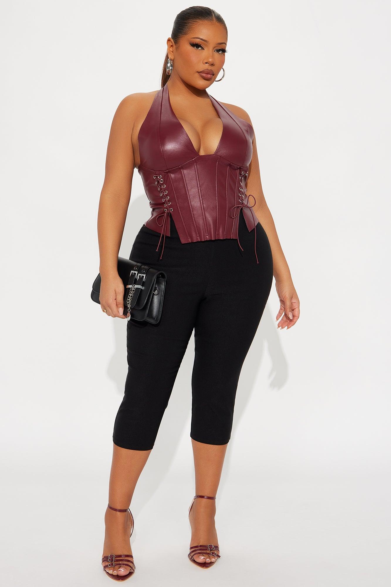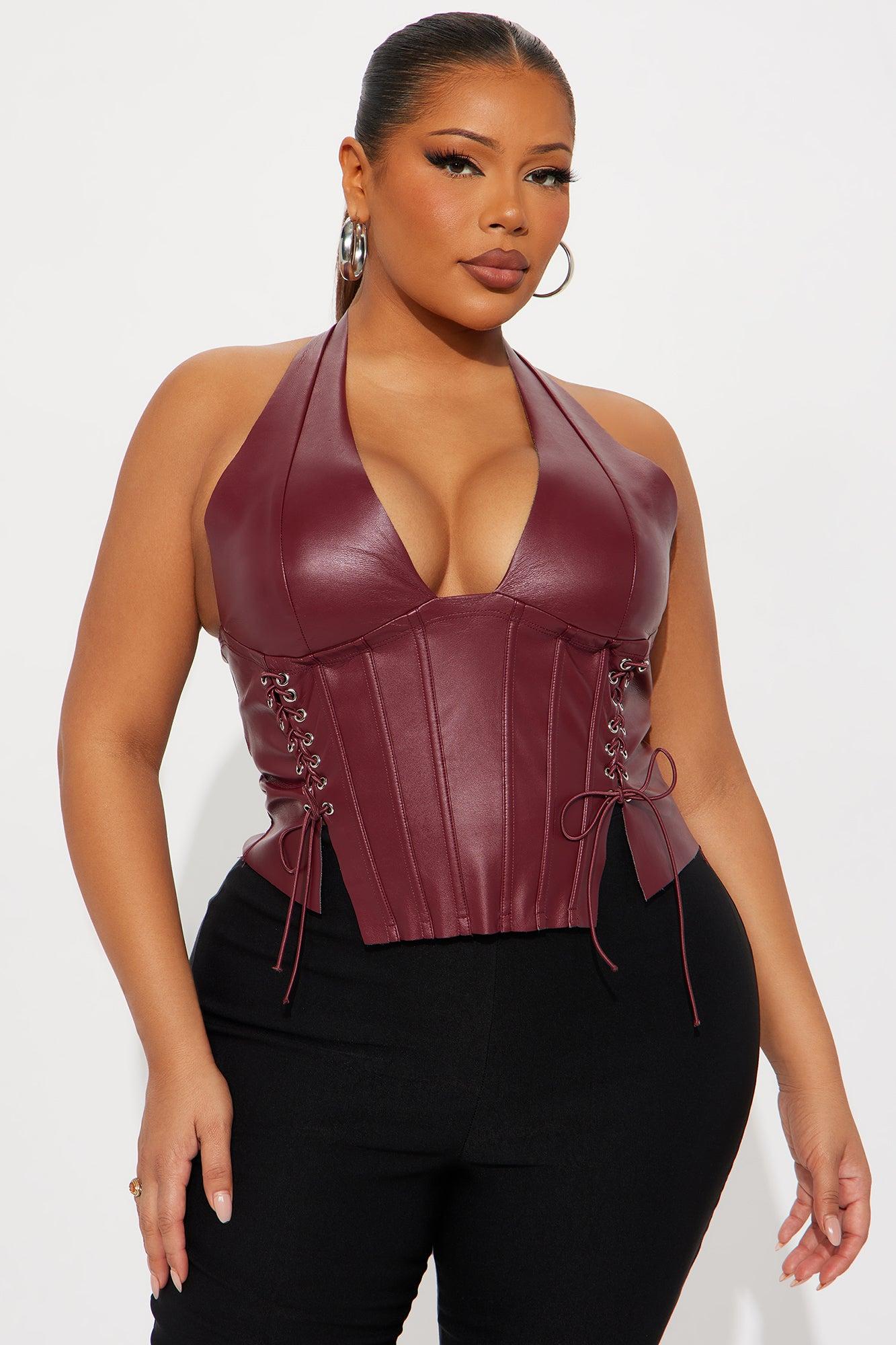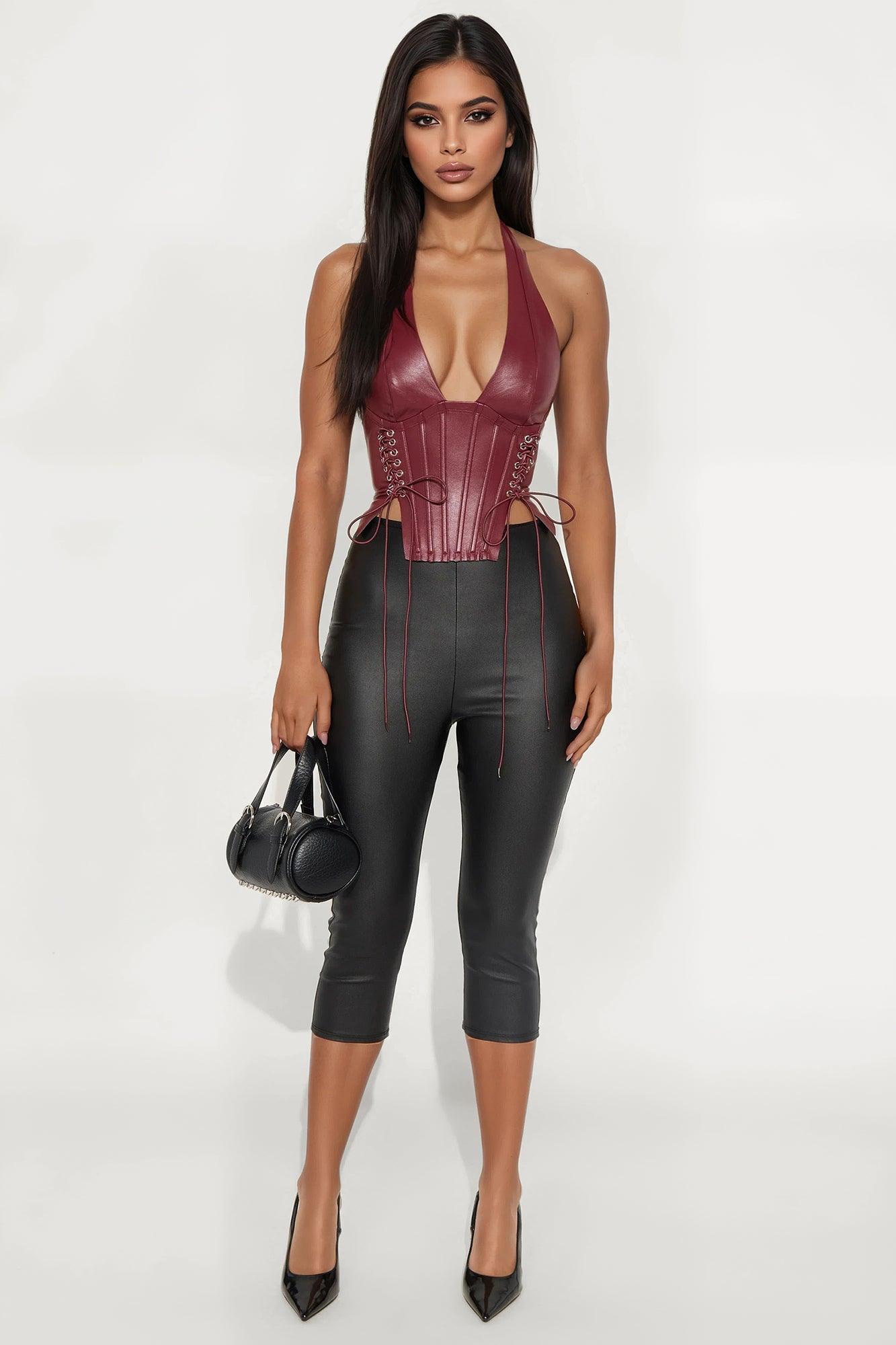 The Baddest Faux Leather Corset Top - Burgundy