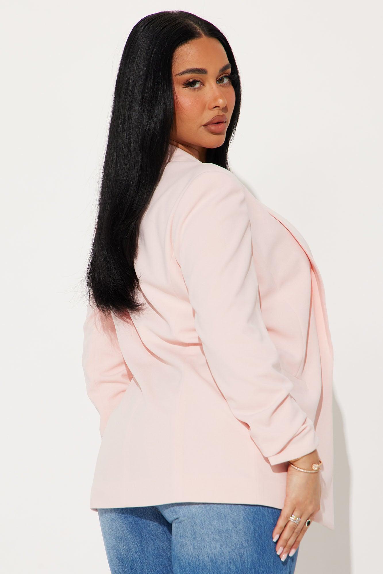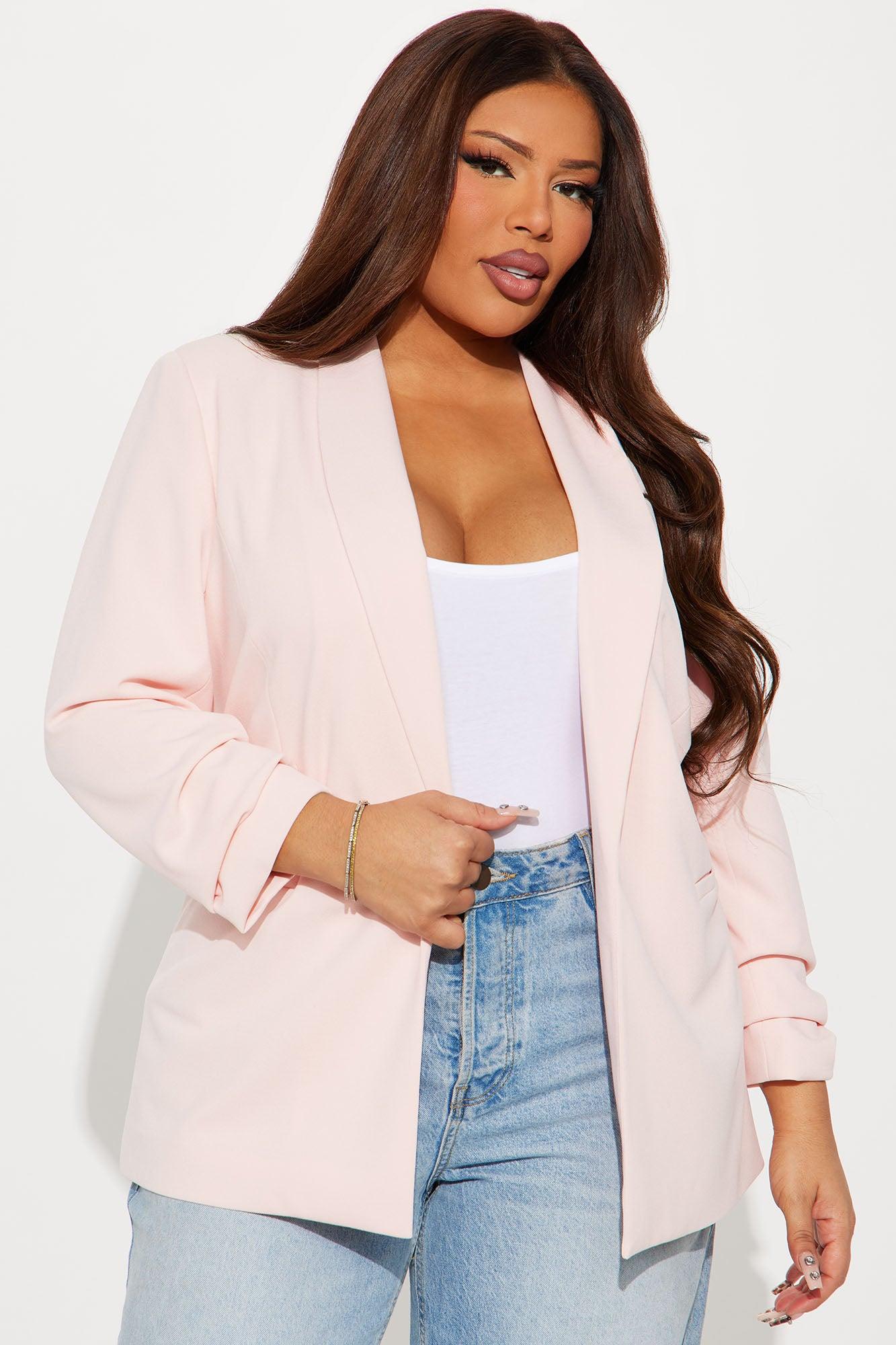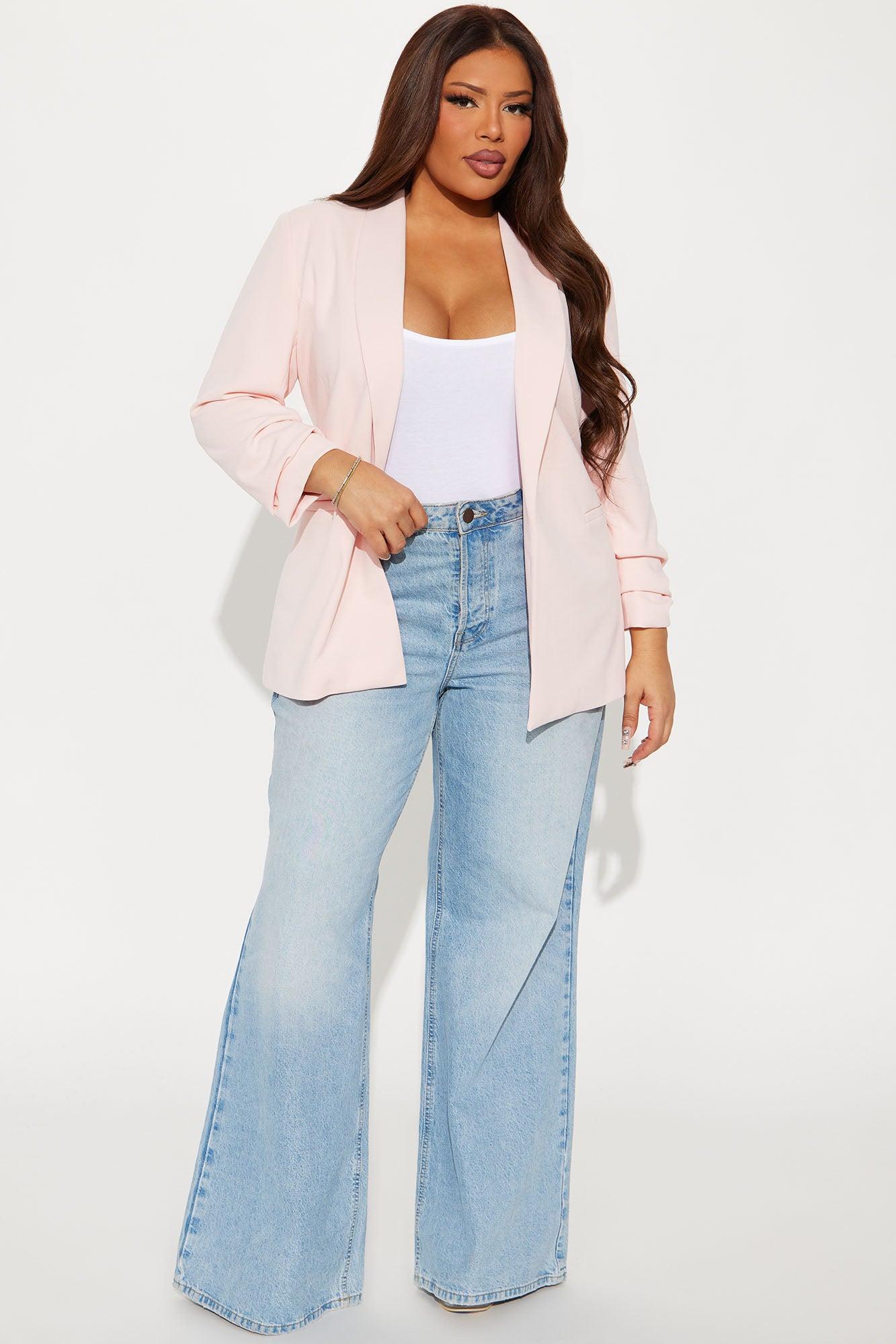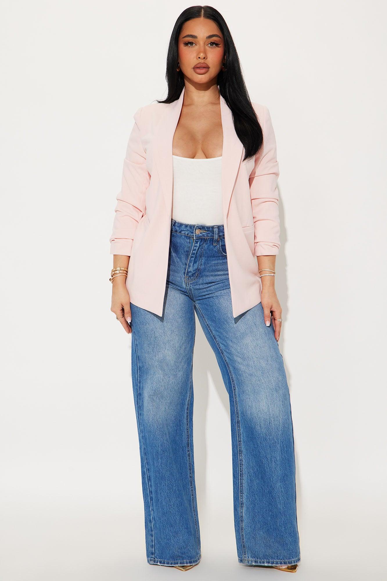 Available In Black, Blush, Brown, Butter Yellow, Ivory, Kelly Green, Light Blue, Mauve, Royal, Sage And Taupe. Solid Blazer 3/4 Sleeve Length Ruched Sleeve Pair With "Celine High Waist Button Pants" Or With "Celine Belted Wide Leg Pant" Shell: 95% Polyester 5% Spandex Lining: 100% Polyester Imported