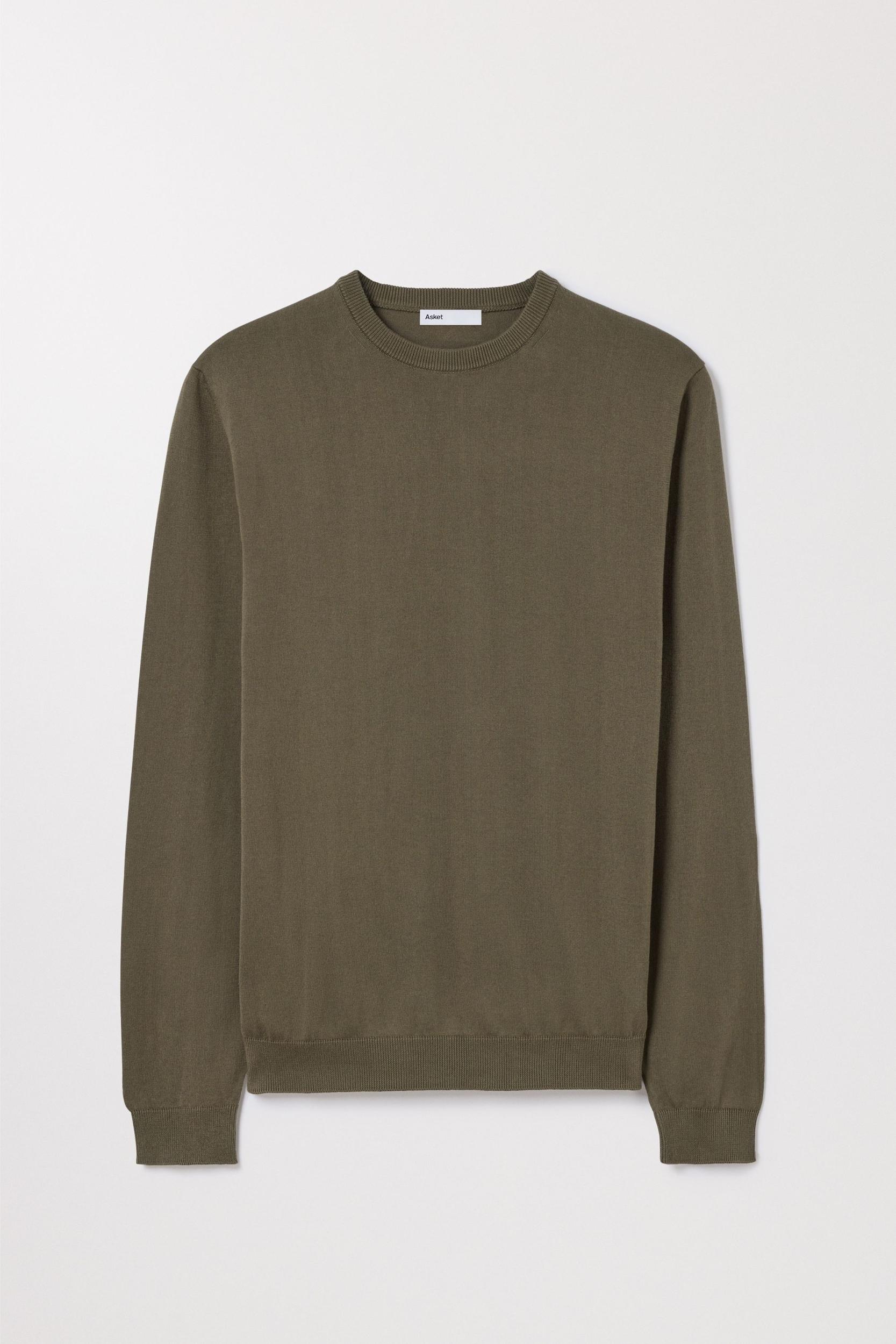 The Cotton Sweater in Olive is the truest form of simplicity. Knitted from long staple Egyptian cotton with a crisp handfeel and breezy drape.