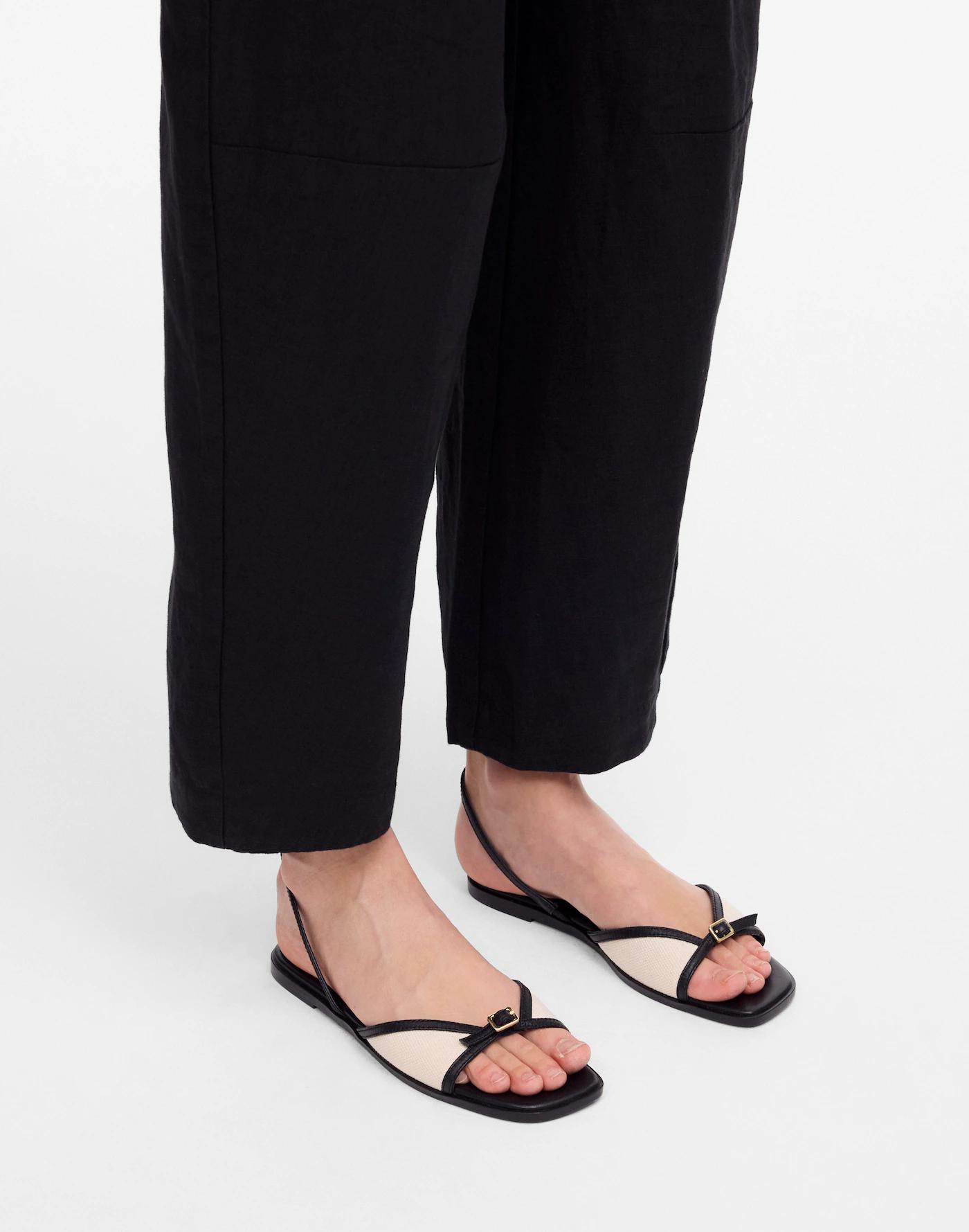 Simple and elegant. These streamlined ankle-strap sandals are designed with a v-shaped canvas upper accented with a buckle and leather trim, a square toe and a slim ankle strap. Plus, our MWL Cloudlift Lite padding makes it feel like you're walking on a...well, you know.
