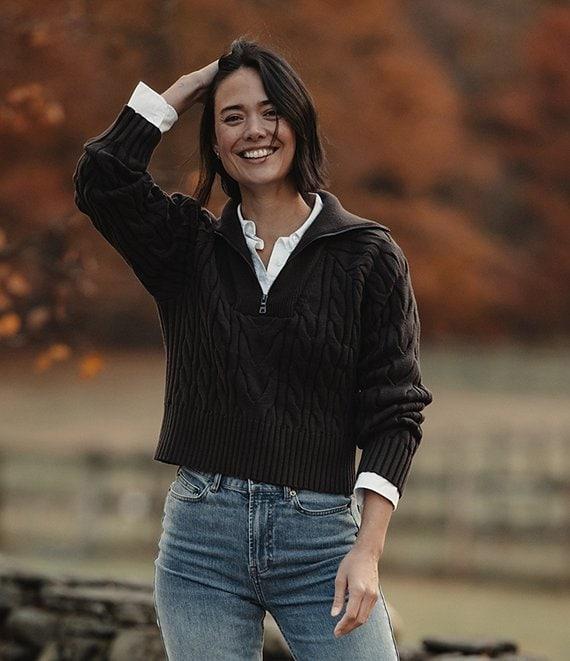 From The Normal Brand, this top features: Chunky heavy cable knit fabrication Sweater silhouette All-over cable pattern Fold-over rib collar neckline Long sleeves Ribbed hemline and cuffs Boxy fit Straight hemline Pullover construction Cotton/polyester/nylon Hand wash Imported.