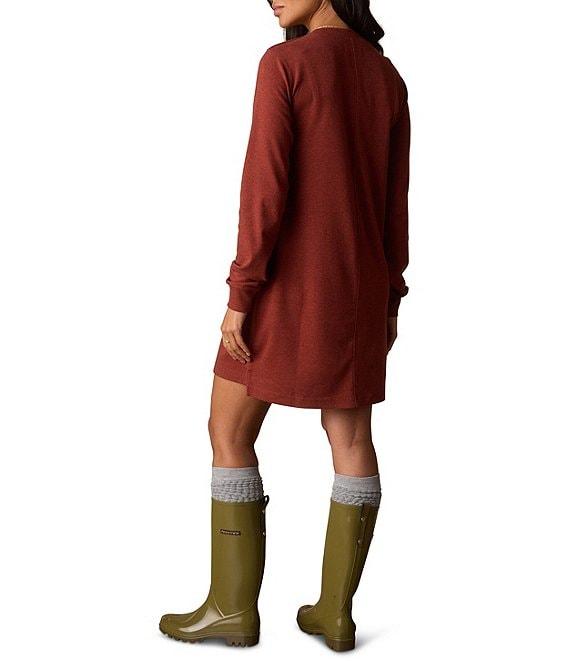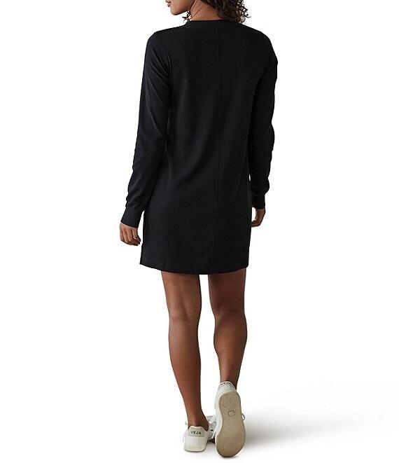 From The Normal Brand, this dress features: Stretch blend fabrication Sheath silhouette Crew neckline Long sleeves Rib applique at shoulder seams Relaxed fit Side slit Slight high-low hemline Pullover construction Cotton/polyester/spandex Machine wash Imported.