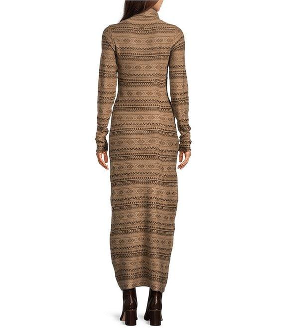 The Normal Brand Reverse Fair Isle Turtleneck Long Sleeve Sweater Dress