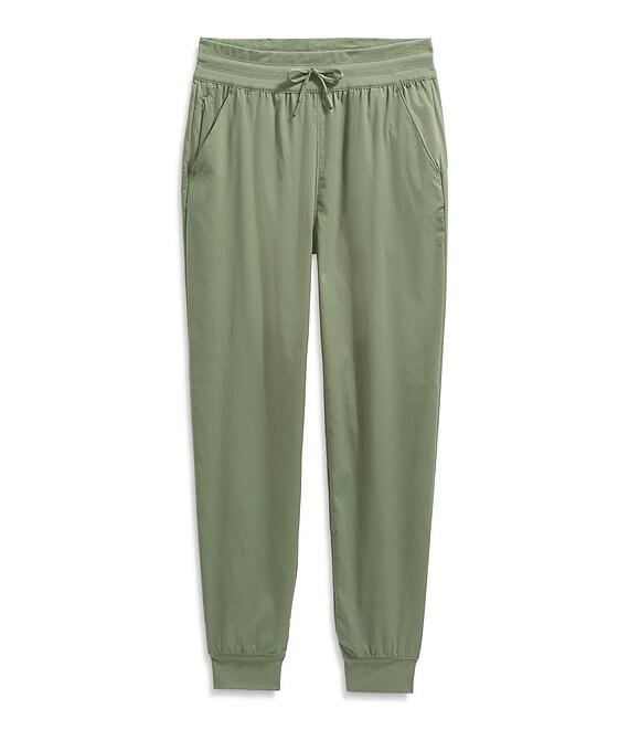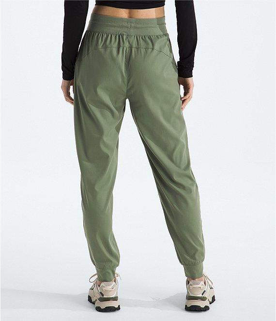 From The North Face, these pant feature: Water repellent herringbone fabrication Jogger silhouette 2x2 rip knit waistband with drawcord Straight leg Slash hand pockets Concealed zip pocket on right seam Non-PFC DWR finish for added water repellency Heat transfer logo on back right yoke Regular fit Pull-on construction Approx. 28" length Nylon/elastane Machine wash Imported. Women s Aphrodite Arise Jogger makes it easy to do what you love./Regular fit/FLASHDRY materials offer enhanced moisture management to help keep you comfortable/Non-PFC DWR finish for added water repellency/2x2 rib-knit waistband with a drawcord for adjustability/Slash hand pockets/Concealed-zip pocket on right seam/Heat transfer logo on back-right yoke