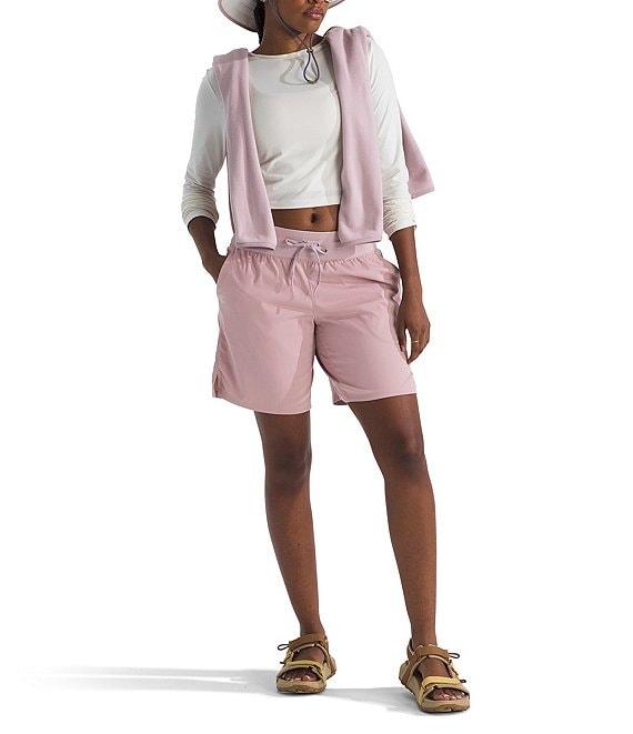 From The North Face, these shorts feature: Standard fit Four-way stretch fabrication Elastic drawstring waist Vertical bartack at back of waistband Side seam pockets Back concealed-zip pockets Embroidered logo above hem Side slit hemline Pull-on construction Approx. 8" inseam Nylon/recycled nylon/recycled polyester Machine wash/tumble dry Imported.