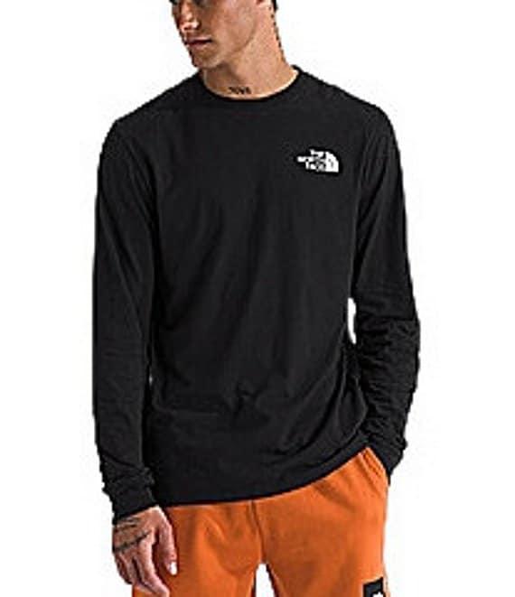 From The North Face, this t-shirt features: Crew neck Long sleeves Ribbed collar and cuffs Screen printed logo on left side of chest Box logo graphic on the back Pullover construction Solid body of cotton; solid rib of cotton Machine wash/tumble dry Imported.
